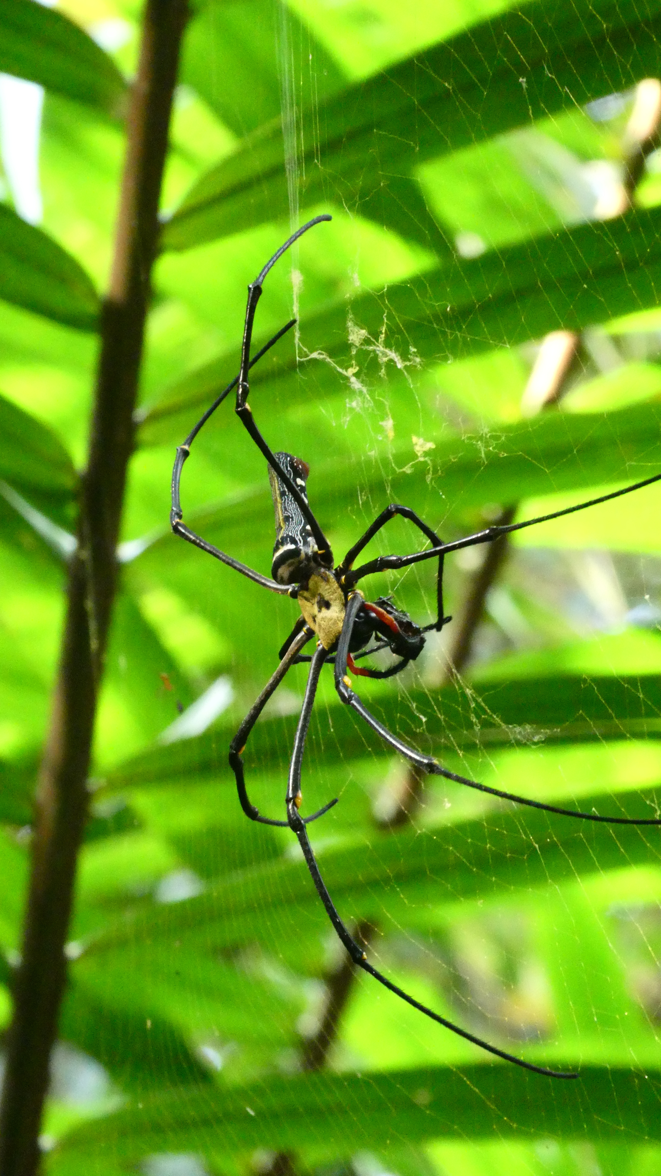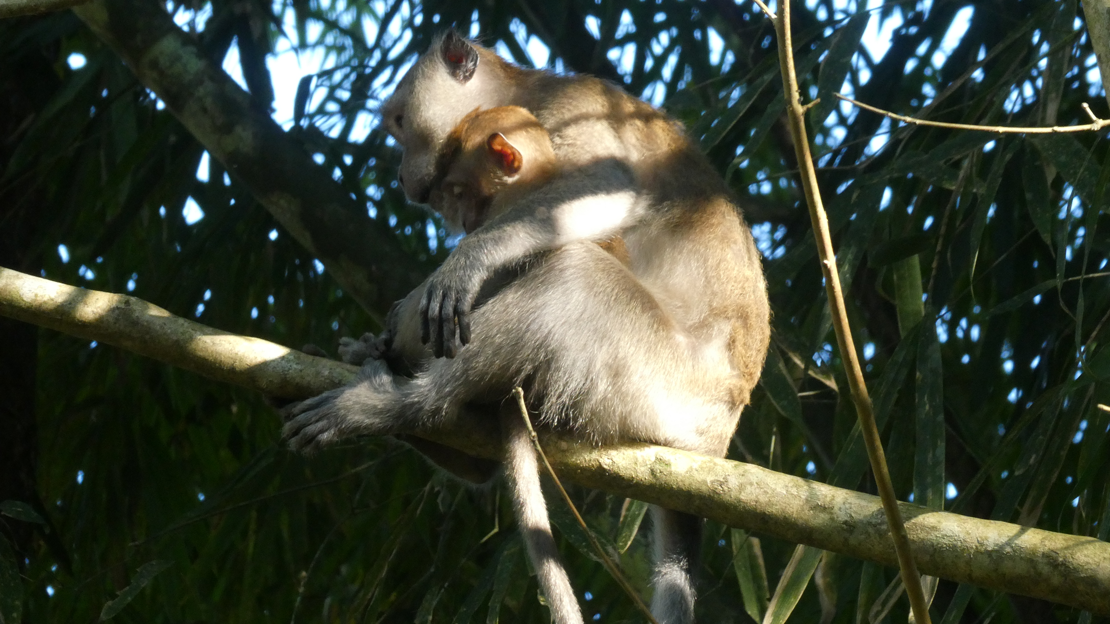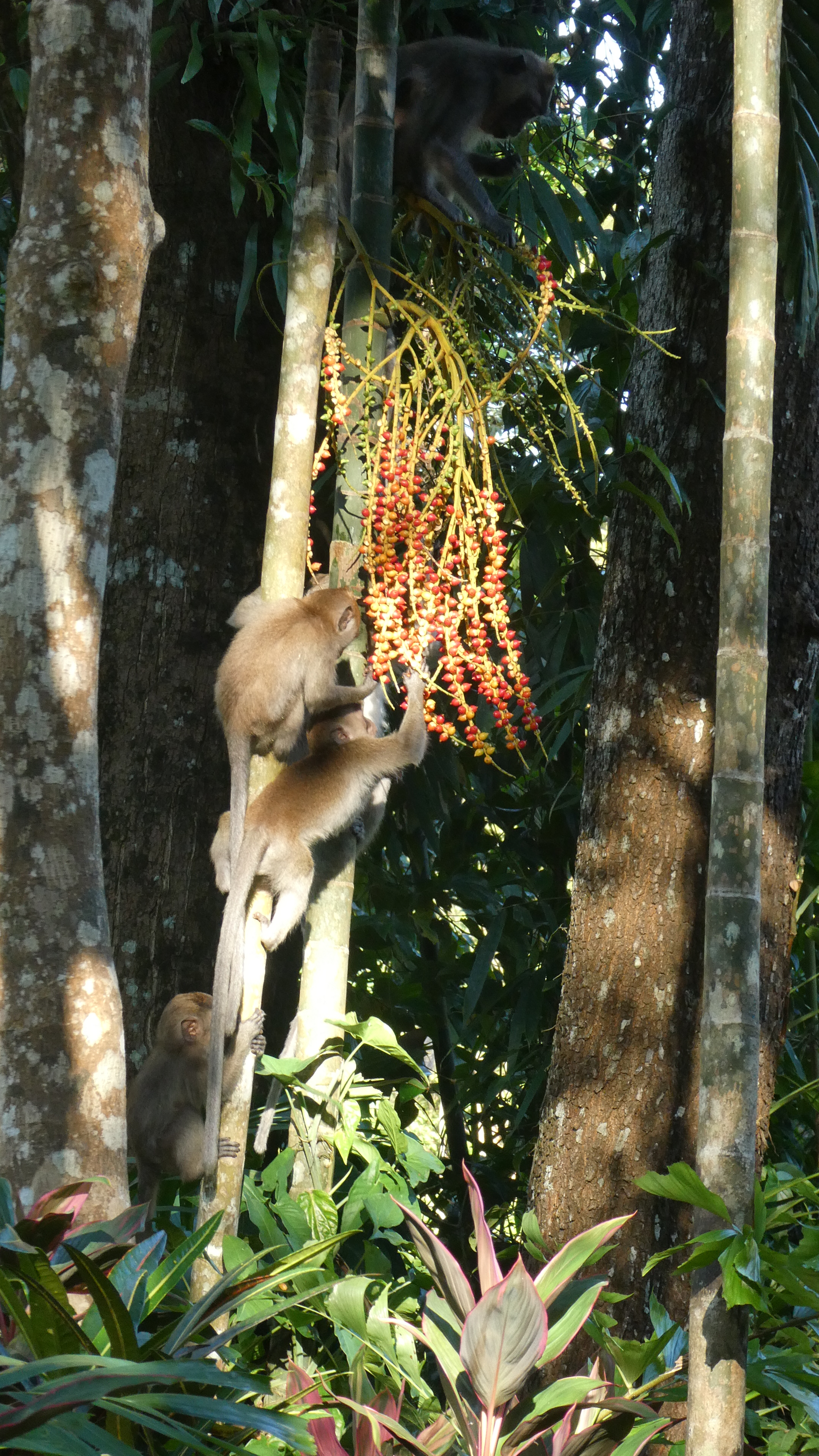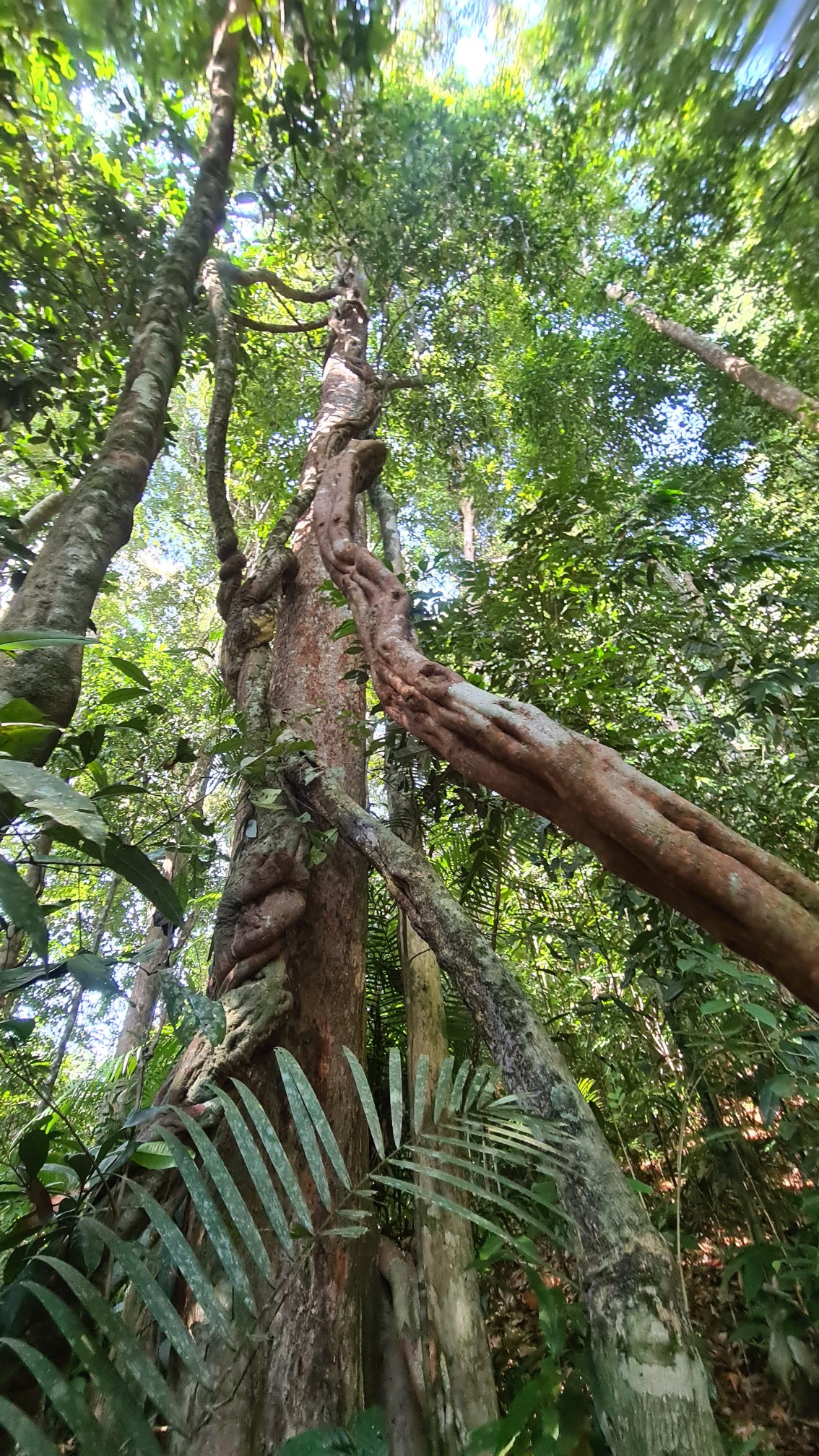 Bom und ich verstehen uns blendend. Er ist ein offener, witziger und interessierter Typ. Redet nicht zu viel und nicht zu wenig und beantwortet mir alle Fragen, die mir auf der Zunge liegen. Kaum haben wir den Kontrollposten für den Aufstieg zu dem Lianenwald mit den Rafflesia passiert, treffen wir … Pom. Er hat doch tatsächlich nur ein englischsprachiges Pärchen um die 30 zu führen – da hätte er mich ja locker noch mitnehmen können. Aber auch in natura ist er mir nicht wirklich sympathisch, auch wenn er ob seiner rüden Absage an mich Reue zeigt. Bom und ich überholen die drei und klettern in bester Laune über den schmalen Pfad den Bergrücken hinauf, betrachten Insekten und Pflanzen, schwingen auf Lianen und haben viel zu lachen.