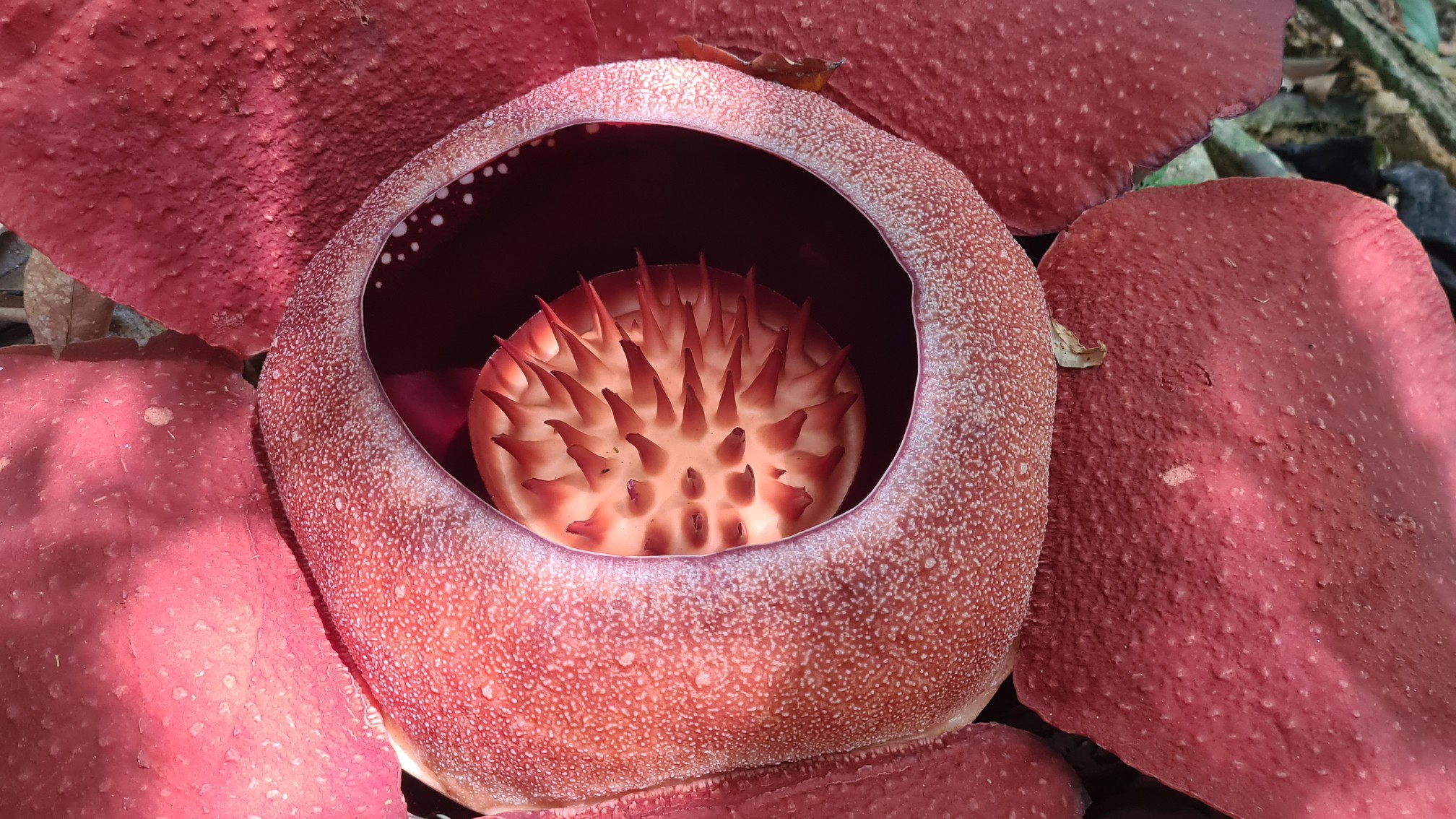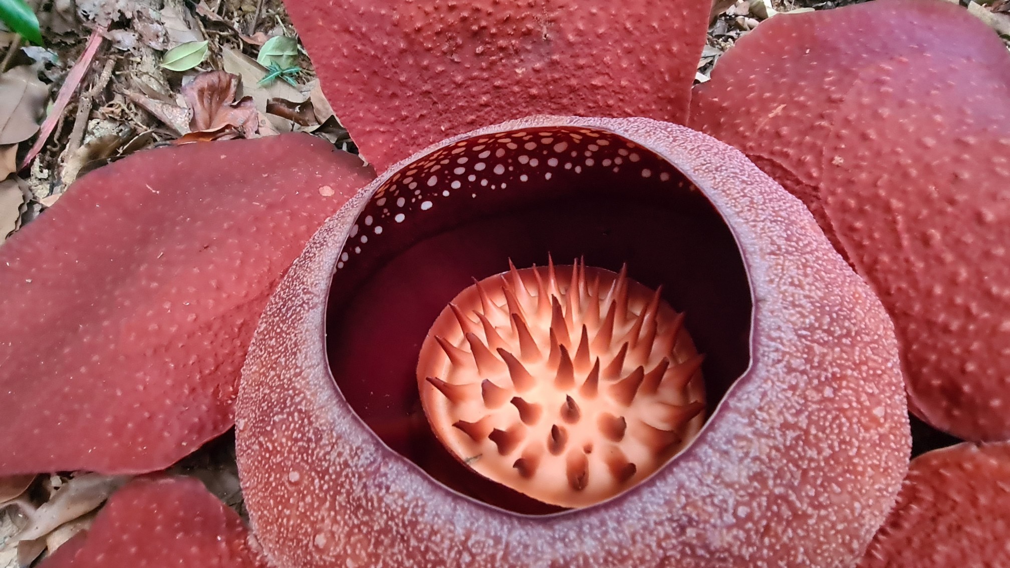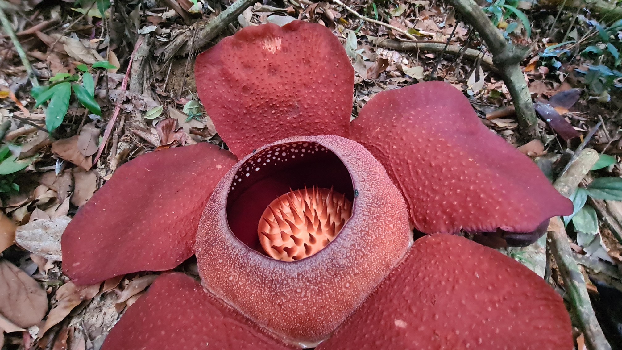 Da die Blüten nur vereinzelt und zeitlich versetzt erscheinen, ist die Wahrscheinlichkeit einer Bestäubung der weiblichen Blüte durch eine gleichzeitig besuchte männliche Blüte seeeehr gering. Rafflesia können bis zu 1 m groß werden, meine Hübsche hatte ca. 60 cm im Durchmesser.