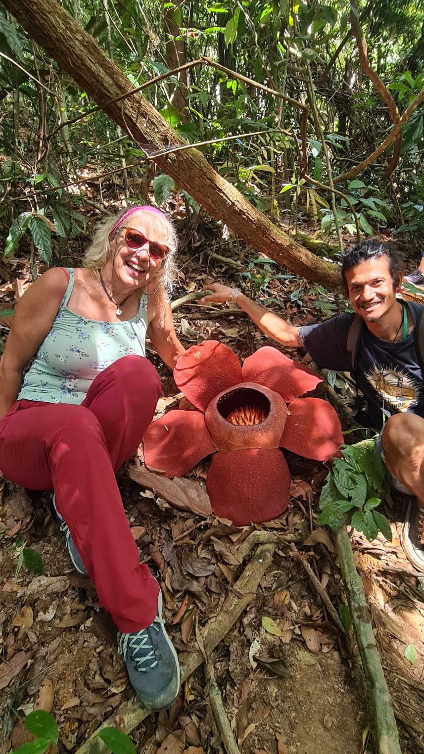Anschließend schnuppere ich schon mal in den Nationalpark rein, um zu eruieren, was hier alles geboten ist: Wanderwege, Wasserfälle, Nachtwanderungen … aber die Krönung wäre für mich tatsächlich, eine blühende Rafflesia zu sehen. Die Rafflesia ist die größte Blüte der Welt und sie hat im Dezember bis Januar ihre Hauptblütezeit. Selbst dann ist es ein Geschenk, wenn man während des Aufenthaltes das Glück hat, eine Rafflesia zu bestaunen, denn so spontan und schnell wie sie sich öffnet, vergeht sie auch wieder. Die letzte Blüte war leider vor vier Tagen, mal schauen, ob ich noch Glück habe. Ich nehme mir auf jeden Fall schon mal die Mobilnummern zweier Guides mit.