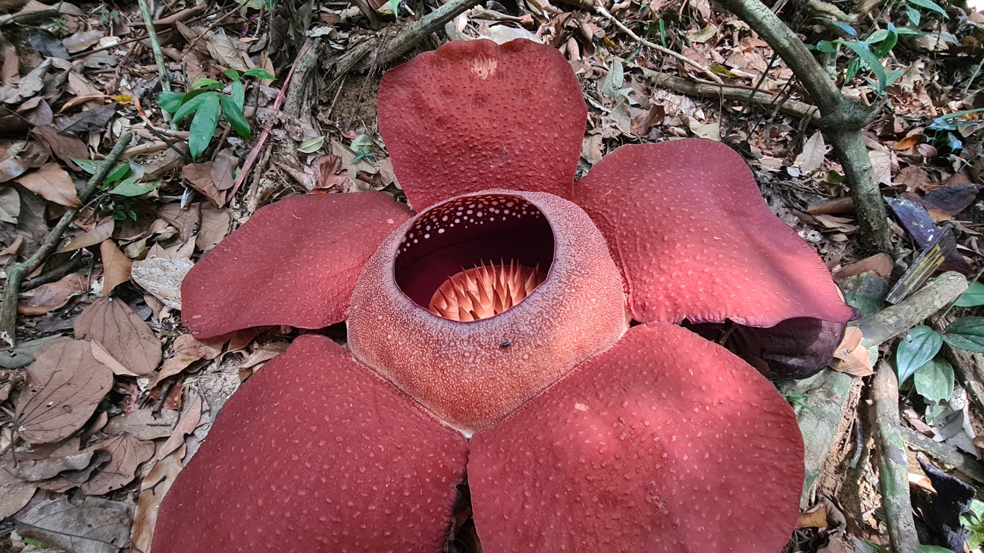 Dann kann man förmlich dabei zuschauen, wie die Rafflesia innerhalb von 1-3 Tage vollends ihre fünf leuchtend roten, fleischigen Blätter entfaltet und ihr wunderschönes Inneres preisgibt. Und genauso schnell zerfällt die Monsterblüte, nachdem sie durch ihren Aasgestank ausreichend Schmeißfliegen angelockt hat, zu einem schleimigen, schwarzen etwas.