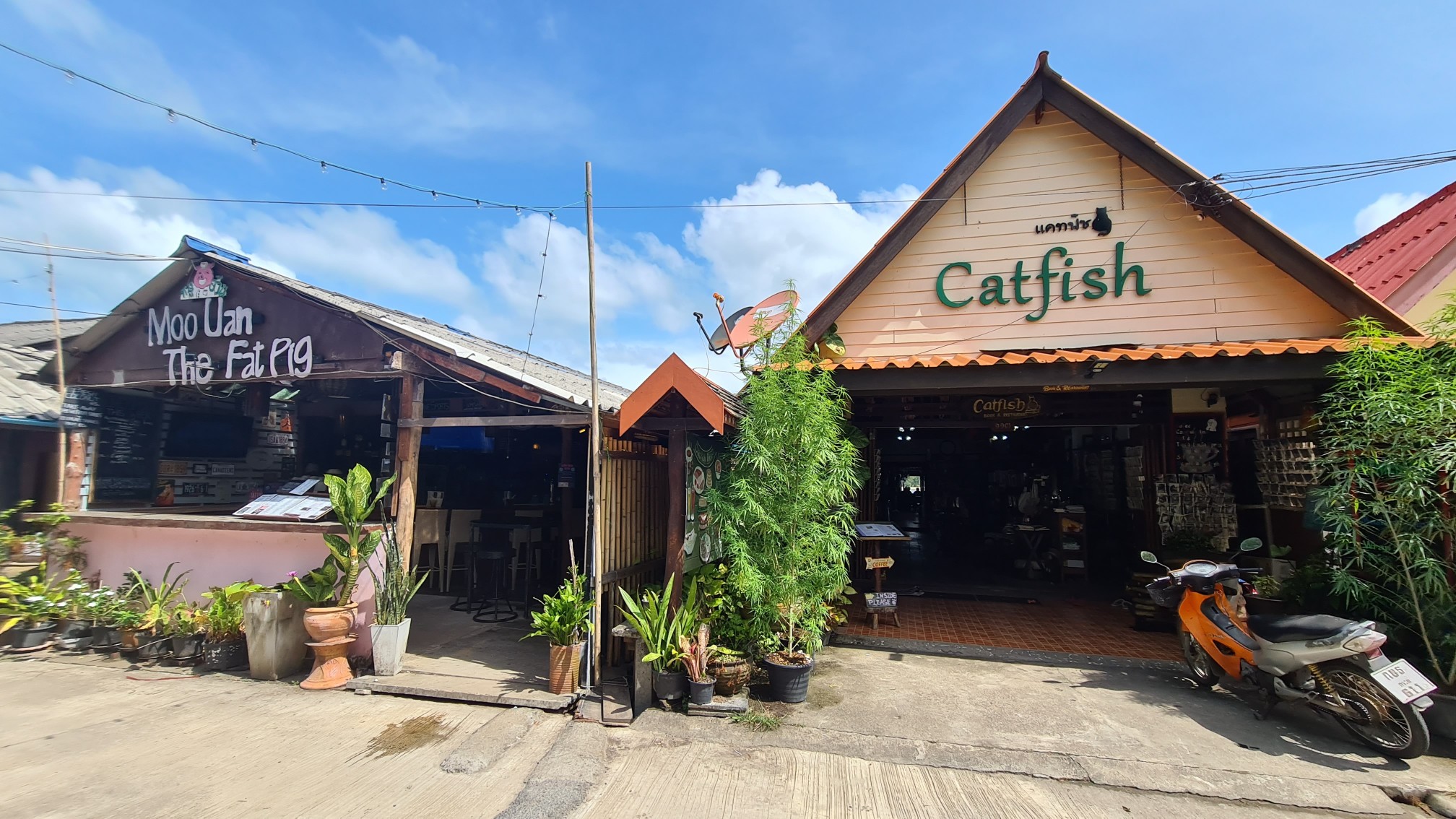 Auch wenn meine Fähre von Koh Lanta nach Koh Phi Phi erst um 13 Uhr am Ban Saladan Pier startet, lasse ich mich bereits am frühen Vormittag von einem Tuk-Tuk am Khlong Khong Beach abholen. Ich will den sonnigen Morgen noch nutzen, um zumindest einen kleinen Eindruck von Ban Saladan zu bekommen. Schon bei Booking.com hatten mich einige Locations zum Übernachten und Essen angesprochen. Überaus stylisch und einladend, wie zum Beispiel das Boho Hostel & Restaurant.