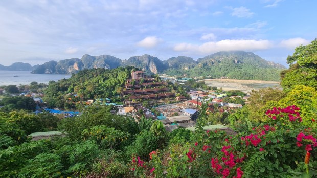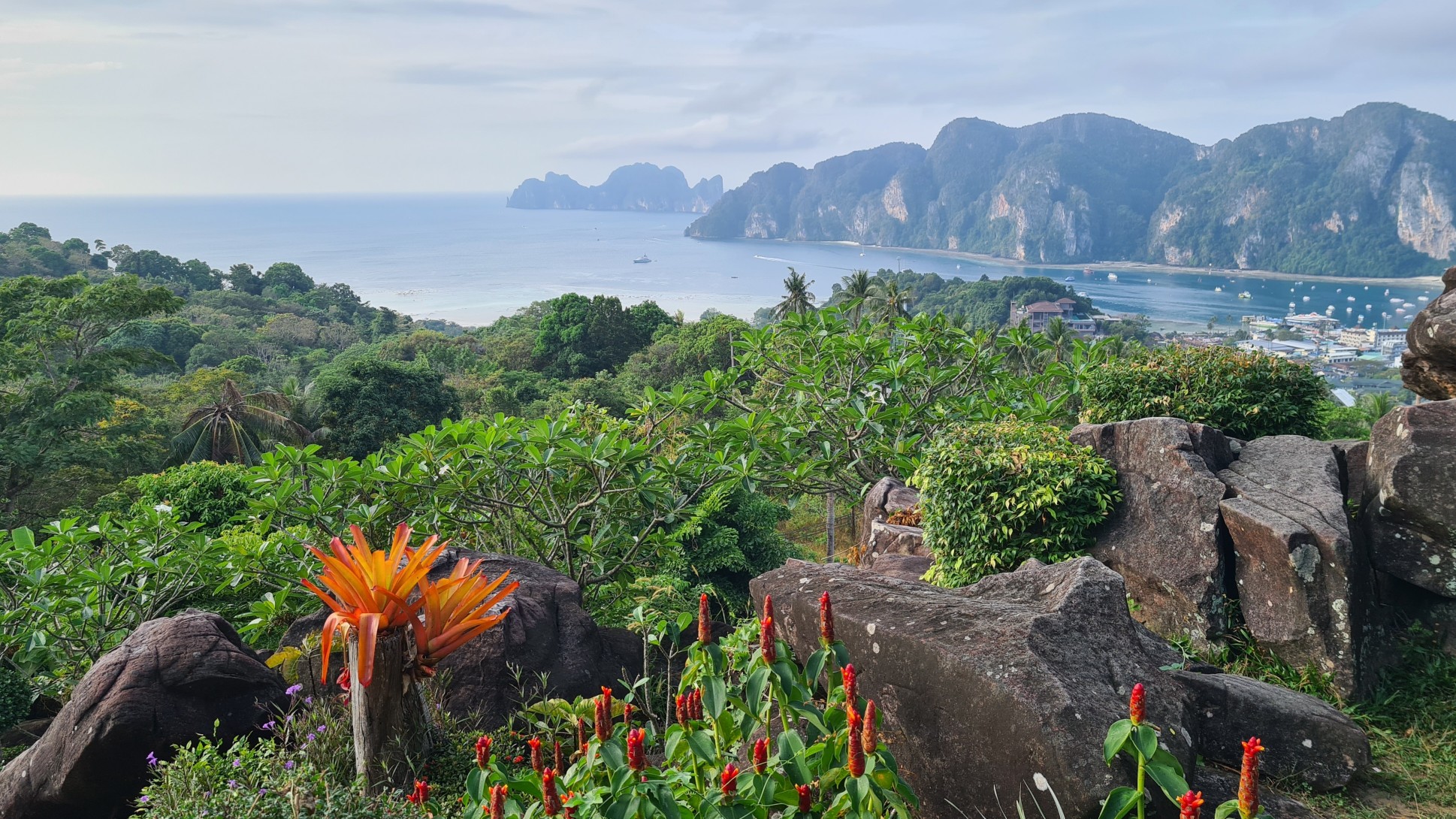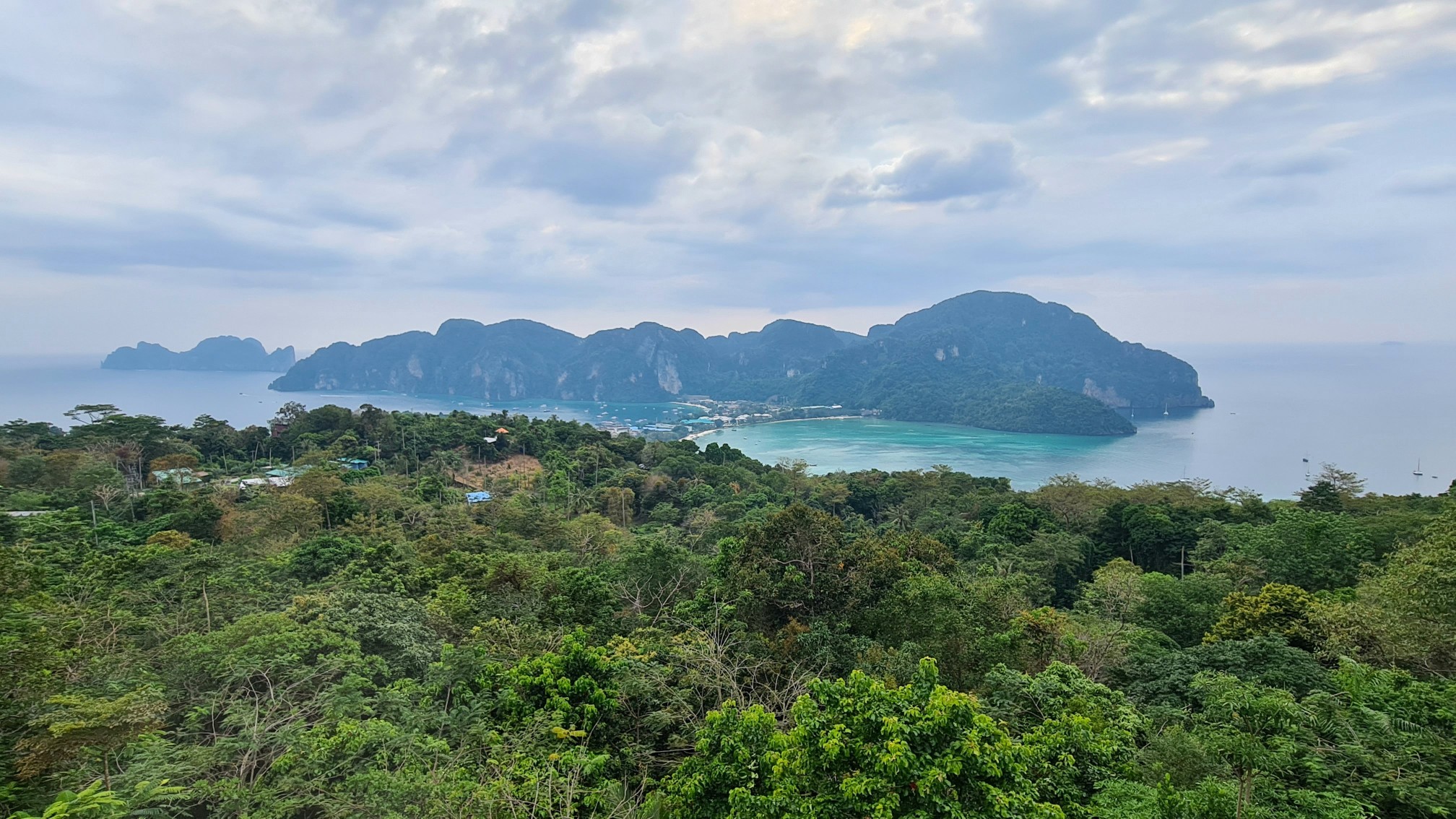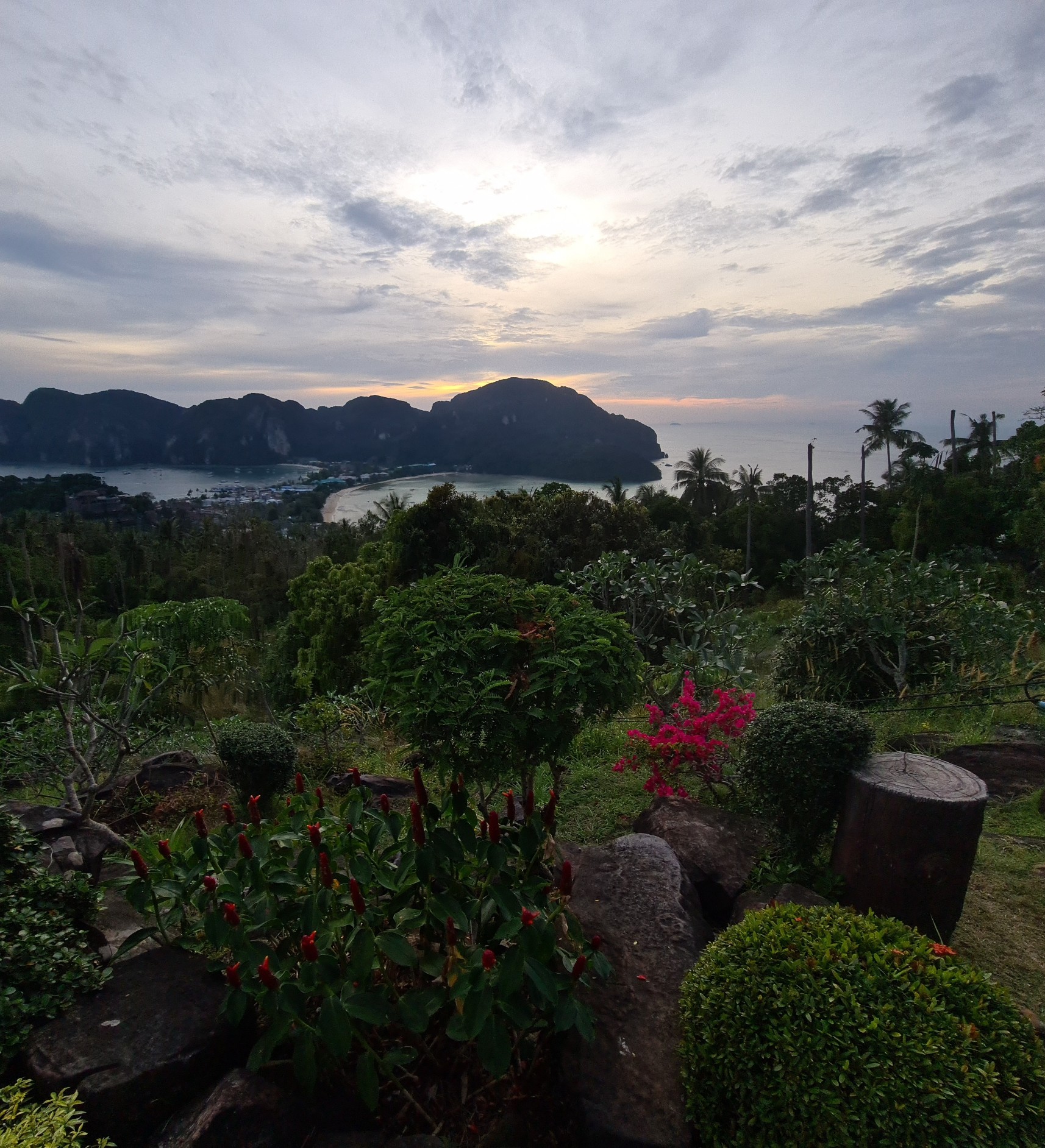 Bei Sonnenschein und dieser Aussicht hält es mich natürlich nicht lange im Bett. Um 7 Uhr frühstücke ich meinen Mango Sticky Rice und erklimme gleich die steilen Treppen zum Viewpoint 1 und 2. Zwar herrscht aktuell Ebbe, aber wer weiß, wie das Wetter die nächsten Tage noch wird. Ich hätte zu diesem Zeitpunkt selbst nicht erwartet, dass ich noch zwei weitere Male hier die Aussicht genießen werde.
