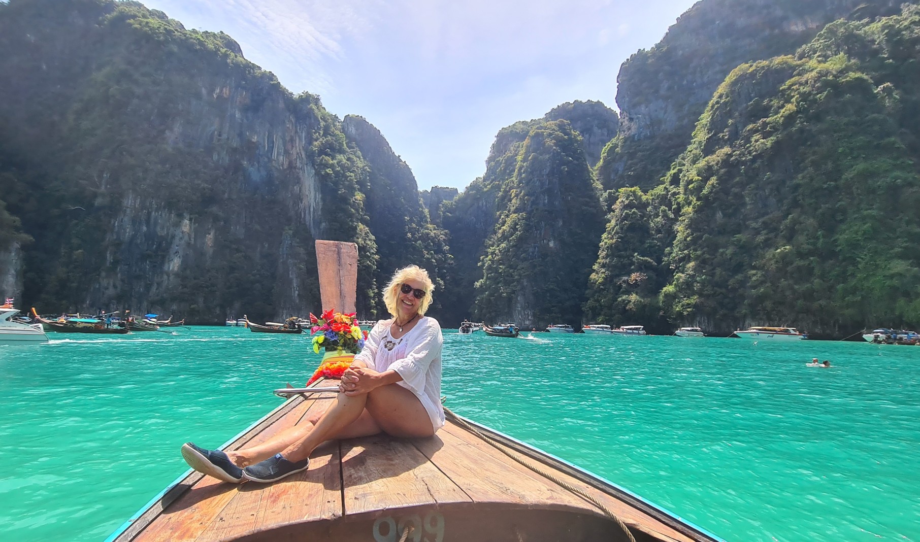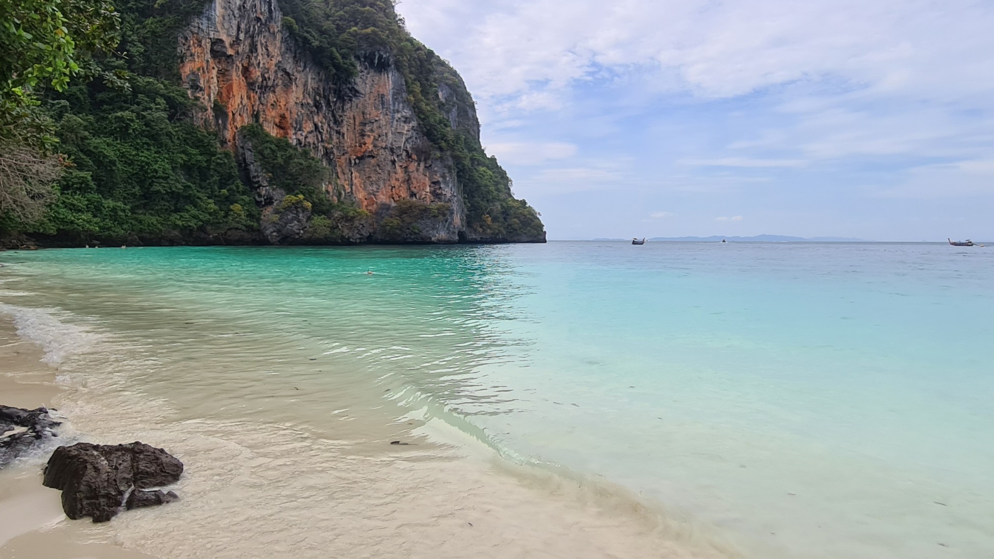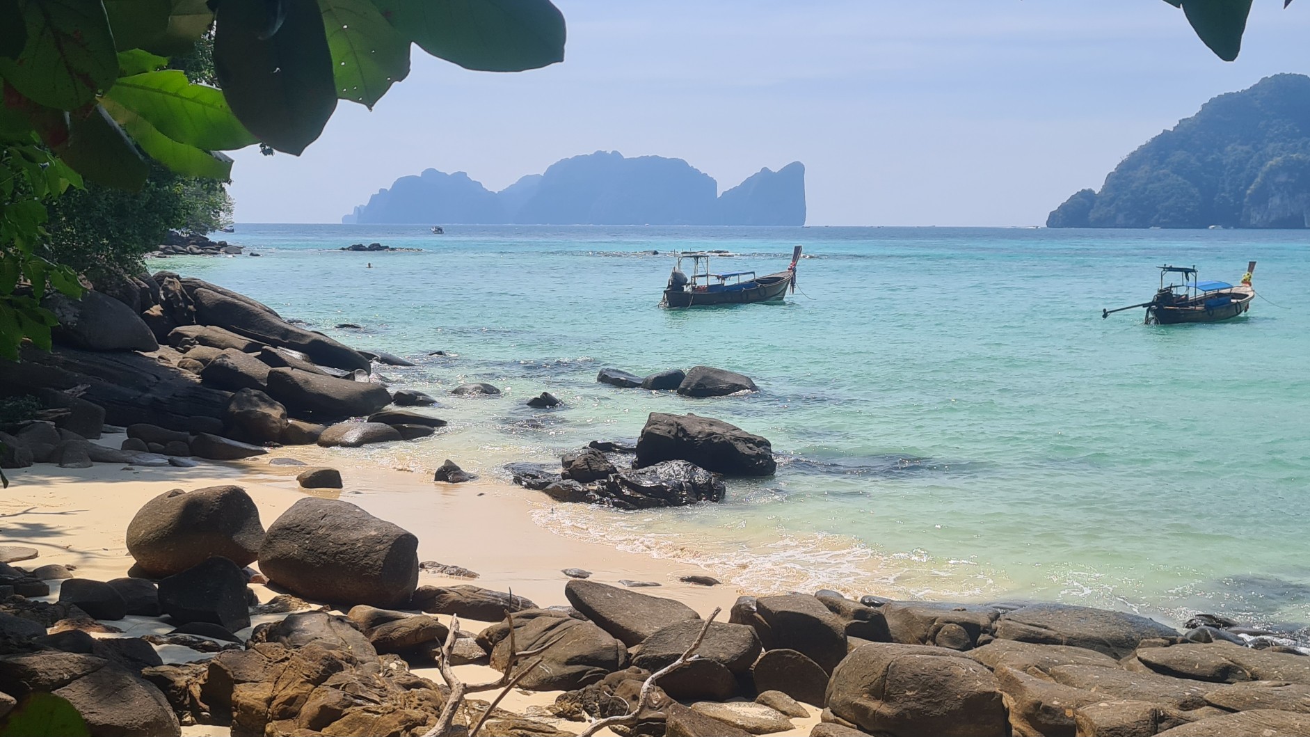 Unser Bootsbesatzung ist jetzt schon ganz glücklich, aber wir werden noch mit zwei weiteren Traumbuchten und einem Strandpicknick verwöhnt, bevor wir nach einem kurzen Stopp an der Viking Cave und einem Abstecher zur Monkey Beach wieder Kurs auf Koh Phi Phi Don nehmen.