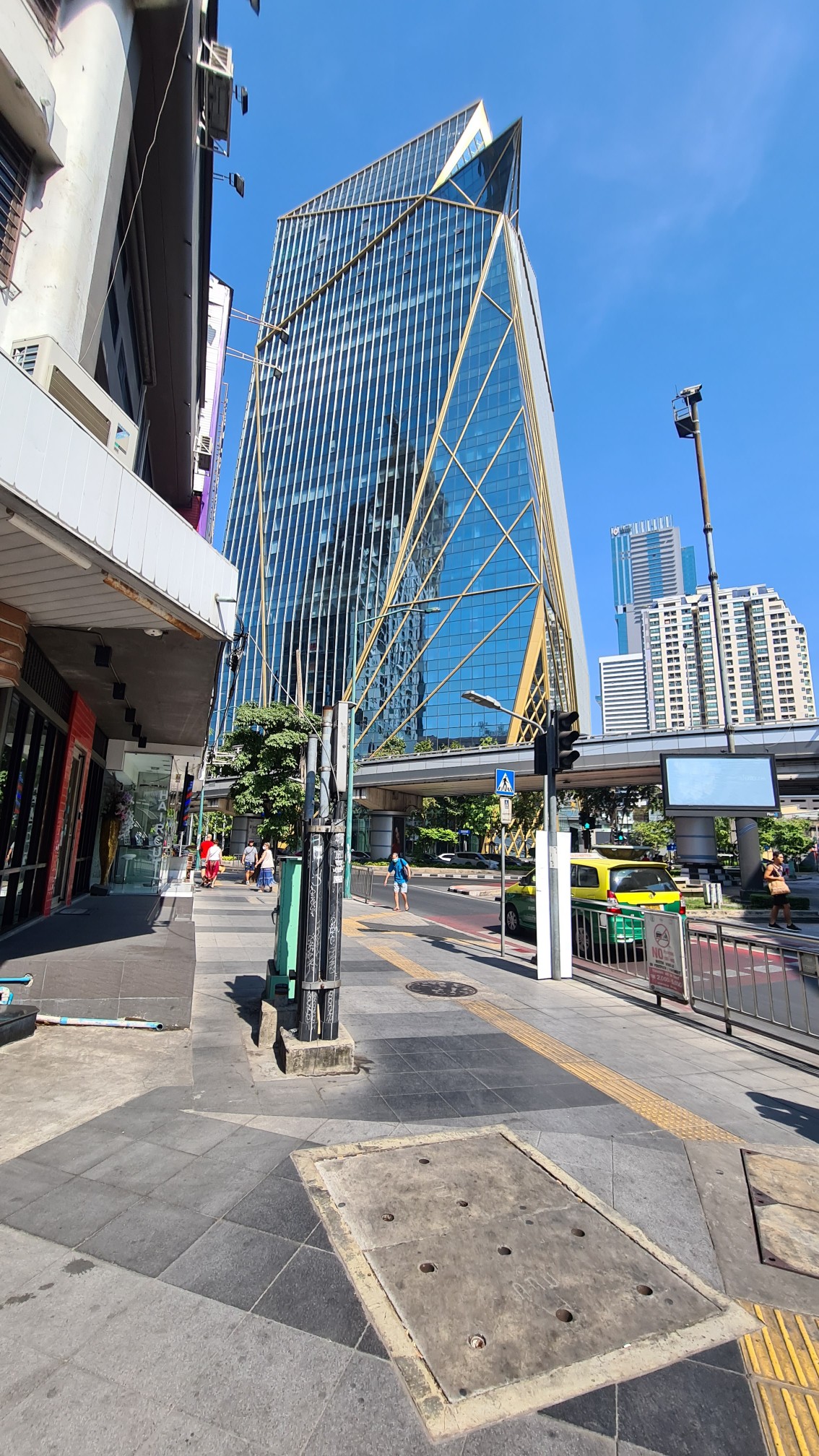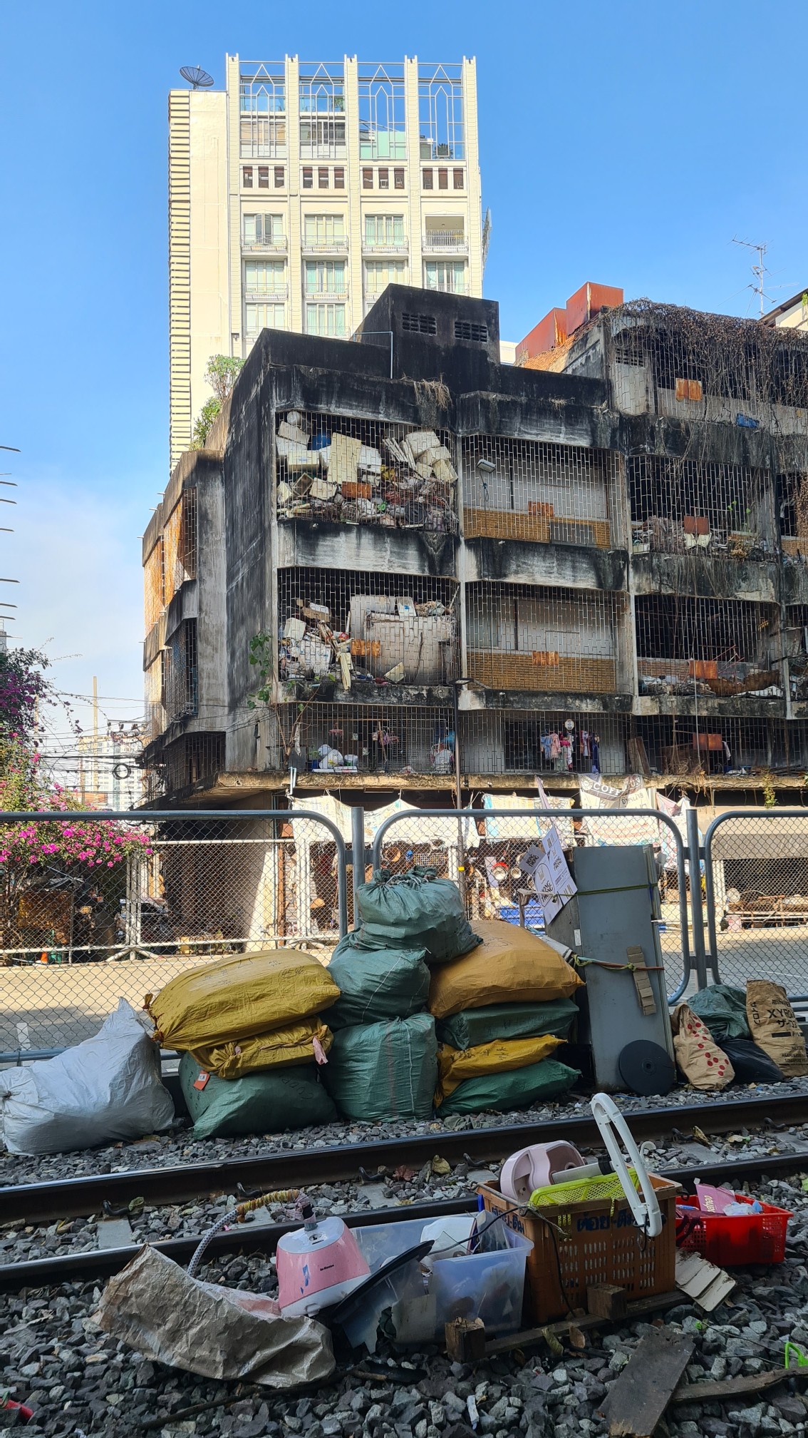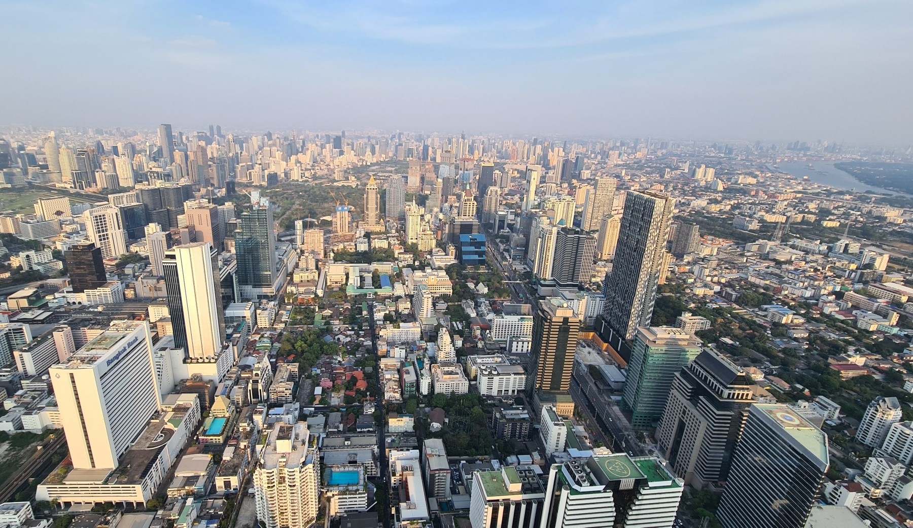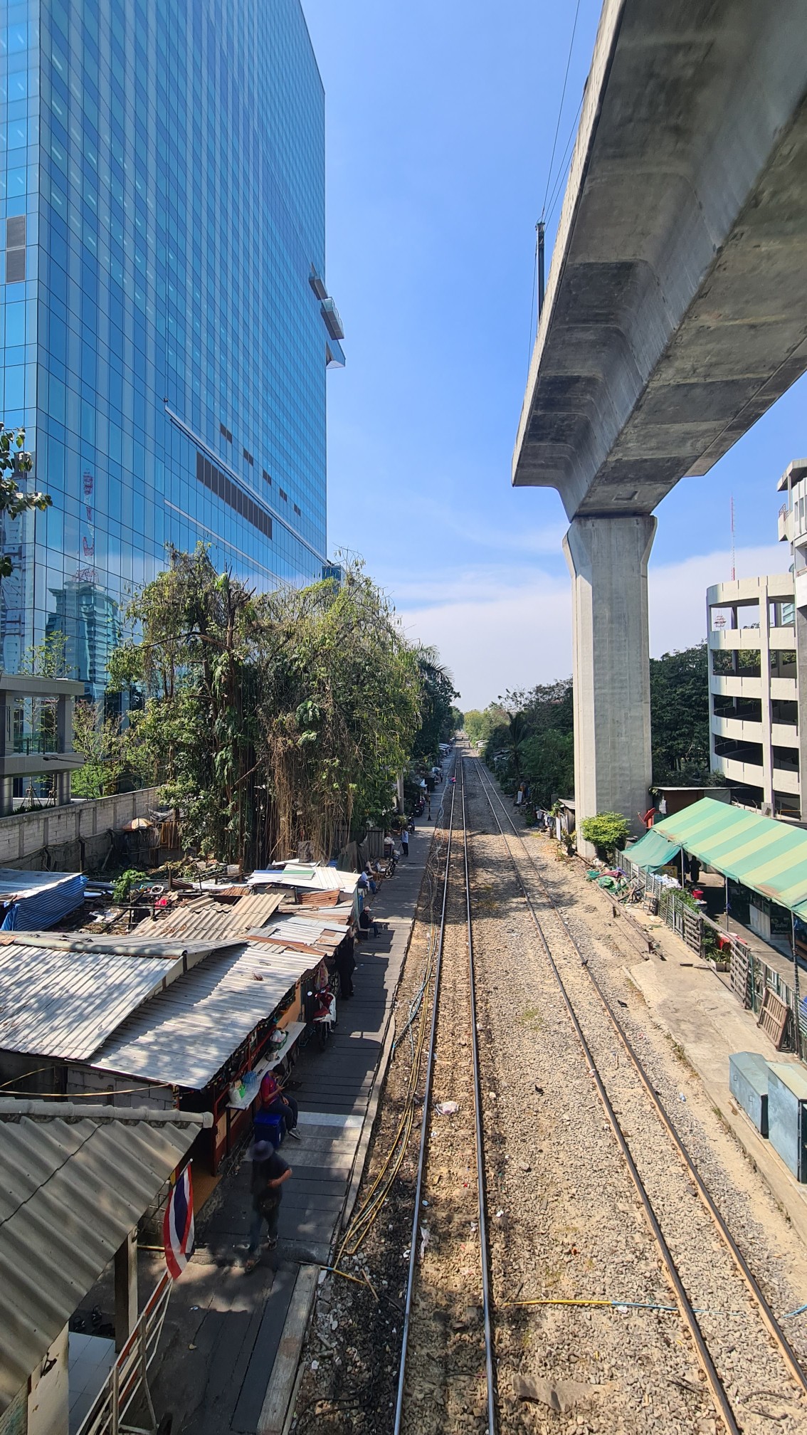Gegen 16 Uhr mache ich mich dann auf den Weg zum Highlight des Tages, dem Hightower Maha Nakhon. Immer wieder faszinierend sind die Kontraste in Bangkok. Da stehen glitzernde Wolkenkratzer neben erbärmlichen Hütten, vorbei an pickfeinen Locations läuft man zwei Ecken weiter durch die Gosse, auf Hochglanz polierte MRT-Stationen konkurrieren mit verwahrlosten Bahnsteigen entlang der Railway. Gegensätze wohin man auch schaut, oft auch schockierend.