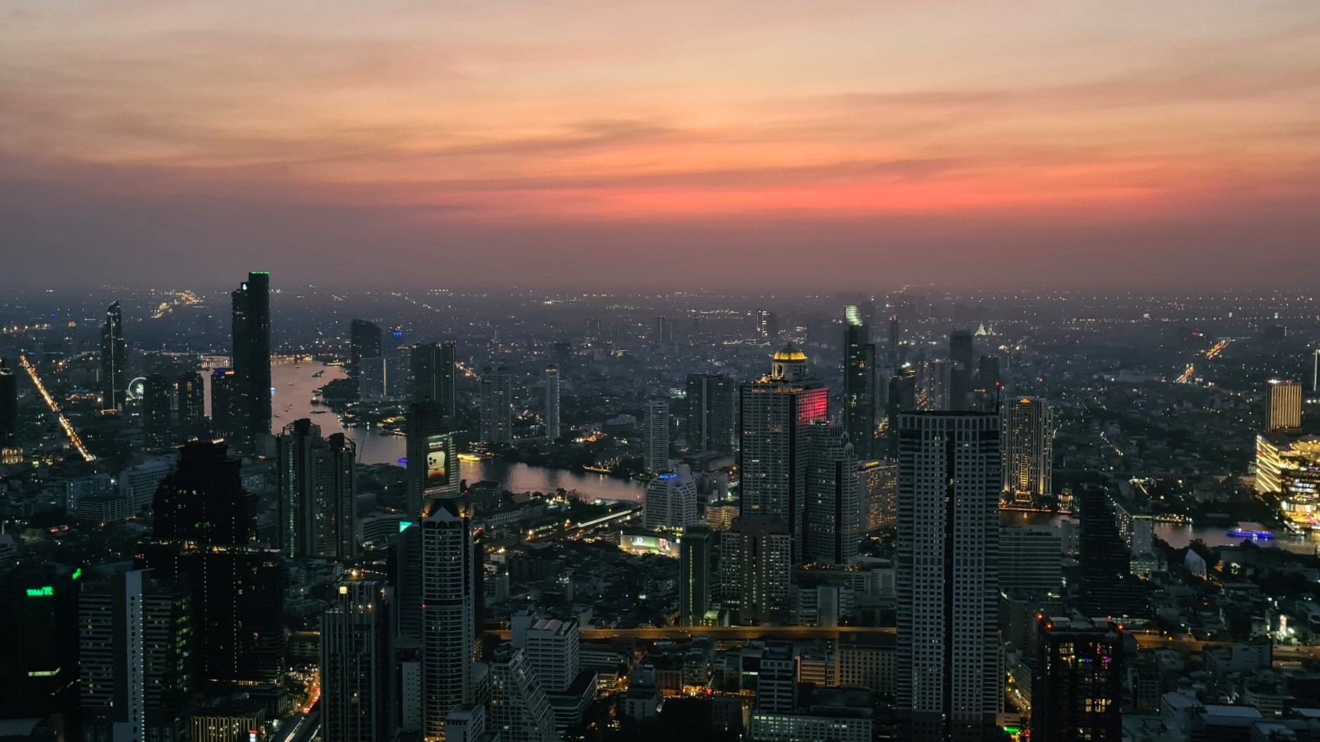 Entsprechend kann ich dann auch die 360° Rundumsicht über Bangkok hin zum Chao Phraya, zum Ortsteil Thonburi oder zum Lumphini Park genießen – bis die Lichter angehen. Das war wirklich ein krönender Abschluss meiner sechswöchigen Thailand-Backpacking-Reise!