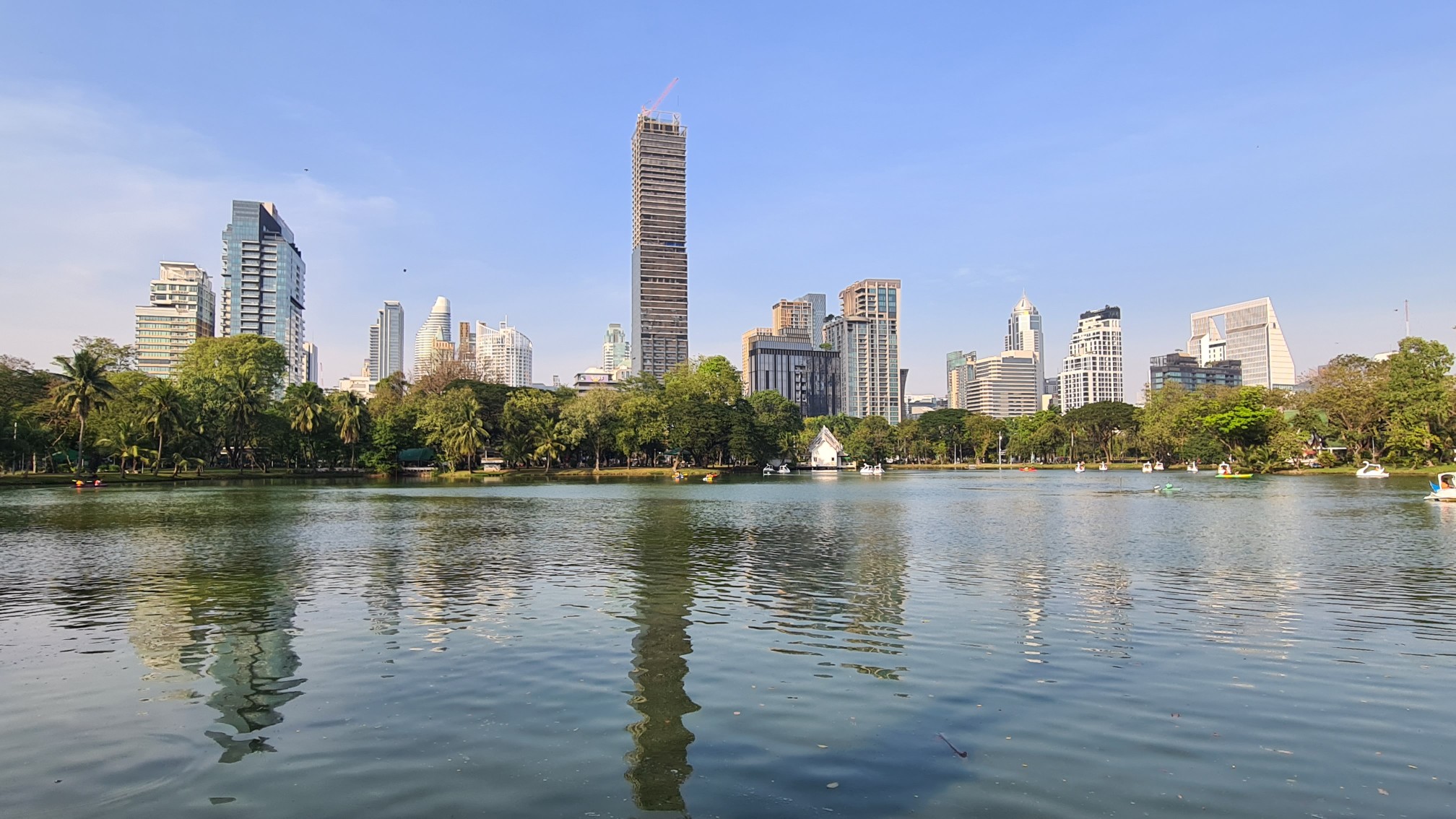 Mein Flieger nach Hause geht erst später am Abend des 30.01.2023, weshalb ich mein Backpack am Abreisetag im Hostel deponiere, um noch ein letztes Mal die günstigen Verkehrsmittel Bangkoks zu nutzen und bisher ungesehene Spots anzufahren. Die Fahrt zu den ebenfalls sehr gehypten Bayoke Towers hätte ich mir aber sparen können. Die Gegend taugt mir überhaupt nicht, sehr geschäftstüchtig, wuselig, touristisch und entsprechend teuer ist auch das Ticket zur Auffahrt auf den Turm. Davon abgesehen, dass ich nicht mehr so viel Bargeld in der Tasche habe, muss ich das so weit entfernt vom Zentrum dann doch nicht nochmal haben. Also geht es weiter mit der nächsten MRT zum Lumphini Park, eine der sehr wenigen grünen Oasen in der Großstadt Bangkok. Kann man mal durchlaufen, man hat aber auch nichts verpasst, wenn man nicht hier war.