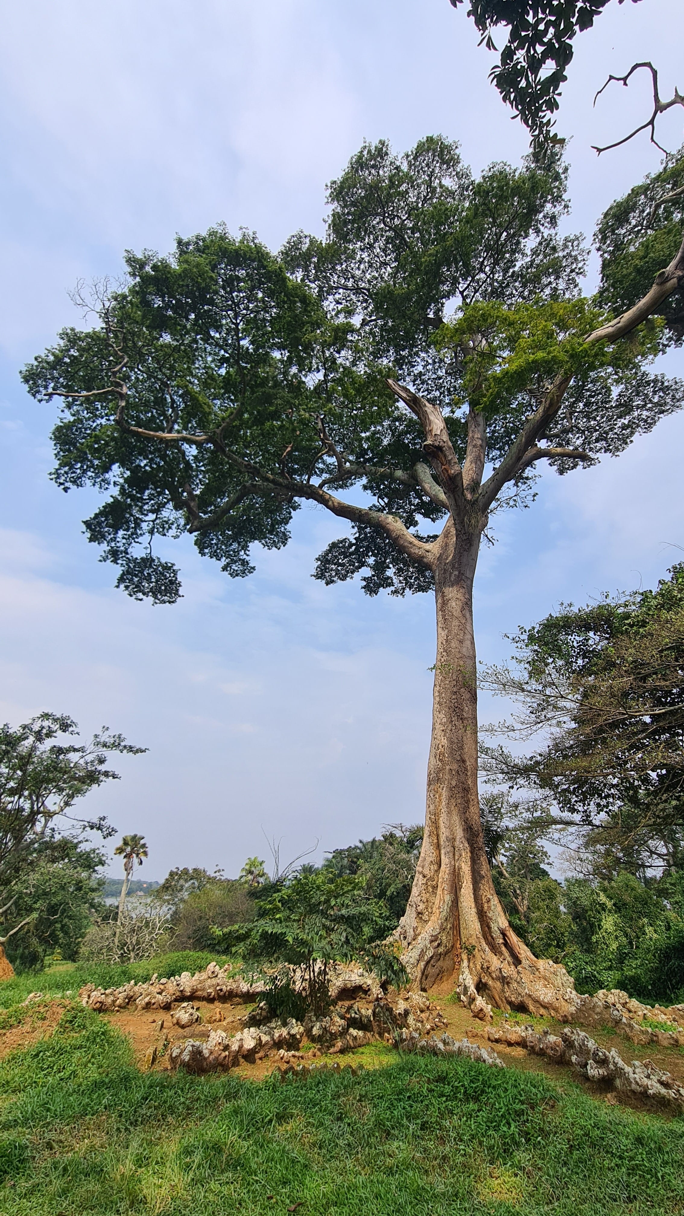 Nachdem wir beim Precious Guesthouse alles in unserem Allrad-Gefährt verstaut haben, laufen wir um 14 Uhr einfach über die Straße zum Botanischen Garten und nehmen uns dort einen Guide. Der Park wurde um 1900 an den Ufern des Lake Victoria angelegt. Von den vielen riesig gewachsenen Bäumen aus aller Welt sind uns der Canonball Tree, der Henna-Baum und der Crocodile Tree in Erinnerung geblieben – da sie einigermaßen zweifelsfrei zu identifizieren sind.