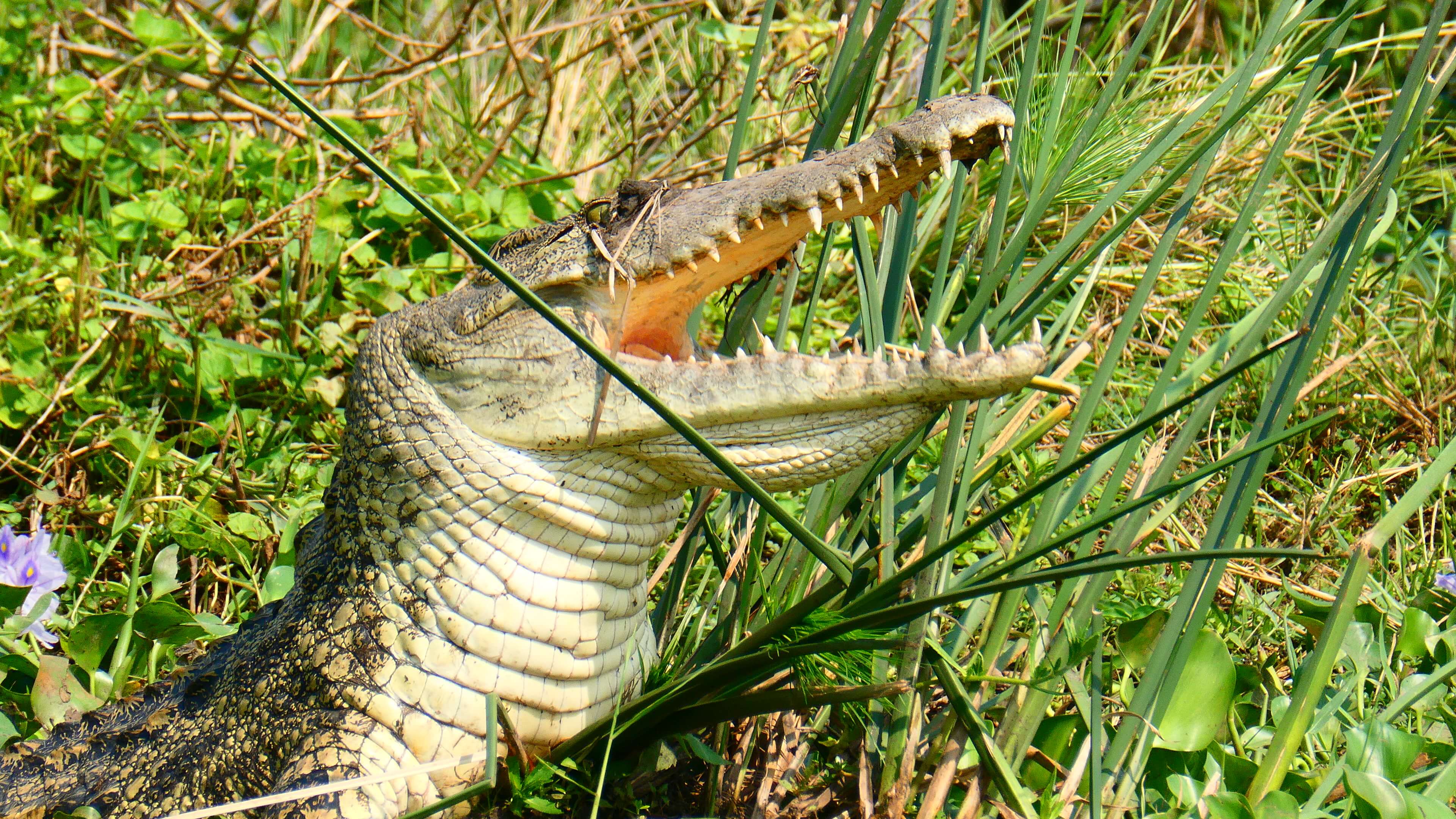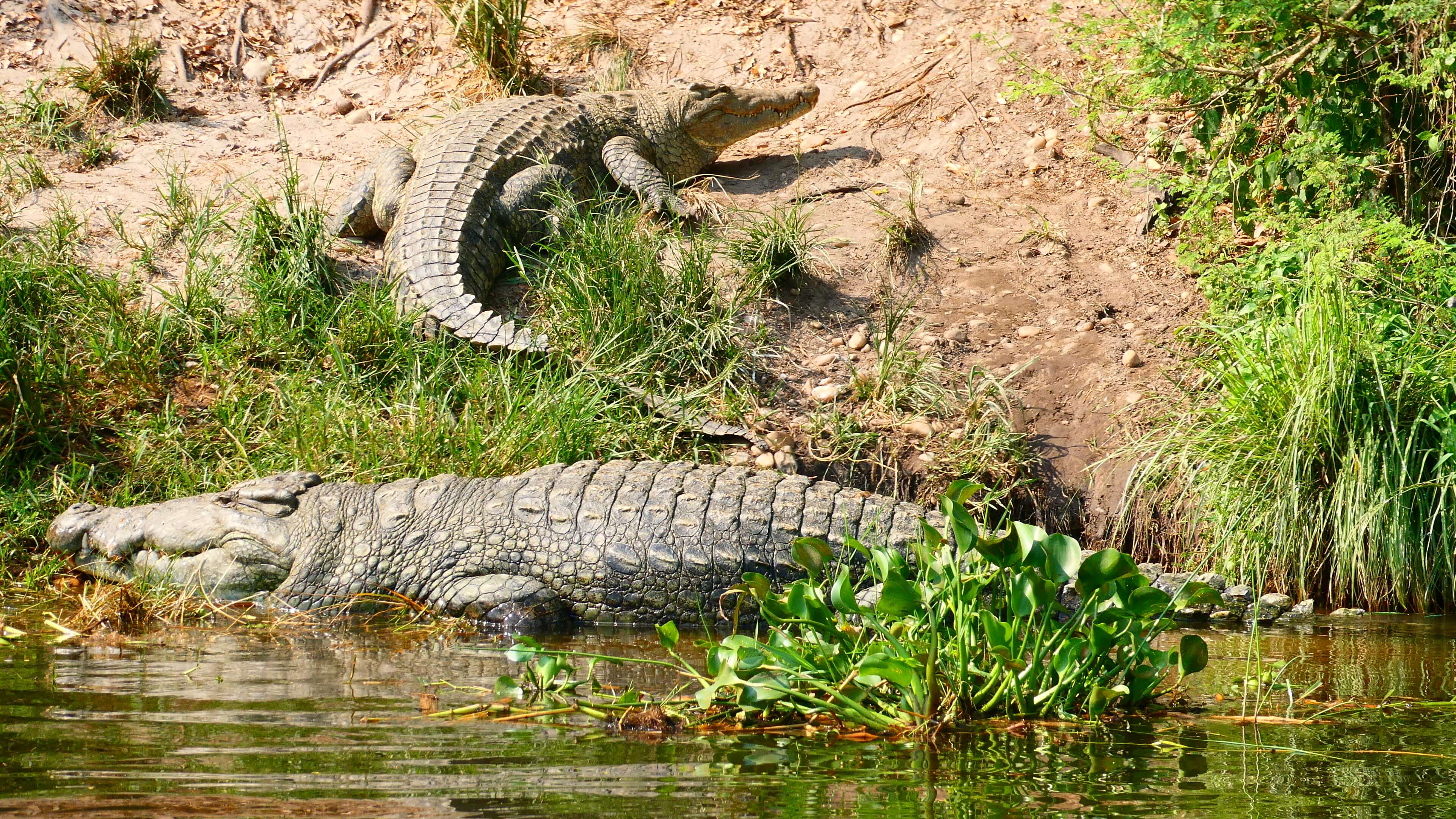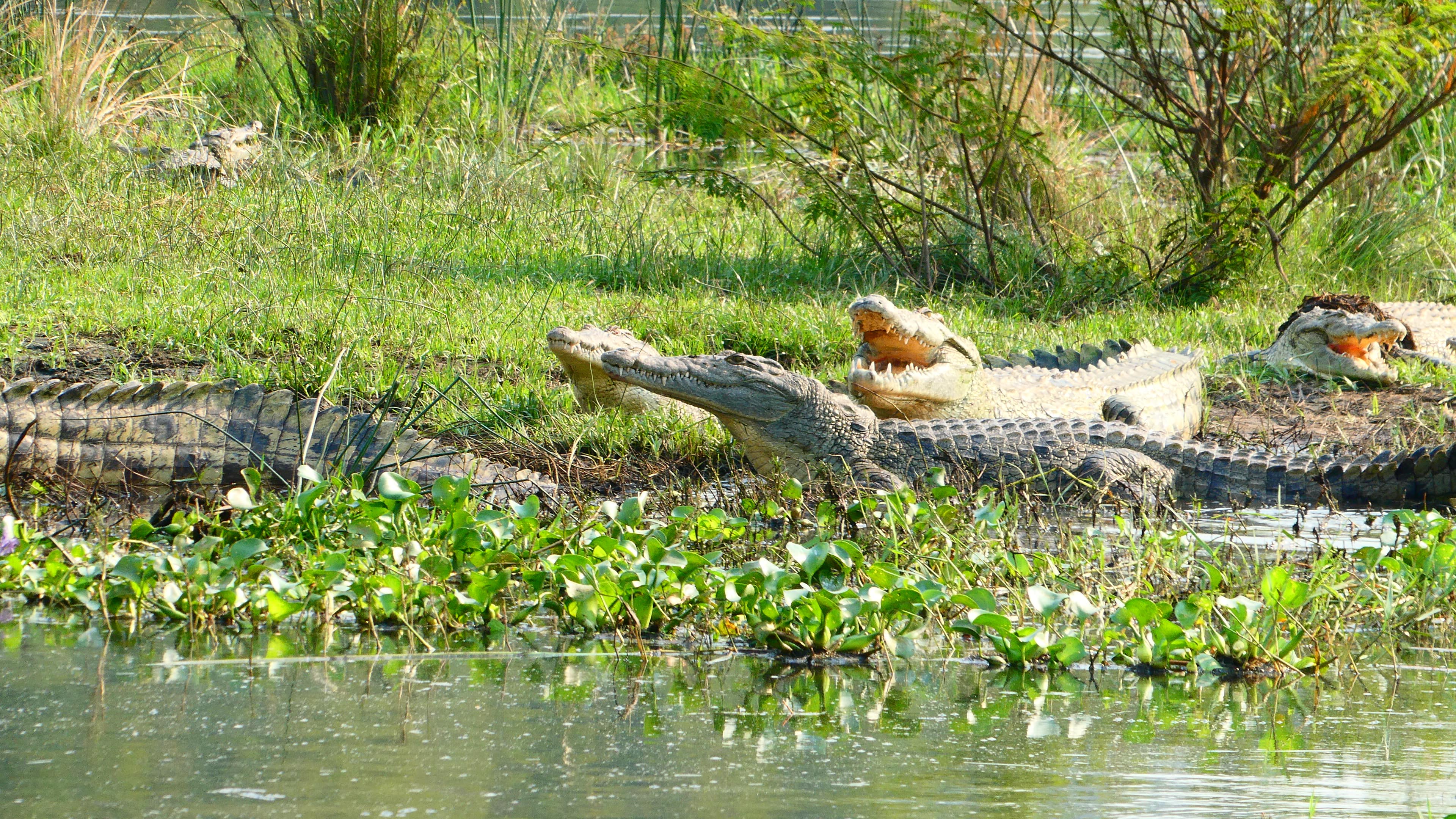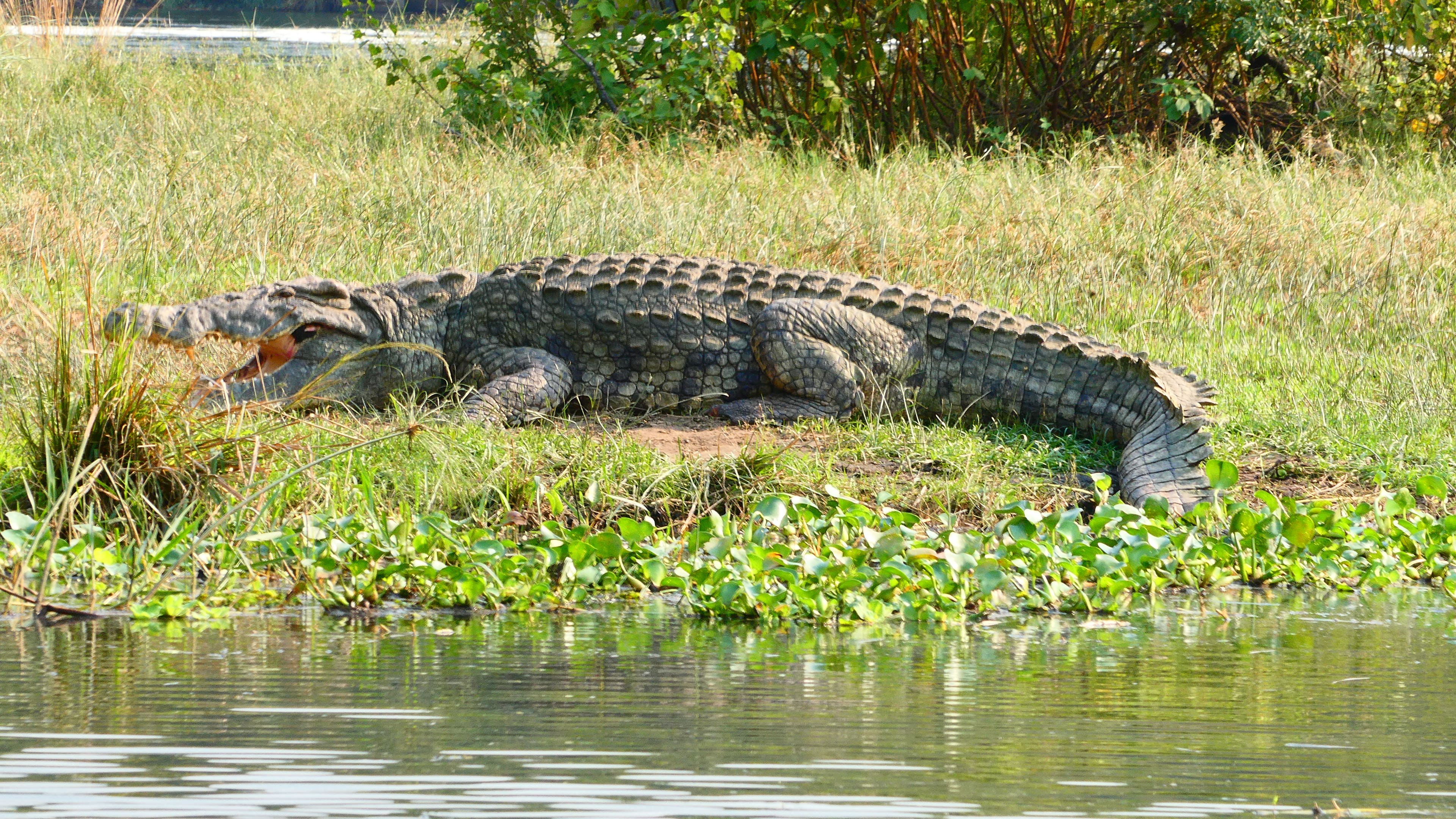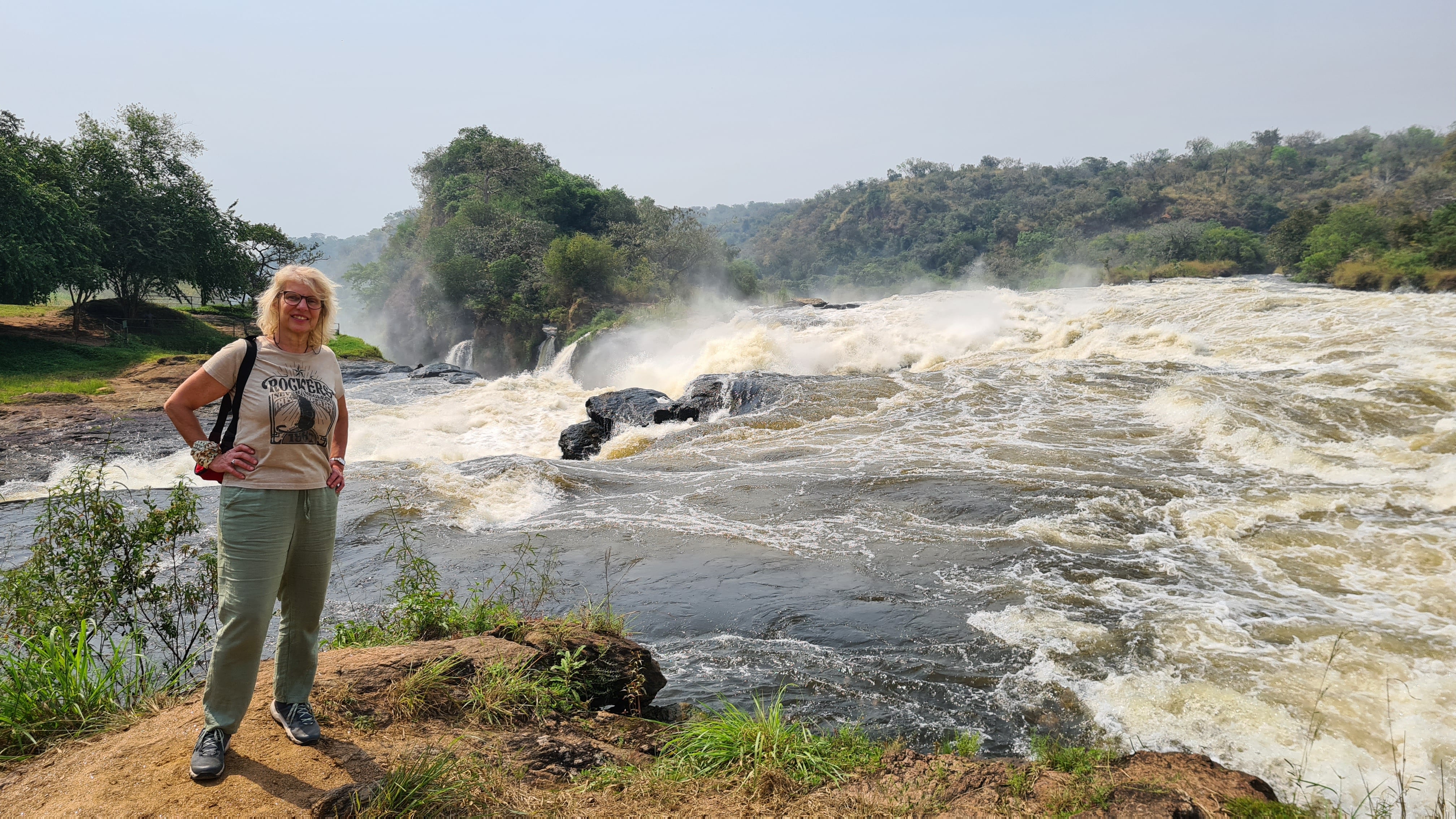 Isaac fährt uns ganz nah ran, an die Nilpferde im Wasserhyazinthen-Pool, die Krokodile beim Sonnenbad und und an die Wasserfälle. Er erklärt und erzählt in einer so lockeren, lustigen und begeisterten Weise, dass Matthias und mir das Grinsen nicht mehr aus dem Gesicht geht.