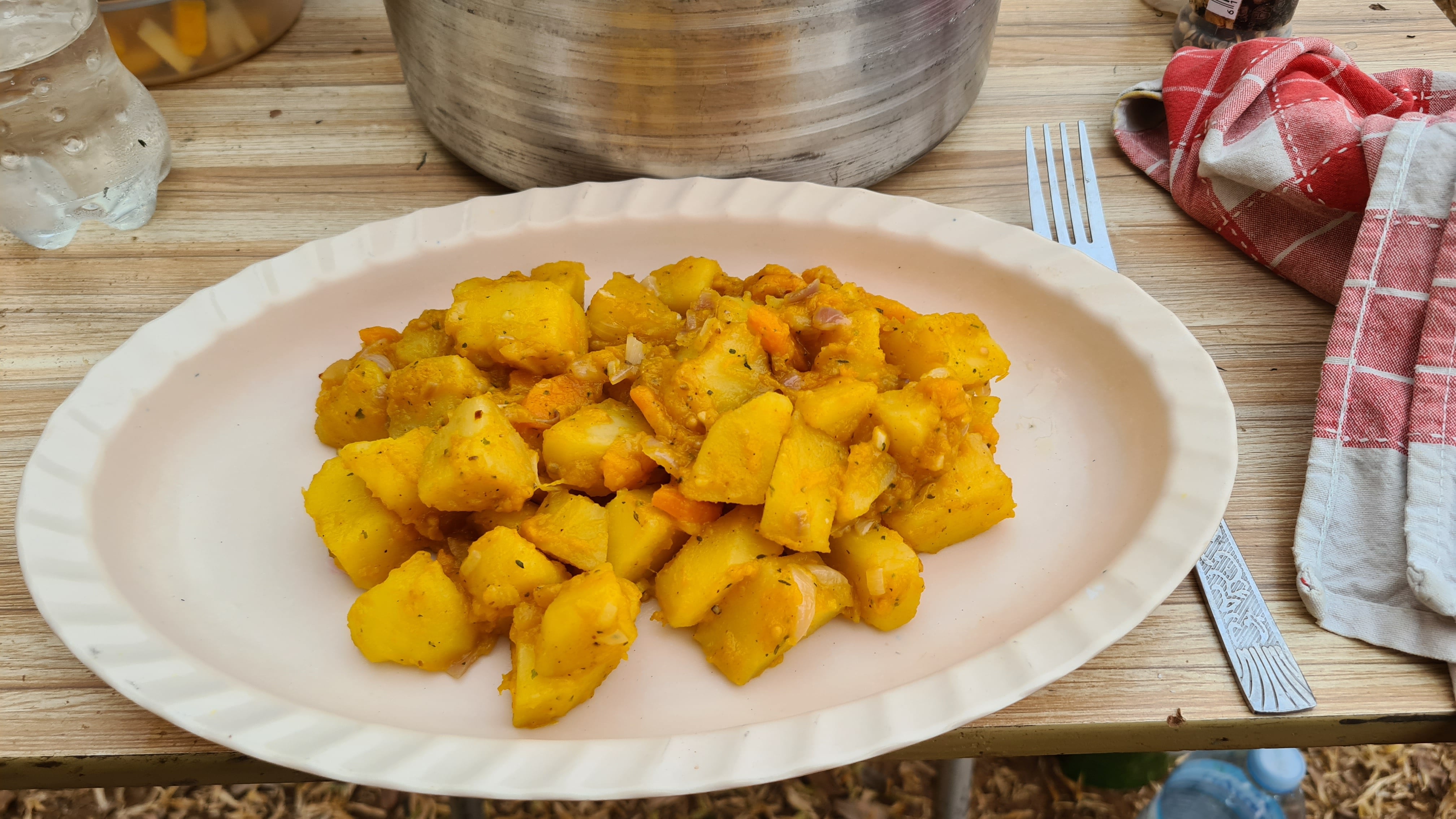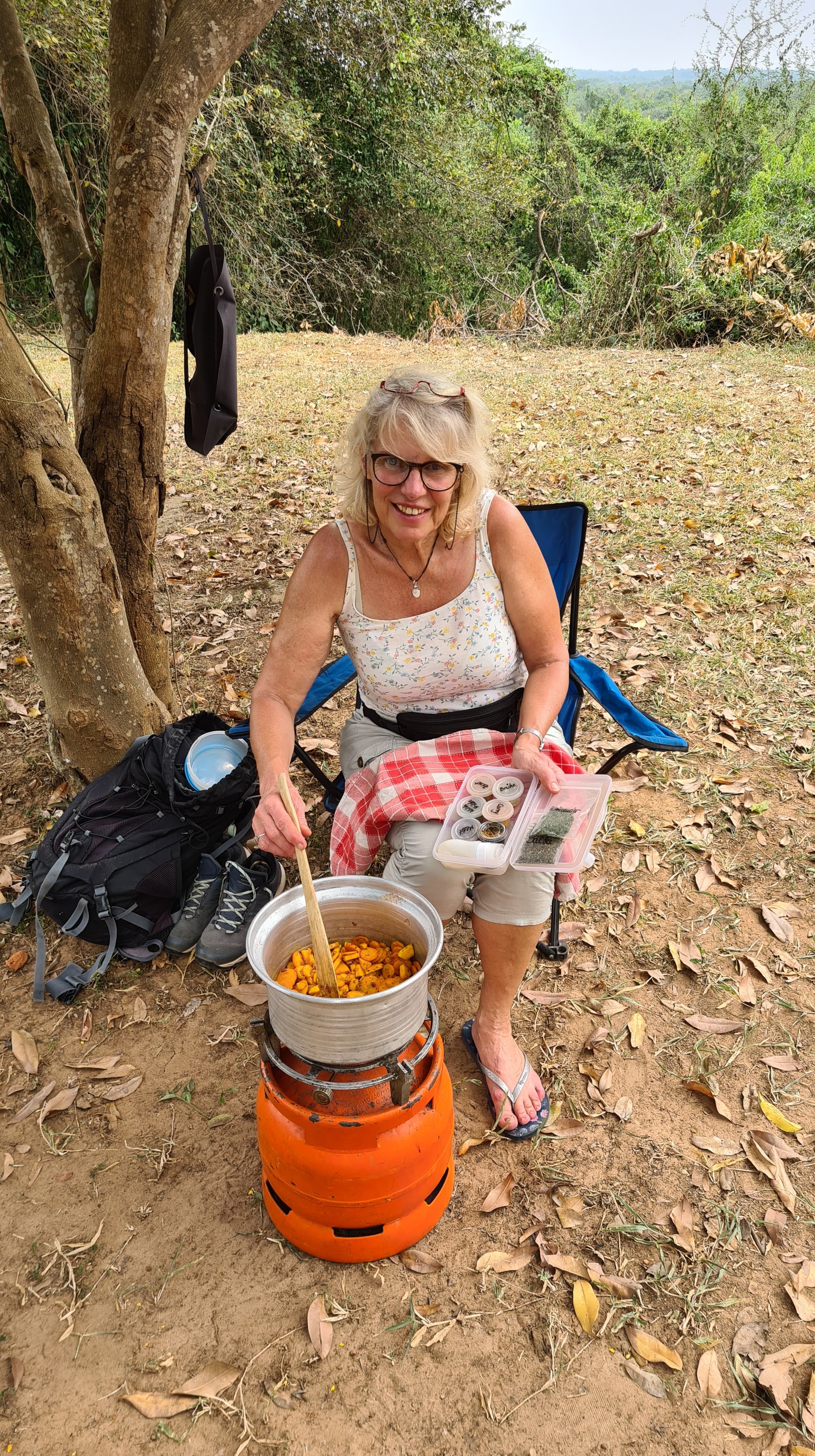 Camingplatz, Cabins und das Restaurant des Red Chilli Rest Camps sind richtig gut besucht. Über die drei Tage ist ein ständiges Kommen und Gehen von kleinen und großen Reisegruppen, Dachzeltcampern und auch einheimischen Gästen. Wir haben es uns wieder am Rande des Geschehens gemütlich gemacht und können großzügig Zelt, Auto und Bestuhlung aufbauen. Das alles für gerade mal 8 $ pP. Während sich die meisten im Restaurant bedienen lassen, schmeißen wir unseren Gaskocher an. Heute stehen Kartoffeln und Kürbis auf dem Speiseplan – kretzschmarsche Portionen und dank meiner von zuhause mitgebrachten Gewürzbar super lecker abgeschmeckt.