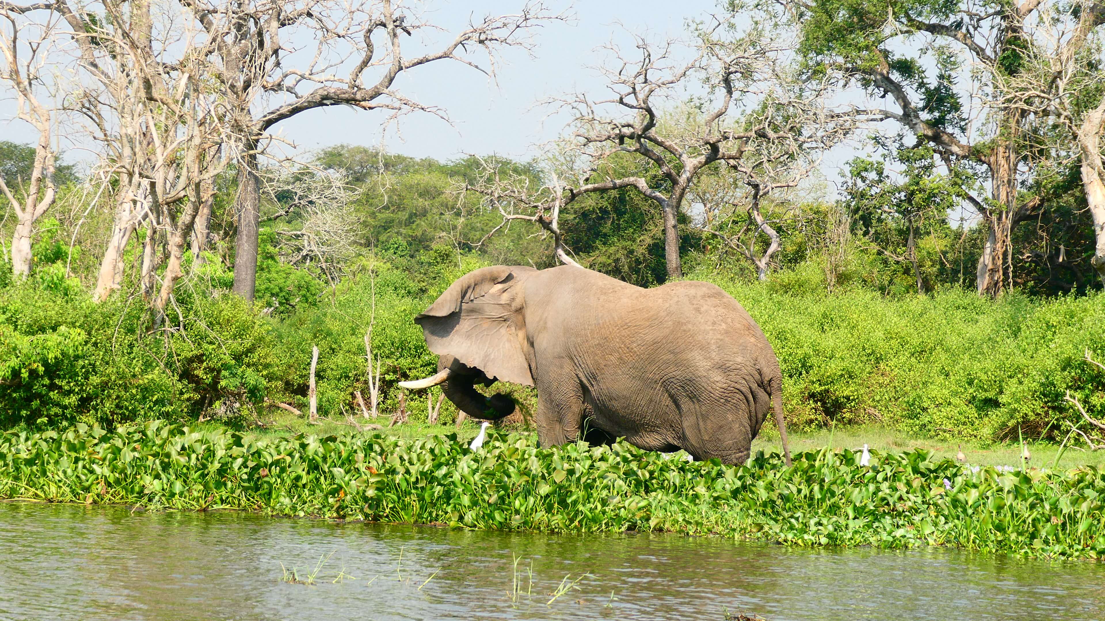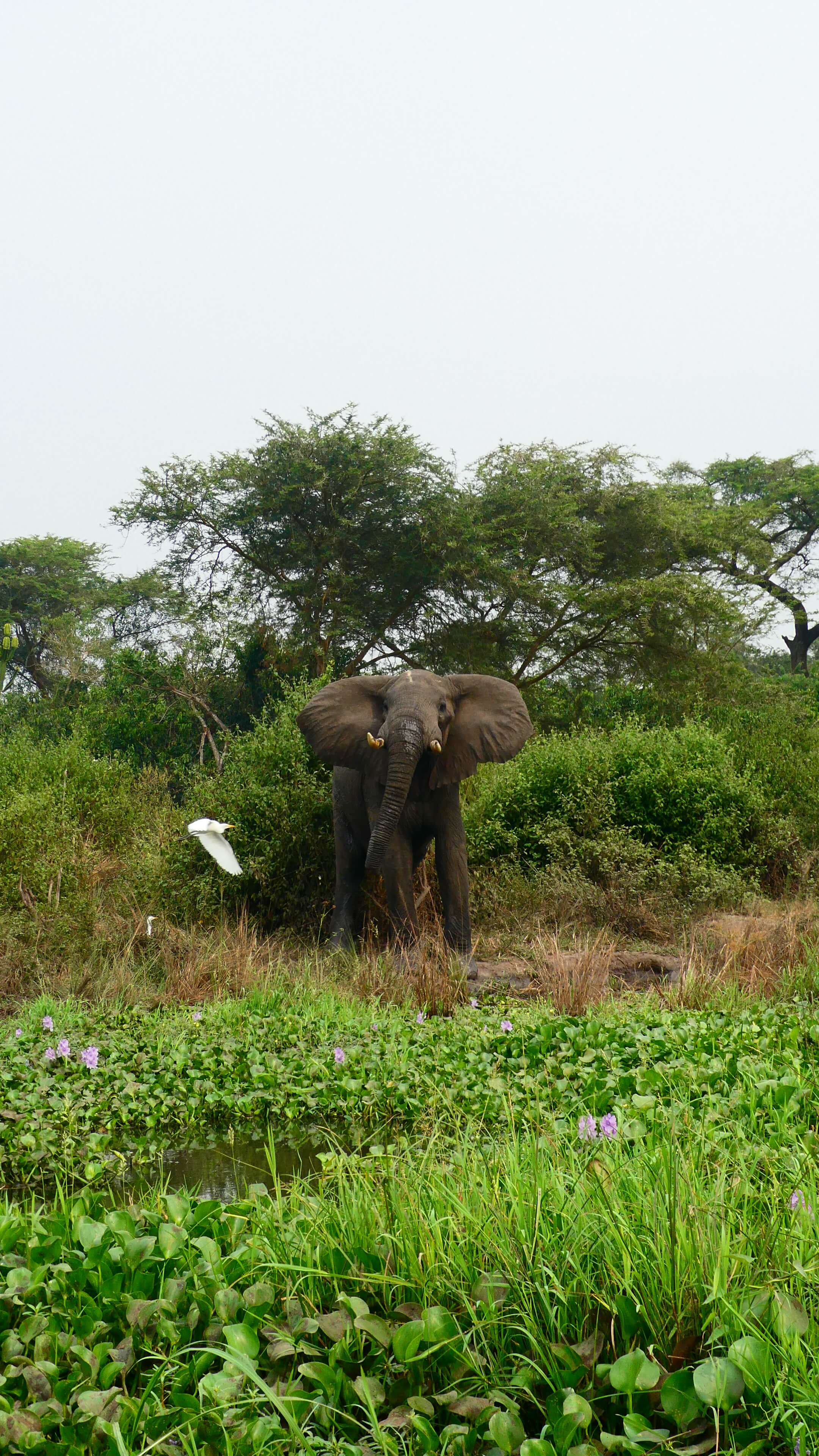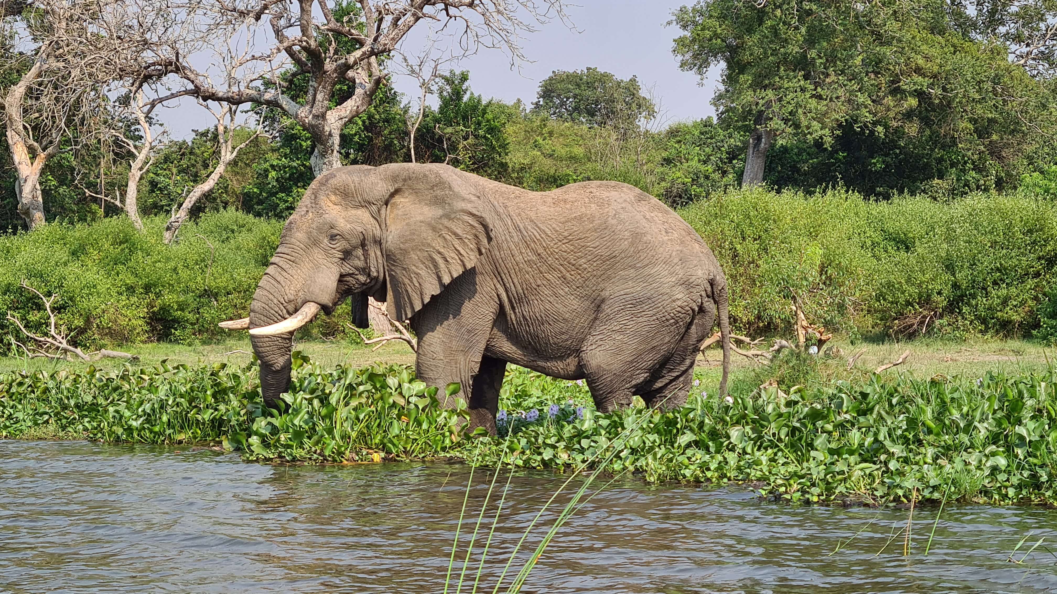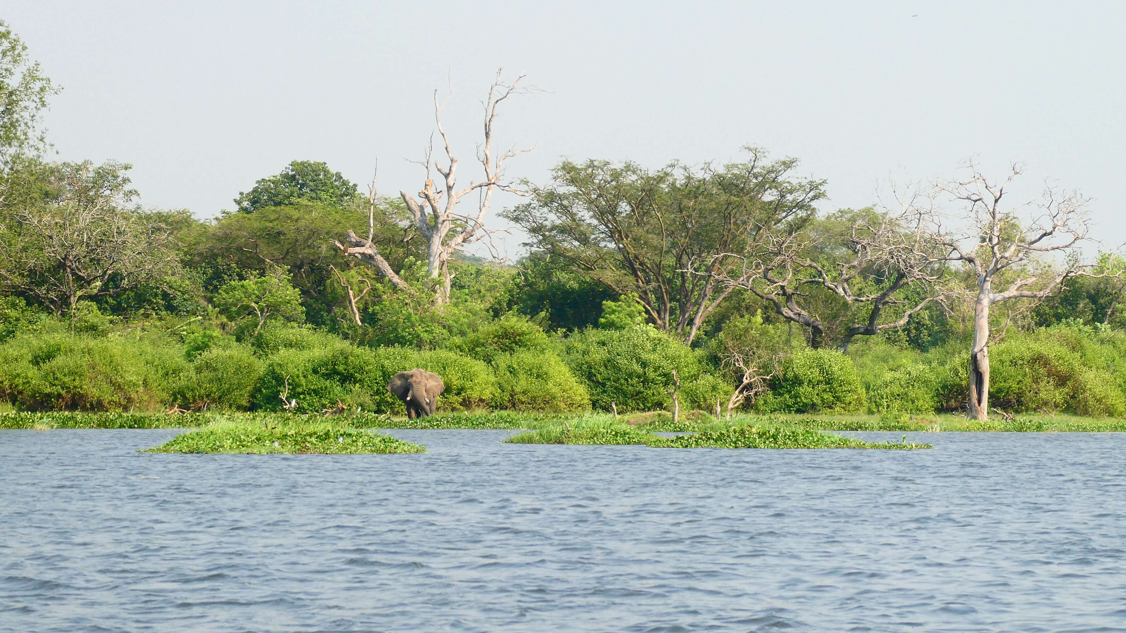 Unsere Reise geht bis in den oberen Teil des Albertsees, wo wir den nicht erlaubten Fangmethoden der Fischer zuschauen. Auf dem Rückweg haben wir dann das Glück, einen Elefantenbullen am Ufer zu entdecken.