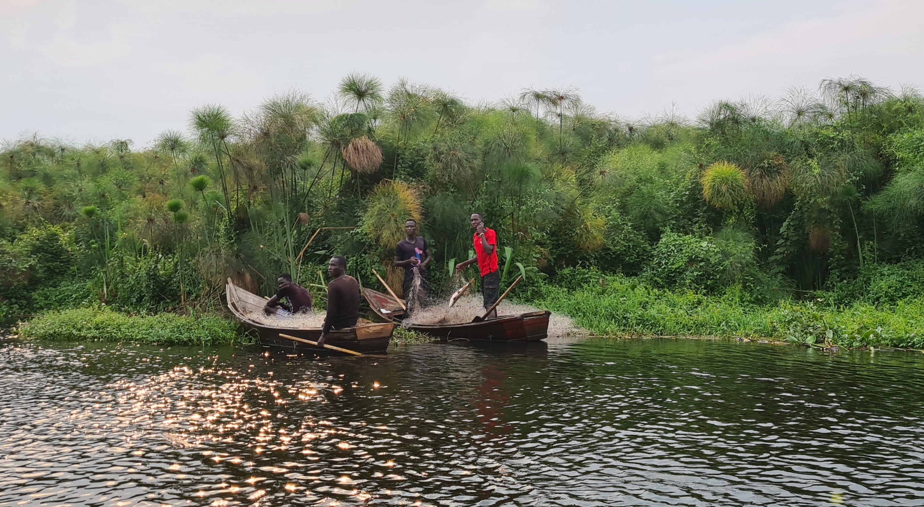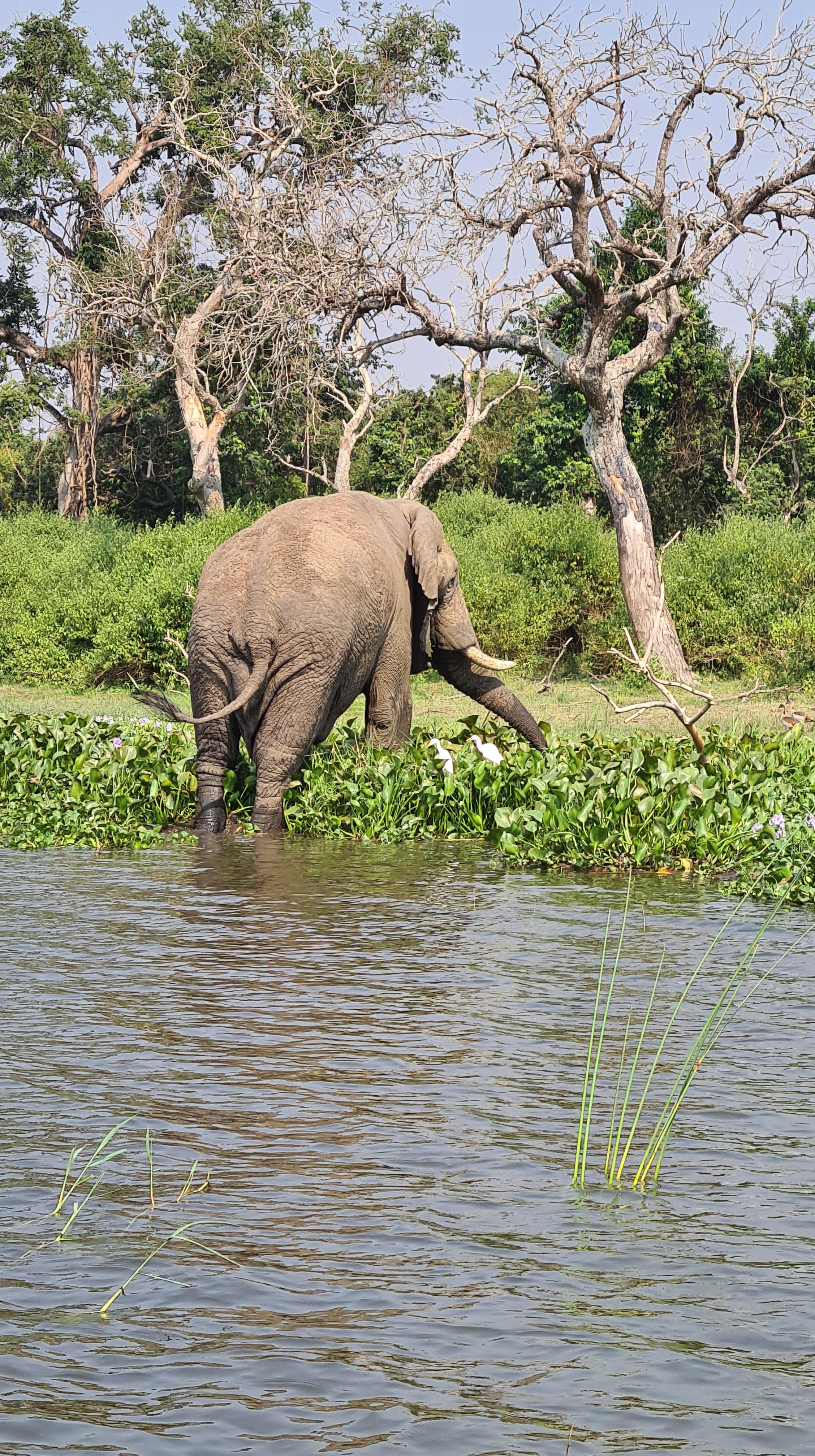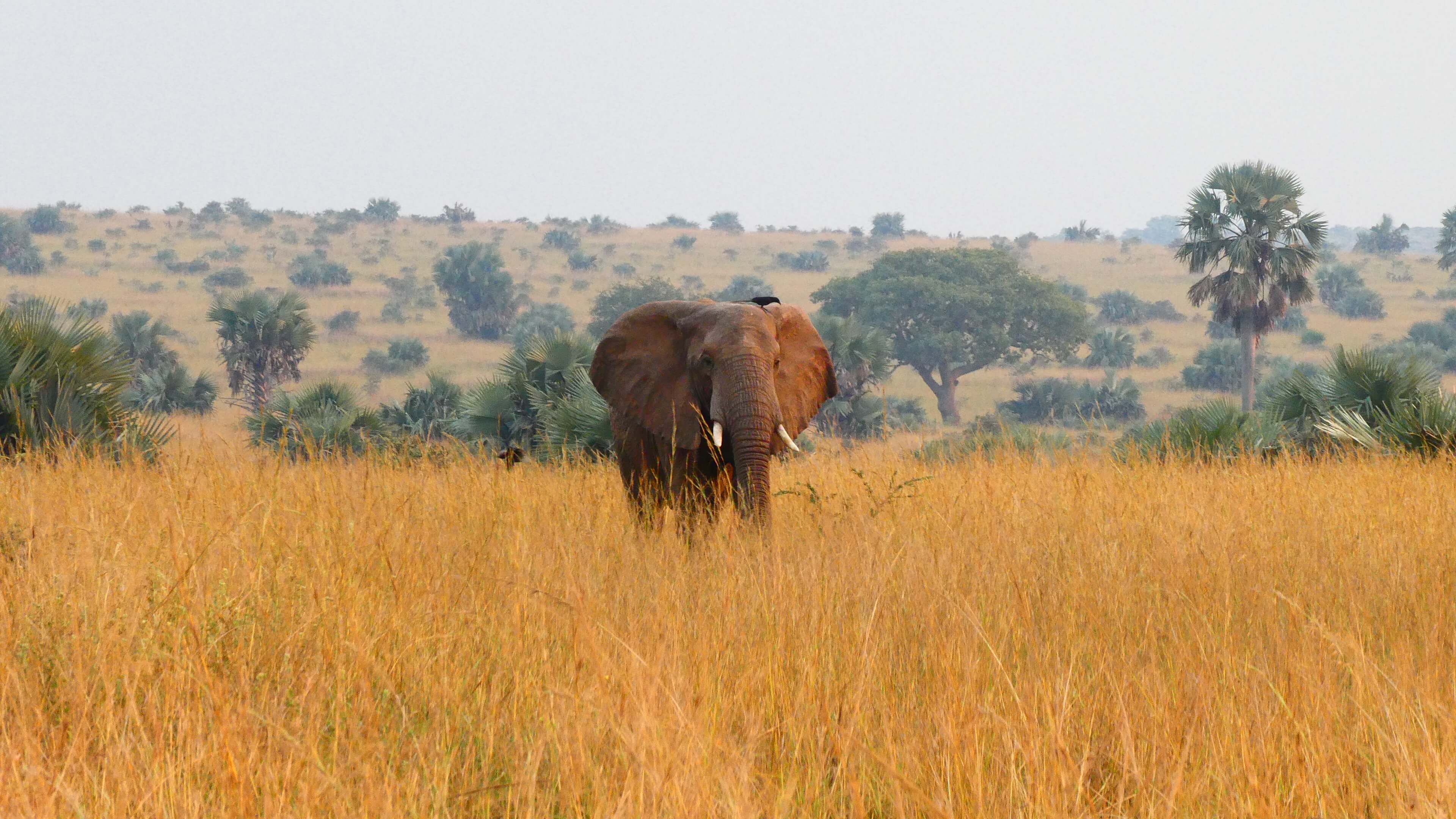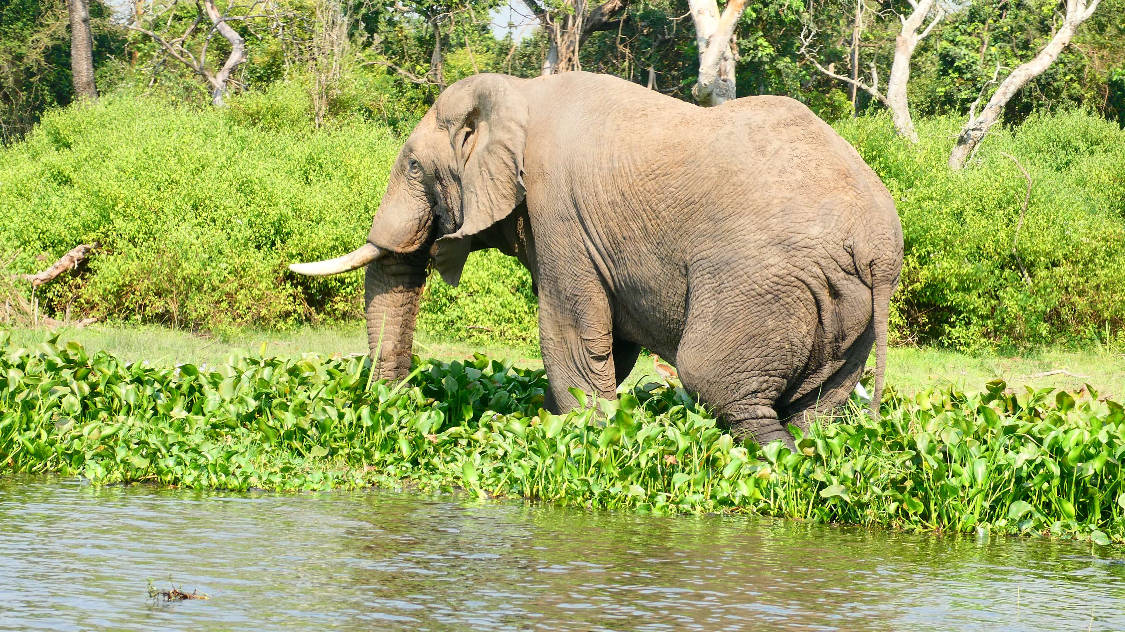 Unsere Reise geht bis in den oberen Teil des Albertsees, wo wir den nicht erlaubten Fangmethoden der Fischer zuschauen. Auf dem Rückweg haben wir dann das Glück, einen Elefantenbullen am Ufer zu entdecken.