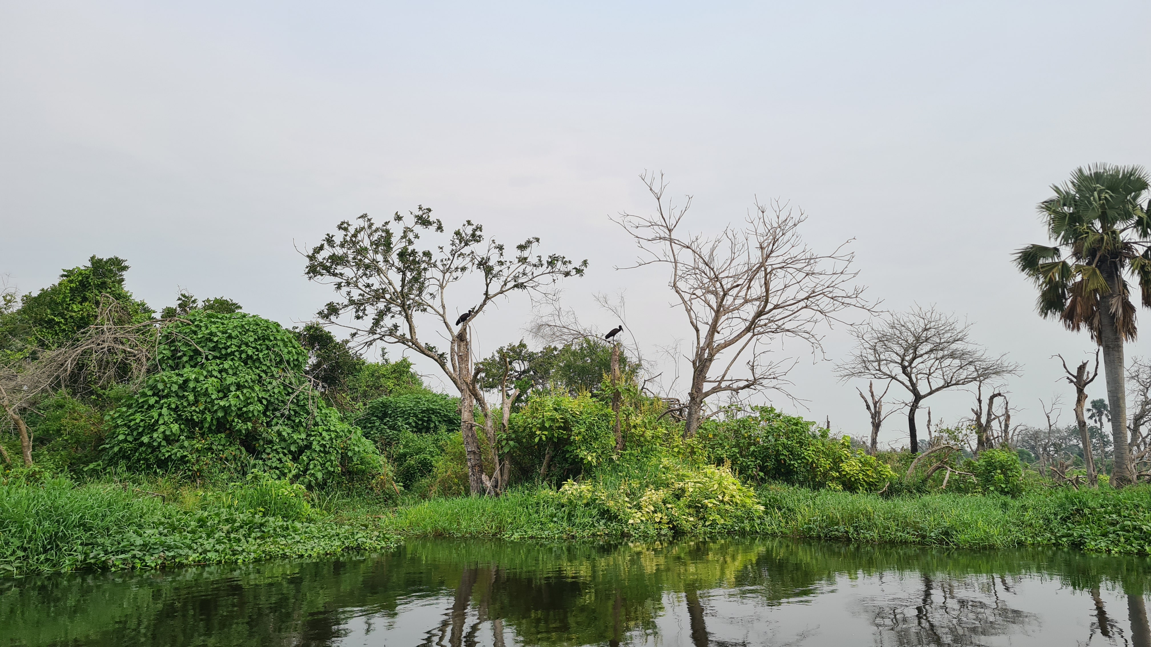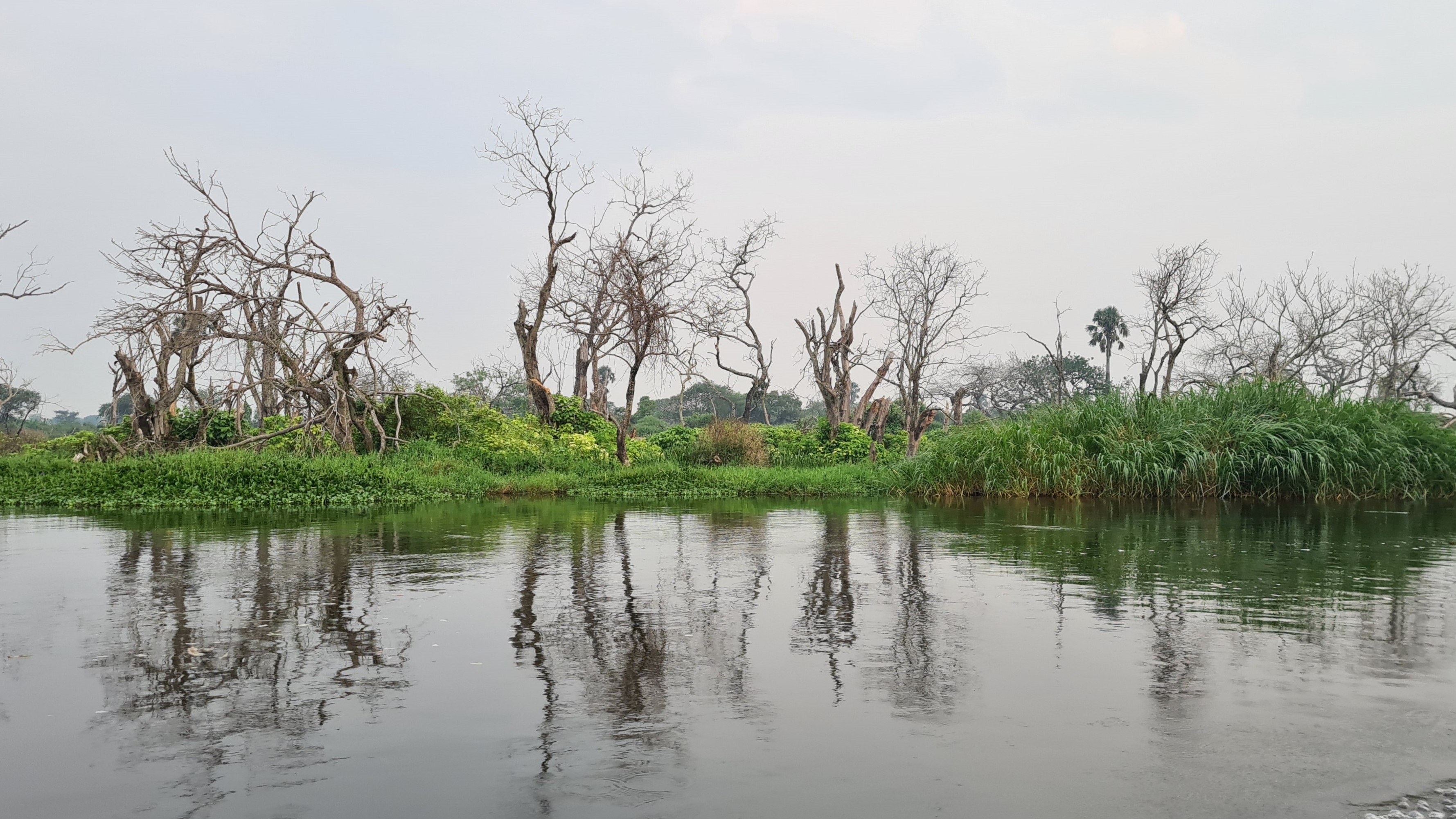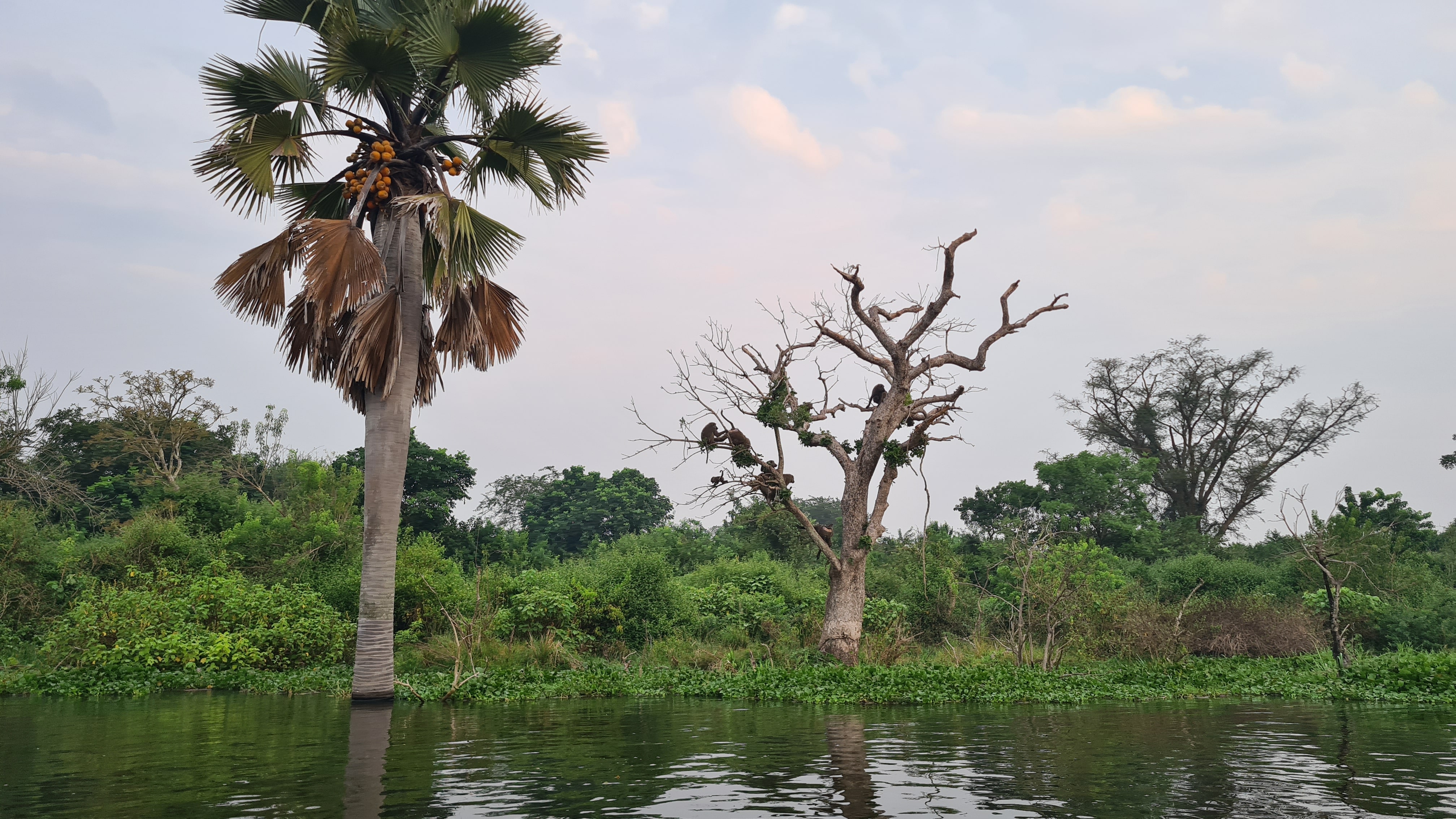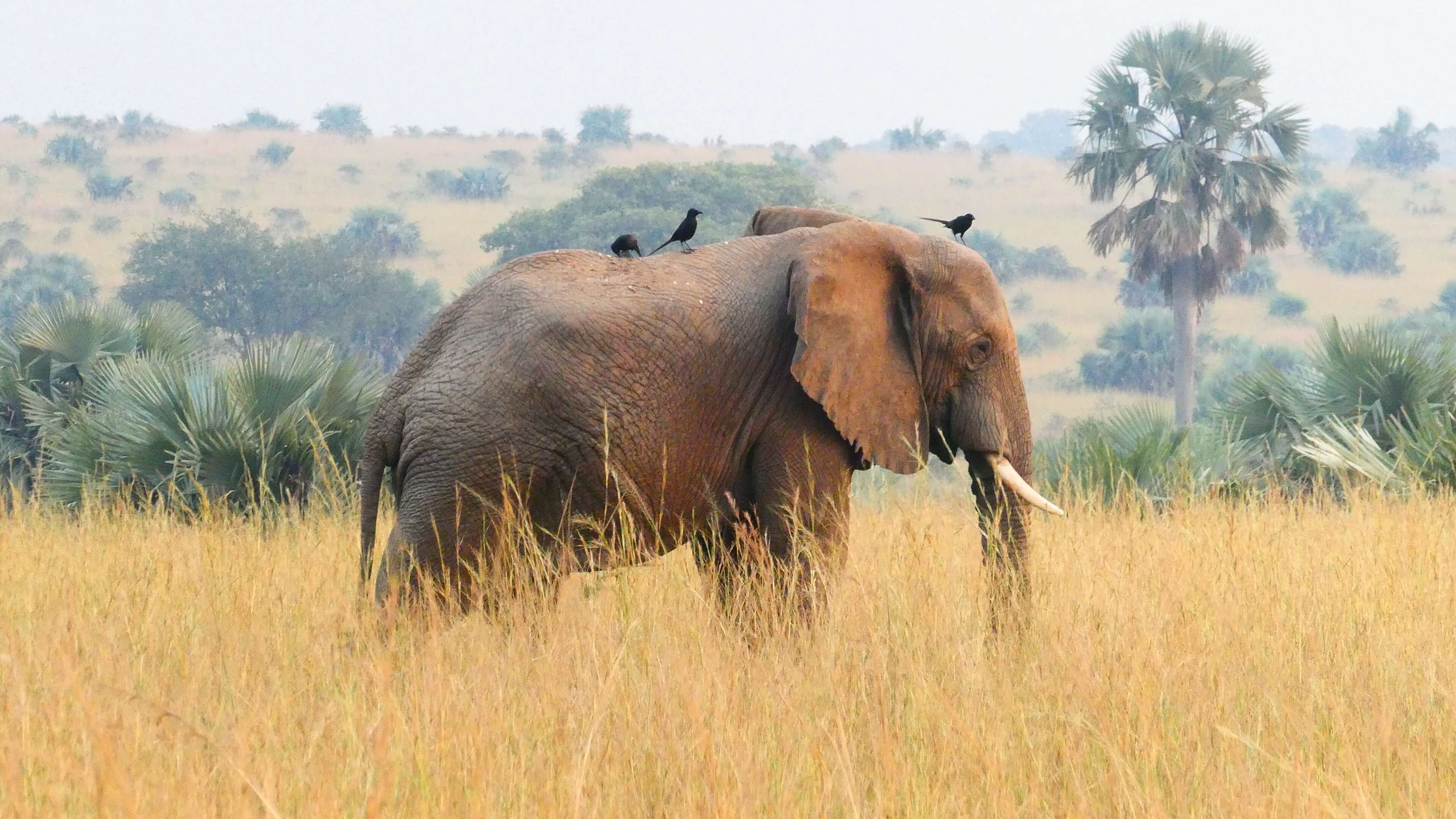 Unsere Reise geht bis in den oberen Teil des Albertsees, wo wir den nicht erlaubten Fangmethoden der Fischer zuschauen. Auf dem Rückweg haben wir dann das Glück, einen Elefantenbullen am Ufer zu entdecken.