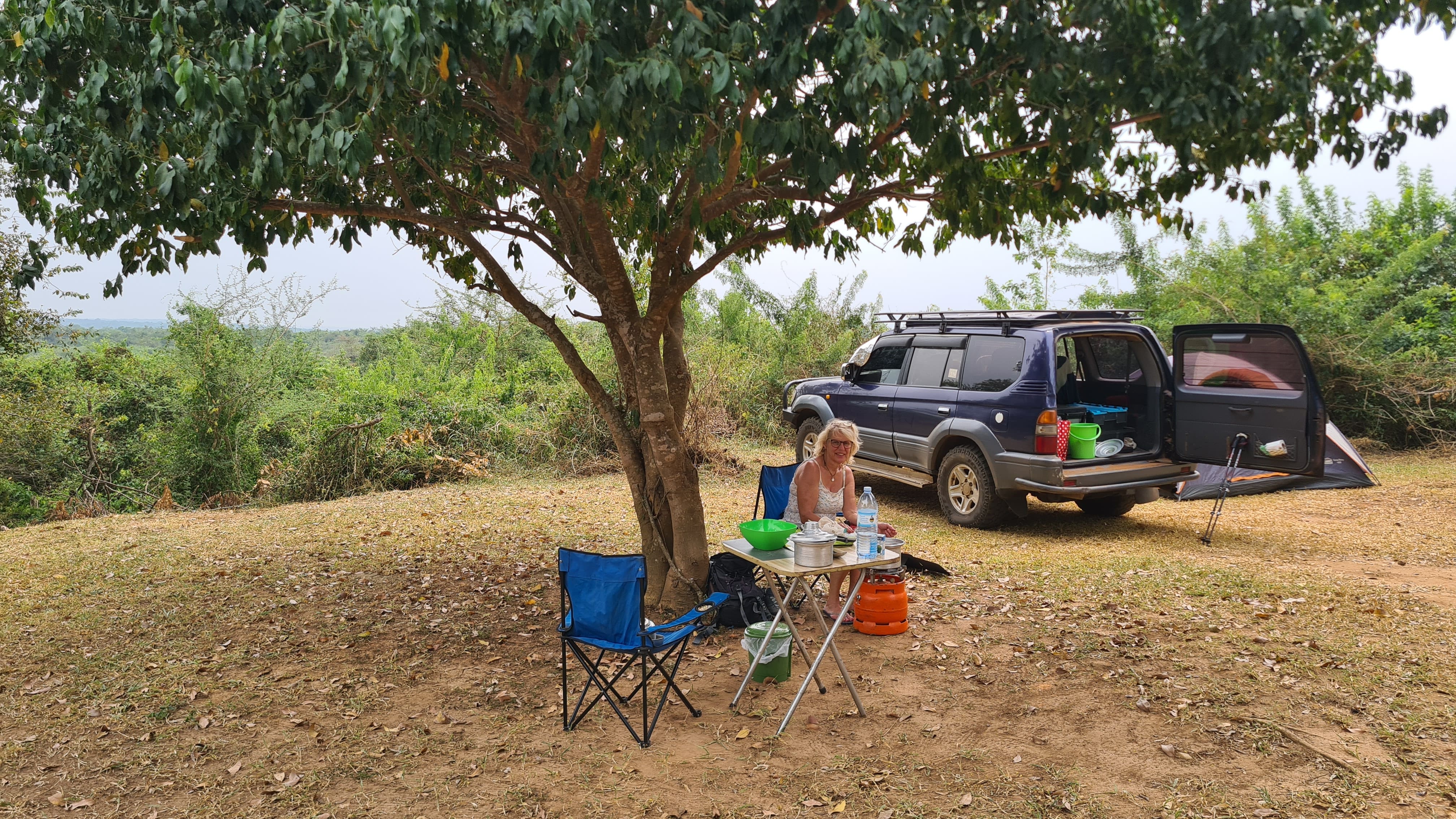 Die heiße Mittagszeit nutzen wir, um unser Abendessen vorzukochen. Leider muckt die Batterie des Toyotas immer noch. Während ich koche, dreht Matthias einige Runden zum Aufladen. Feststeht, dass wir bei unserem Game-Drive auf keinen Fall den Motor ausstellen werden. Das ist uns dann doch zu gewagt.
