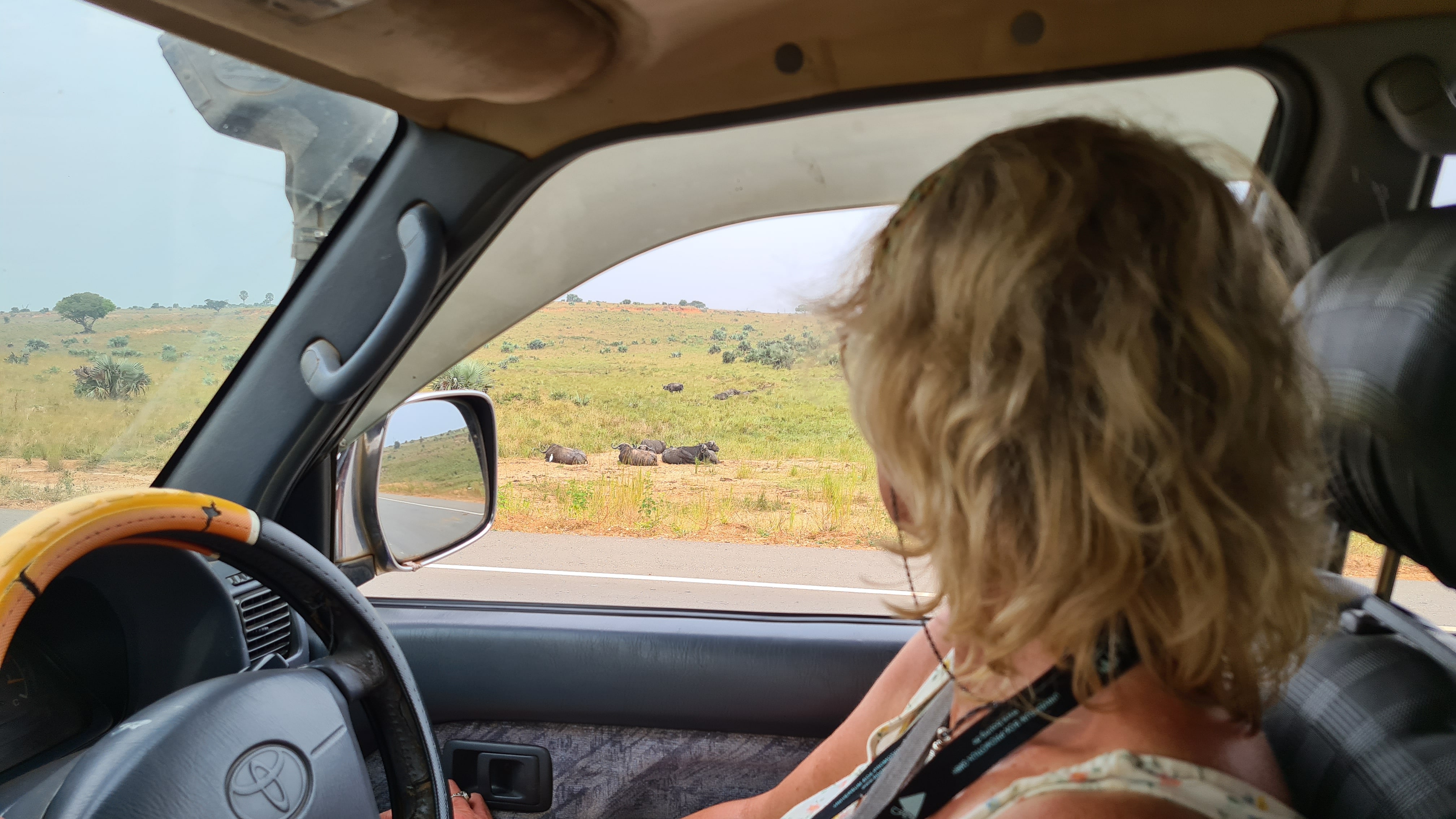 Insgesamt rechnen wir mit einer Fahrzeit von 4-5 Stunden. Wir haben somit ausreichend Gelegenheit, uns mit unserem Allrad, seinen Abmessungen, der schwergängigen Lenkung und dem wuseligen Linksverkehr in Uganda auseinanderzusetzen und vertraut zu machen. Übung macht den Meister!