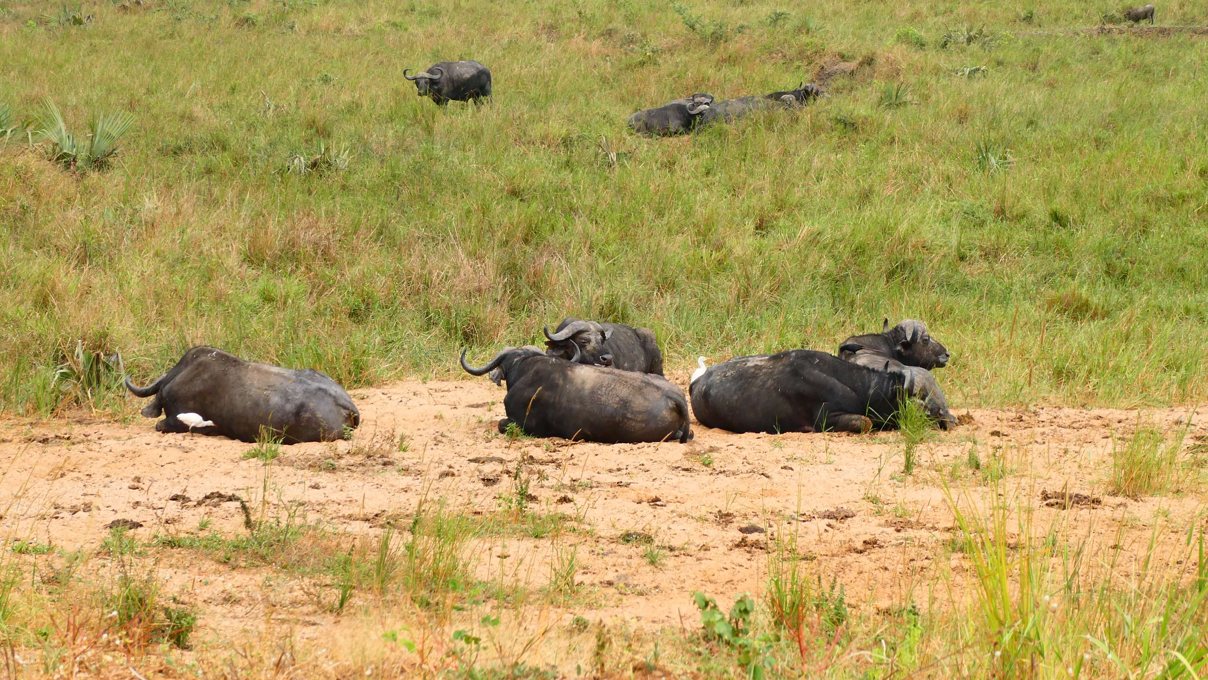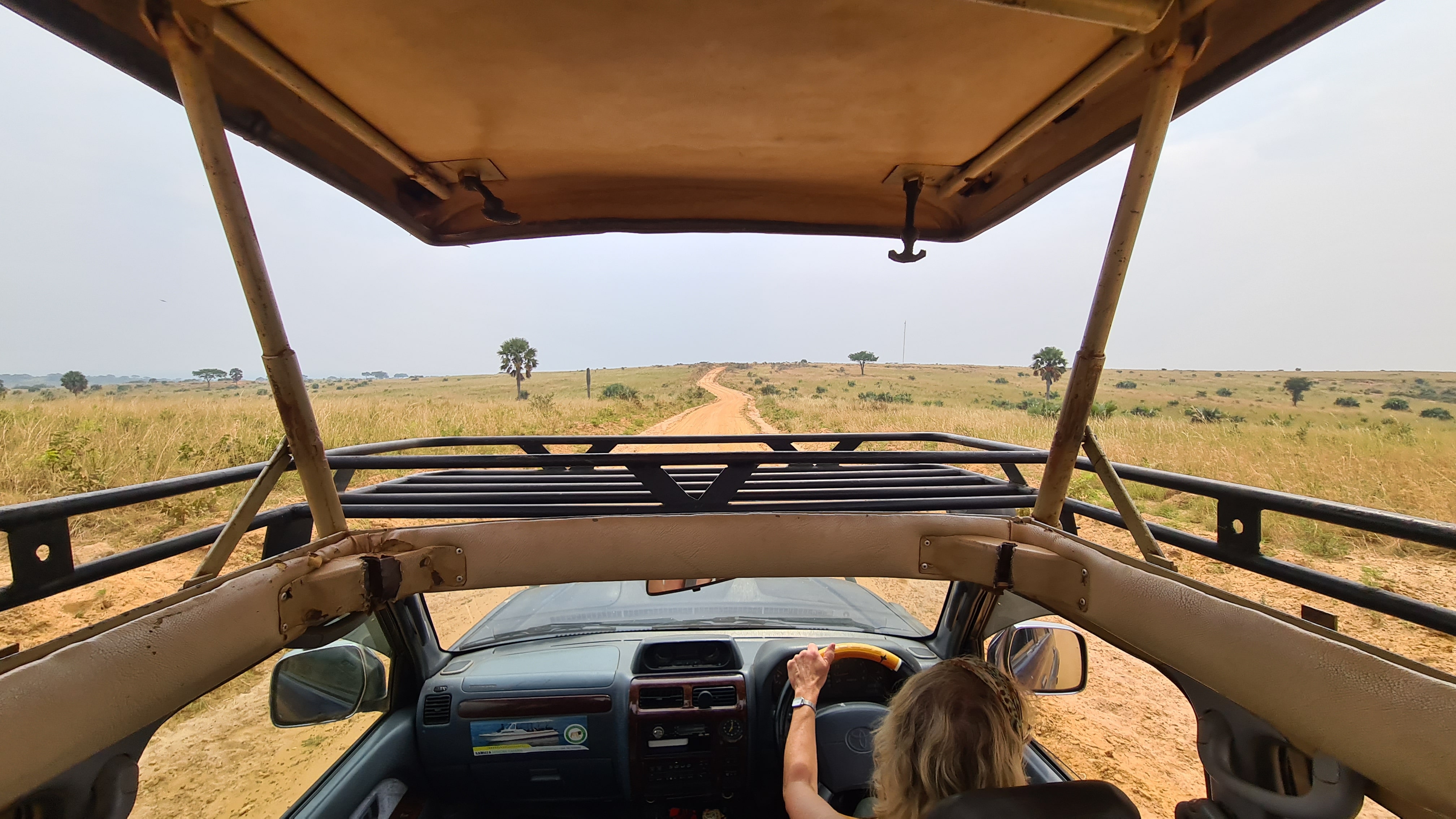 Um 14 Uhr starten wir dann zu unserem ersten eigenen Game-Drive über den südlichen Buligi-Circuit des Murchison Falls National Parks, wo es die größten Chancen auf Tierbeobachtungen gibt. Und was sollen wir sagen: Sensationell! Wir sind antizyklisch und deshalb praktisch alleine unterwegs. Das Fahren habe ich übernommen, da Matthias einfach ein viel besserer Tier-Spotter ist. Mit Rundumblick aus unserem Pop-Up-Dach dirigiert er mich über uneinsichtige Wegverzweigungen, schaut auf maps.me und Co, dass wir uns nicht völlig verfahren und entdeckt ganz nebenbei auch noch jedwedes Lebewesen in nächster und entfernterer Umgebung mit seinen kontaktlinsenunterstützten Adleraugen. Es ist ein Geschenk, dass er diese Reise mit mir teilt!