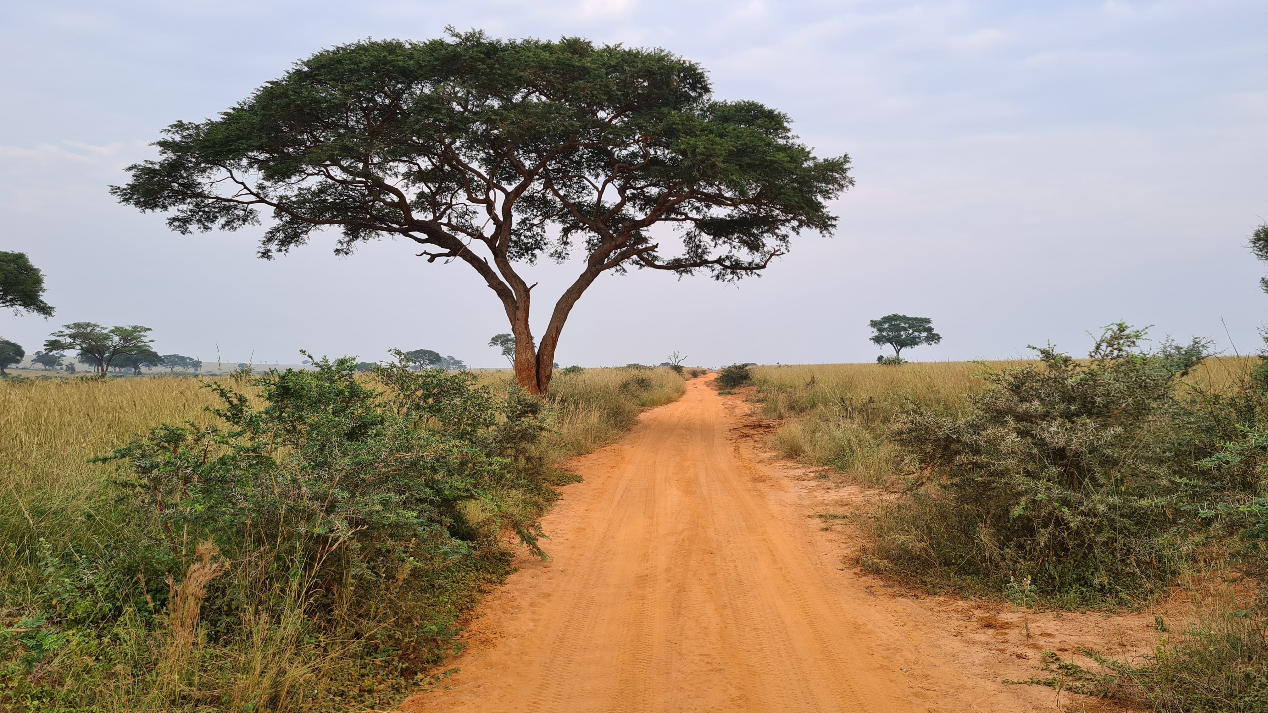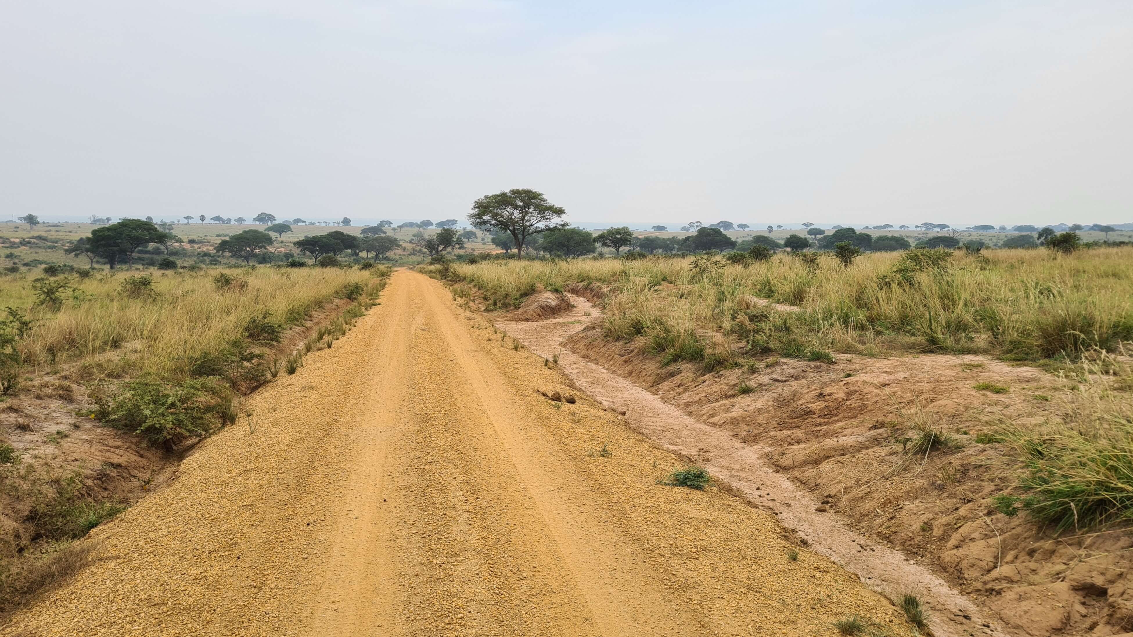 Gut, dass Matthias das Steuer in Masindi übernommen hat, denn meine Rückfahrtalente über die Außenspiegel sind wahrhaftig noch ausbaufähig. Und auch gut, dass wir nur 1-2 Kilometer zurücksetzen müssen, um über die Umfahrung des kleinen Airfields dann doch auf die offizielle Teerstraße zum MFNP zu kommen. Das war also unser erster Lerninhalt zum Thema Self-Drive in Uganda: Hinter jedem Hügel kann ein unpassierbares Hindernis lauern. Ein sicherer Rückzug sollte jederzeit möglich sein.