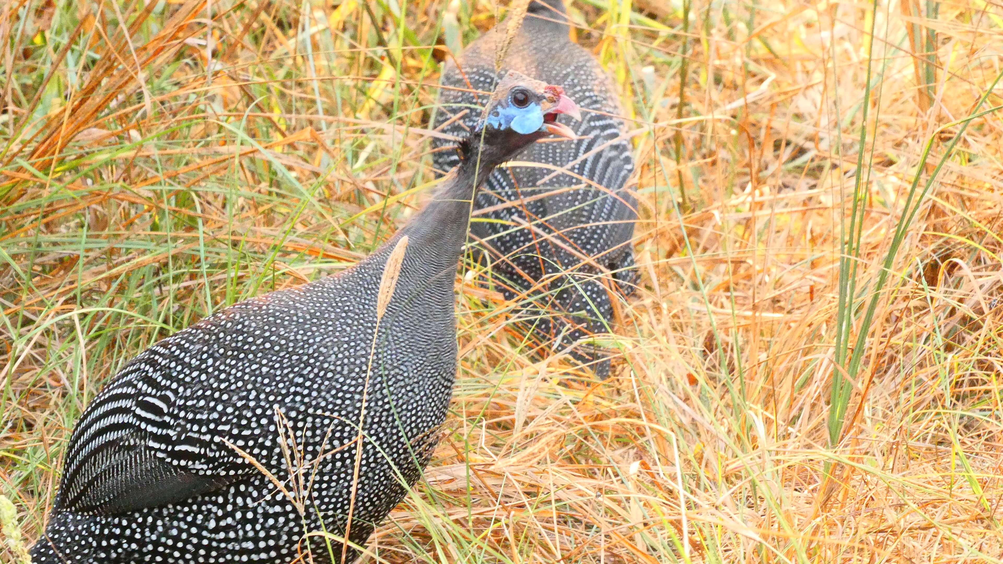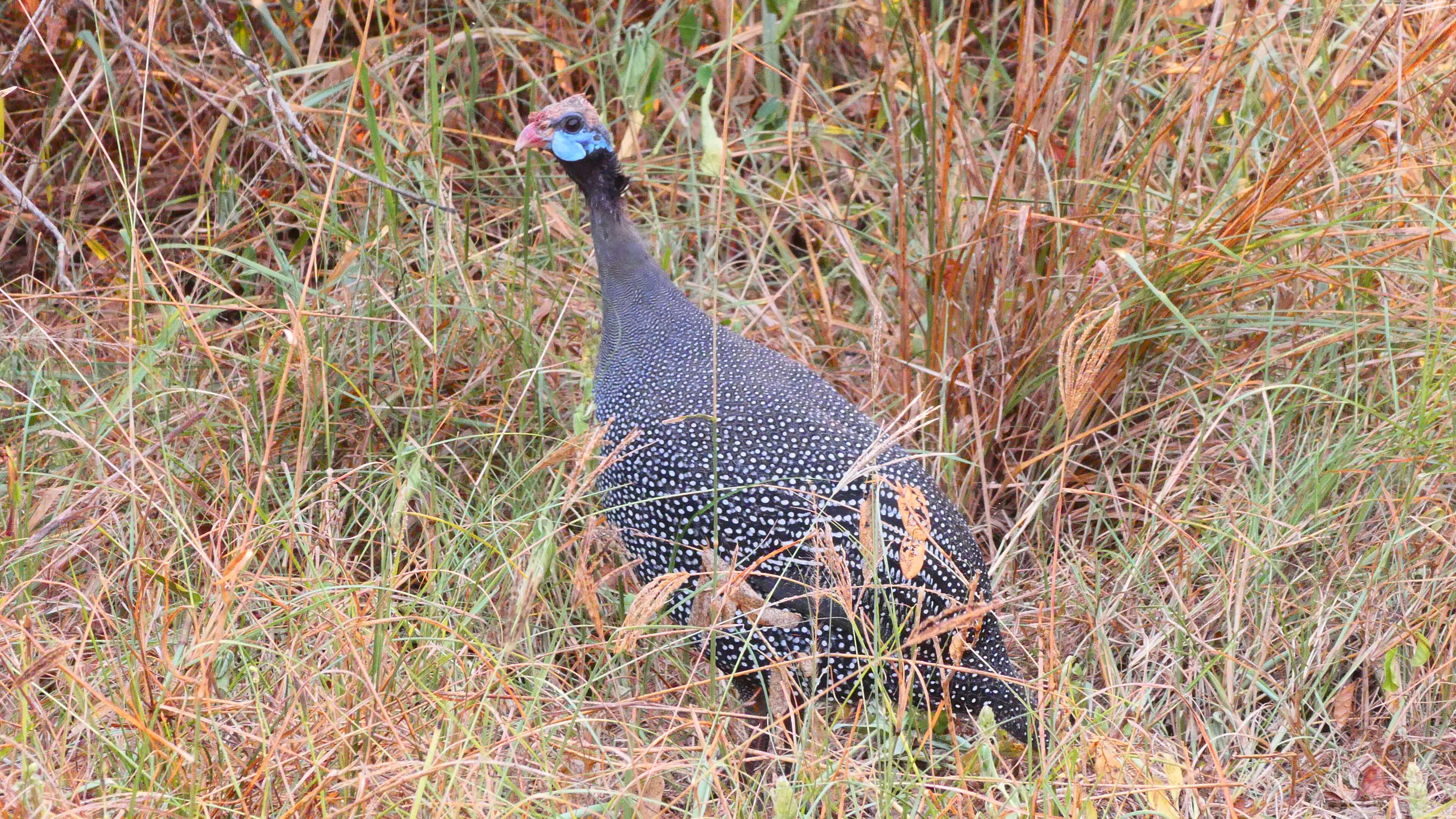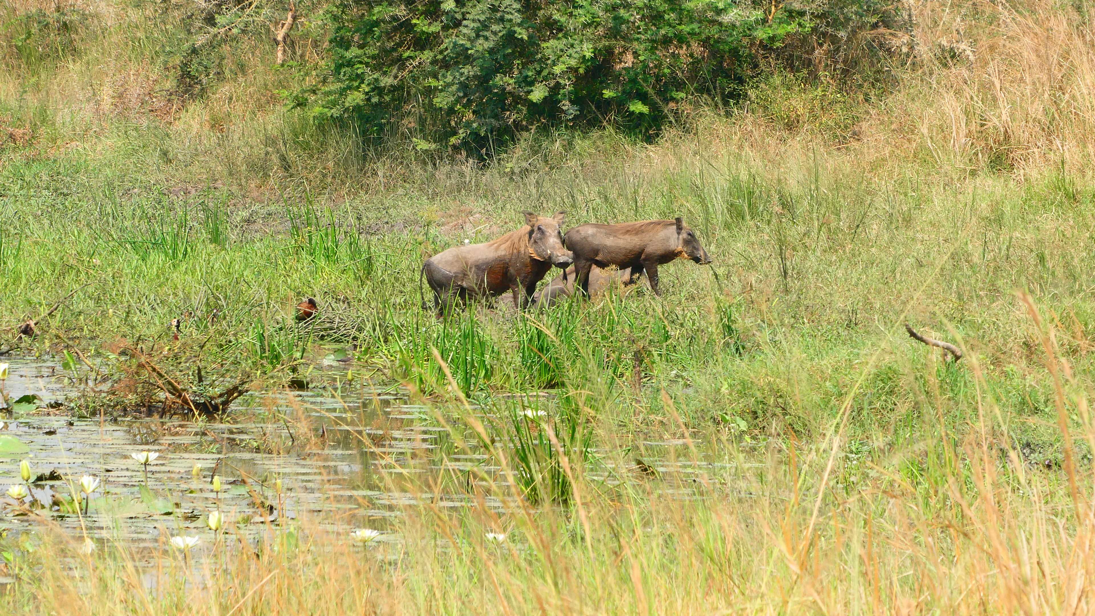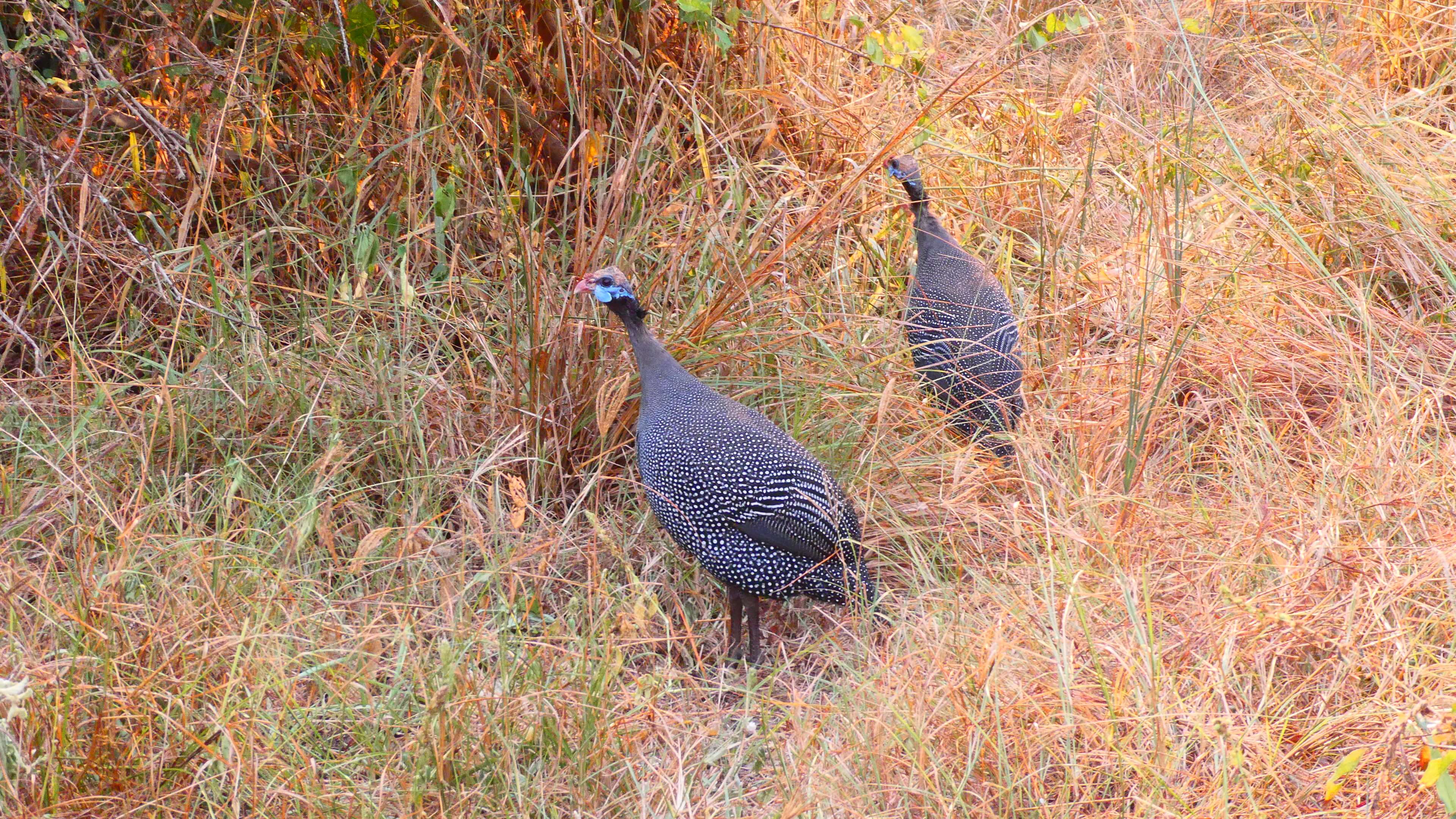 Am nächsten Tag wollen wir uns dem nördlichen Teil der Halbinsel zwischen Victoria- und Albert-Nile widmen und starten wieder früh um 7 Uhr. Die Landschaft hier ist viel buschiger und undurchdringlicher. Den meisten Spaß haben wir mit den aufgescheuchten Hühnern, die zwar Reißaus nehmen, dabei aber eeeeewwwiiiig aufgeregt auf der Fahrbahn rumtippeln, bevor ihnen wohl doch die Puste ausgeht und sie im Gebüsch verschwinden. Nach dem buschigen Gelände führt der Weg weiter durch Wiesen und über Sandbänke, immer wieder müssen wir umkehren und bessere Alternativen suchen.