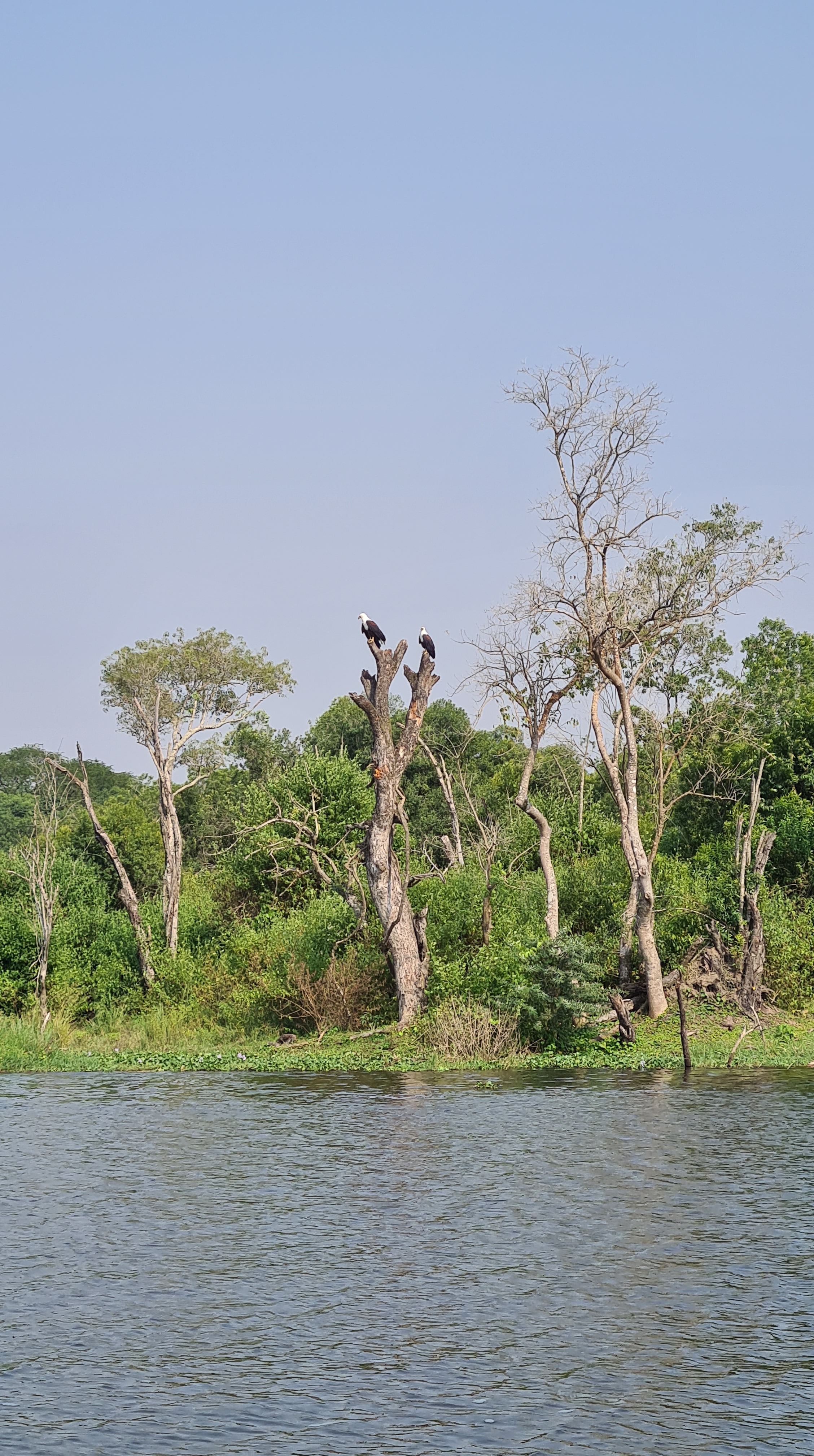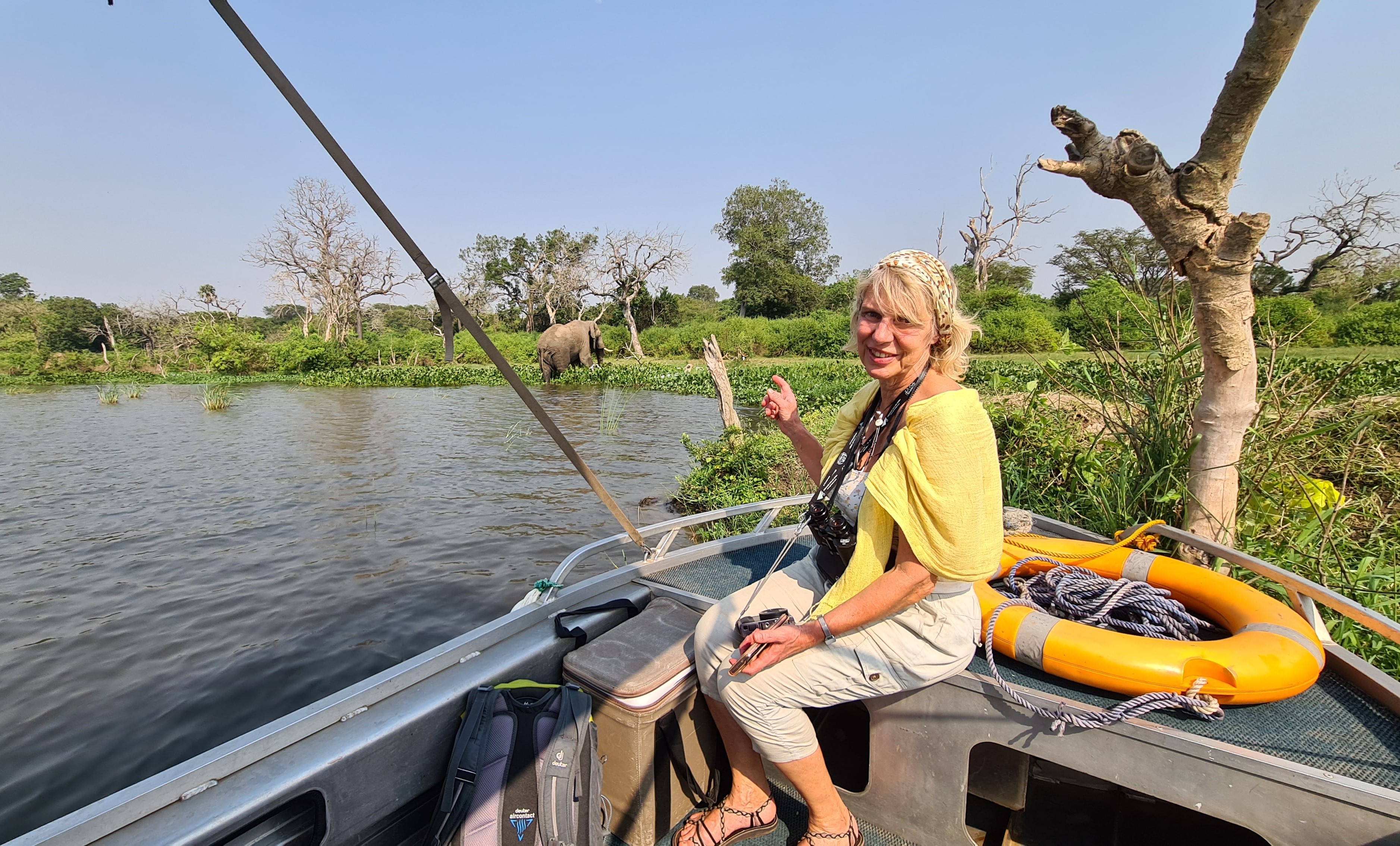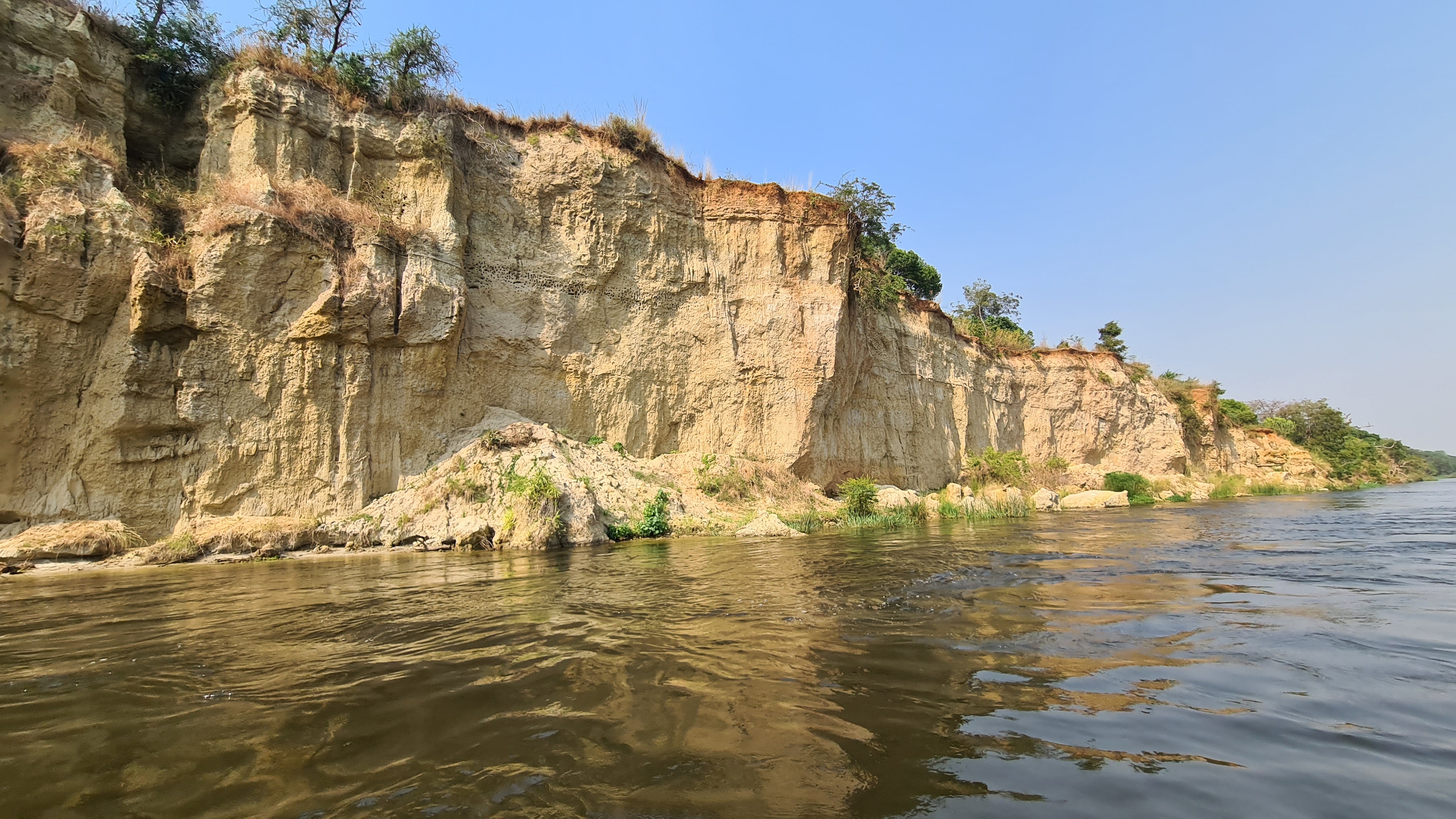 Für nachmittags hatten wir nun doch noch die Bootsfahrt in die andere Richtung zum „Bottom of the Falls“ ins Auge gefasst. Die Dame von Wild Frontiers hatte uns erklärt, wir sollten einfach um 13.40 Uhr an der Bootsanlegestelle sein, eine Reservierung wäre vorher nicht nötig. Oha, als wir wegen Matthias Rumtrödelei verspätet um 10 vor 2 einlaufen, ist das riesige Touriboot schon fast voll beladen und es stehen noch einige Fahrgäste rum. So hatten wir uns das nicht vorgestellt, dachten wir doch, die Tour zu den Wasserfällen fände auch in kleinen Booten statt. Wir schauen etwas ratlos und enttäuscht aus der Wäsche, doch wir wären nicht in Afrika, wenn da nicht doch noch etwas ginge. Wir müssen zwar noch etwas warten, aber dann kommt Isaac und nimmt uns mit auf eine traumhafte Private Tour. Ja, so ein Glück! Die Letzten werden die Ersten sein.