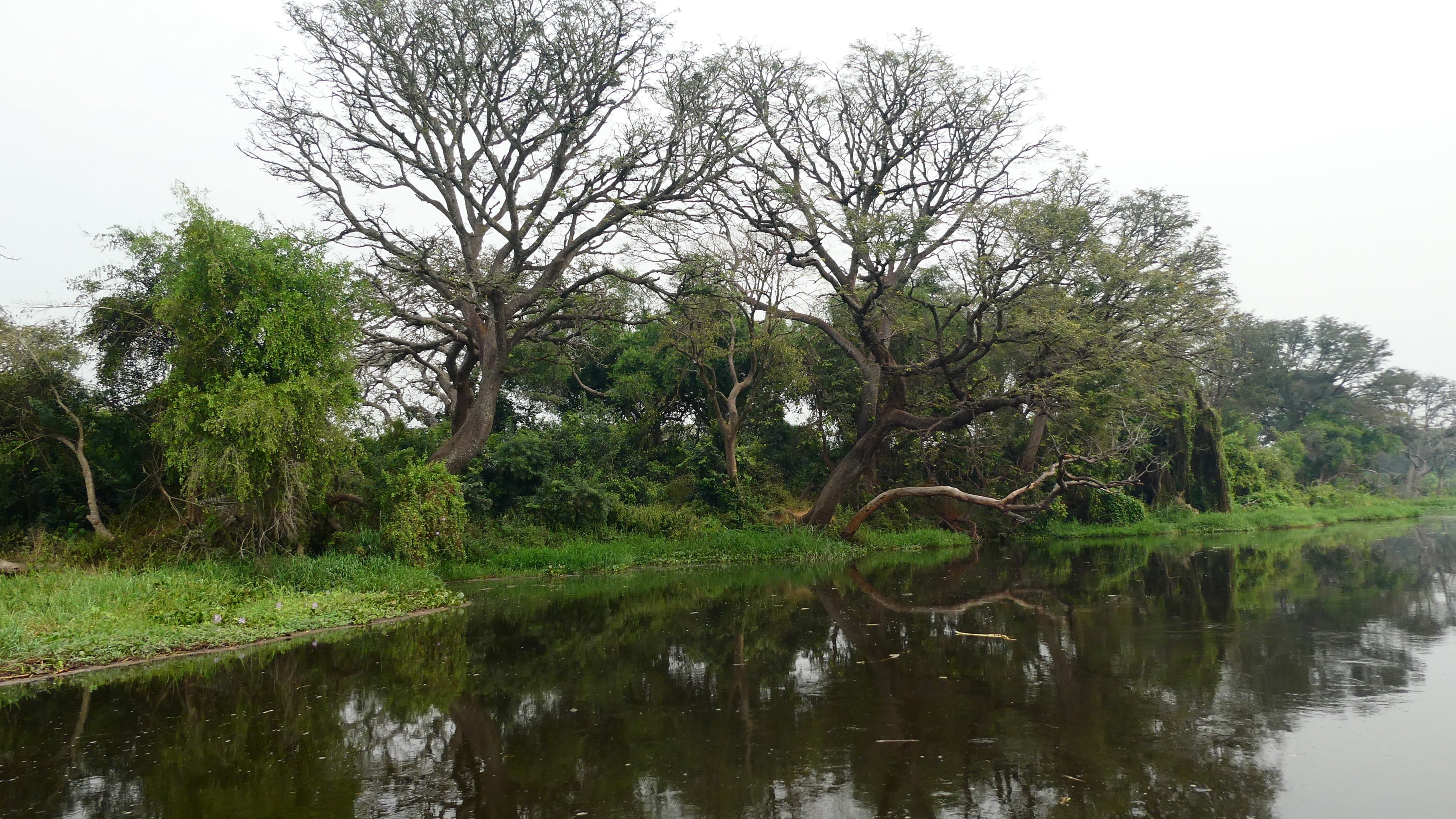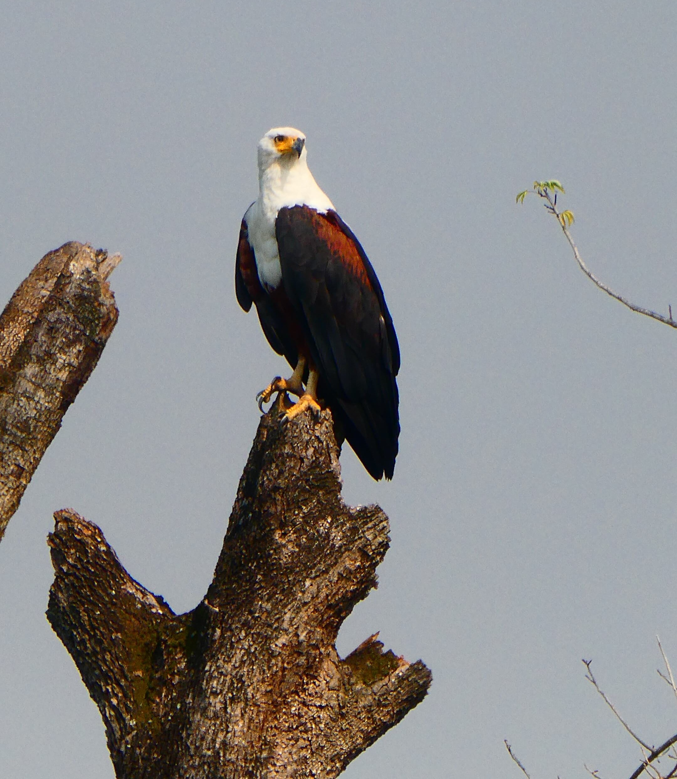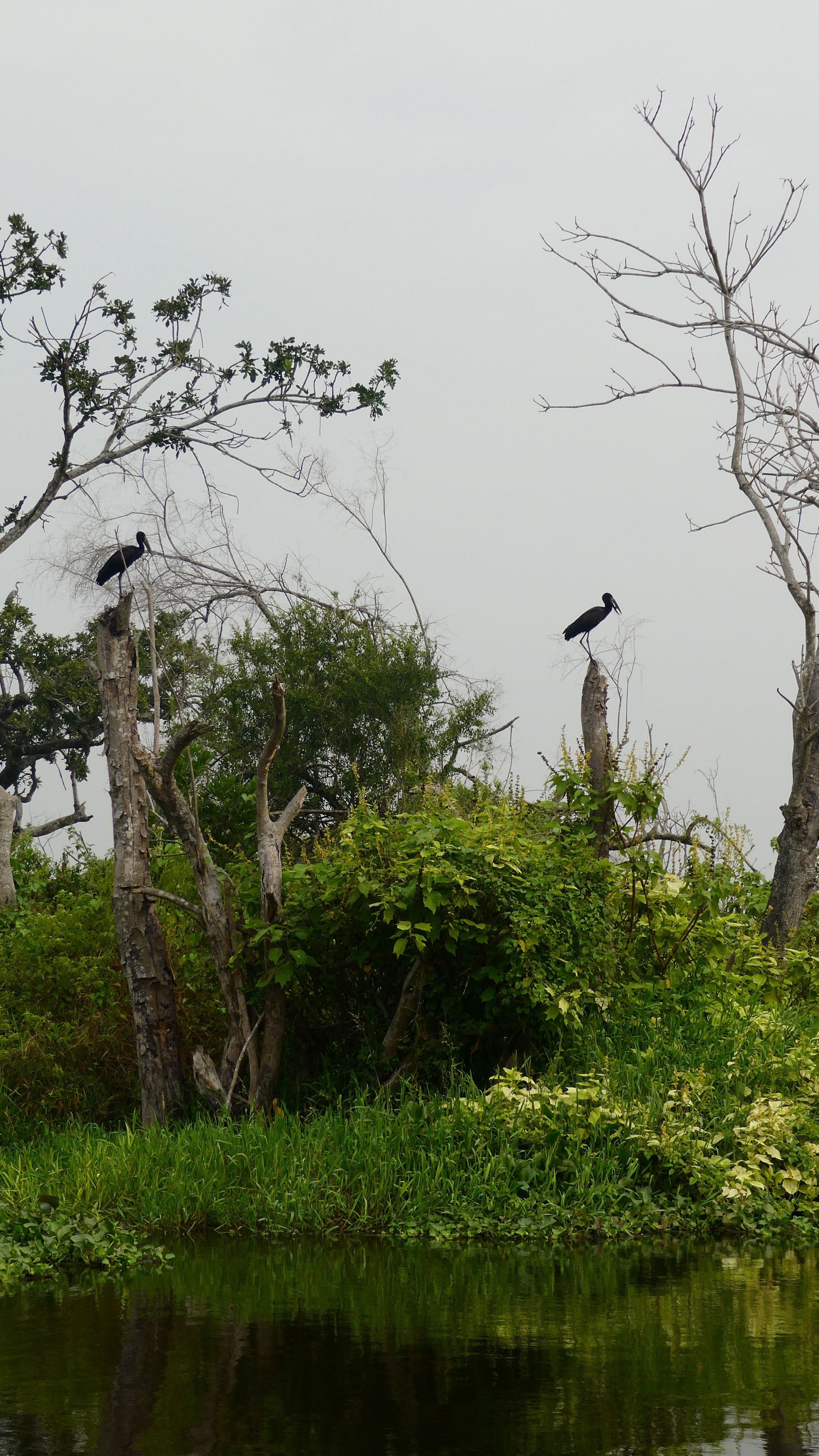 Für nachmittags hatten wir nun doch noch die Bootsfahrt in die andere Richtung zum „Bottom of the Falls“ ins Auge gefasst. Die Dame von Wild Frontiers hatte uns erklärt, wir sollten einfach um 13.40 Uhr an der Bootsanlegestelle sein, eine Reservierung wäre vorher nicht nötig. Oha, als wir wegen Matthias Rumtrödelei verspätet um 10 vor 2 einlaufen, ist das riesige Touriboot schon fast voll beladen und es stehen noch einige Fahrgäste rum. So hatten wir uns das nicht vorgestellt, dachten wir doch, die Tour zu den Wasserfällen fände auch in kleinen Booten statt. Wir schauen etwas ratlos und enttäuscht aus der Wäsche, doch wir wären nicht in Afrika, wenn da nicht doch noch etwas ginge. Wir müssen zwar noch etwas warten, aber dann kommt Isaac und nimmt uns mit auf eine traumhafte Private Tour. Ja, so ein Glück! Die Letzten werden die Ersten sein.
