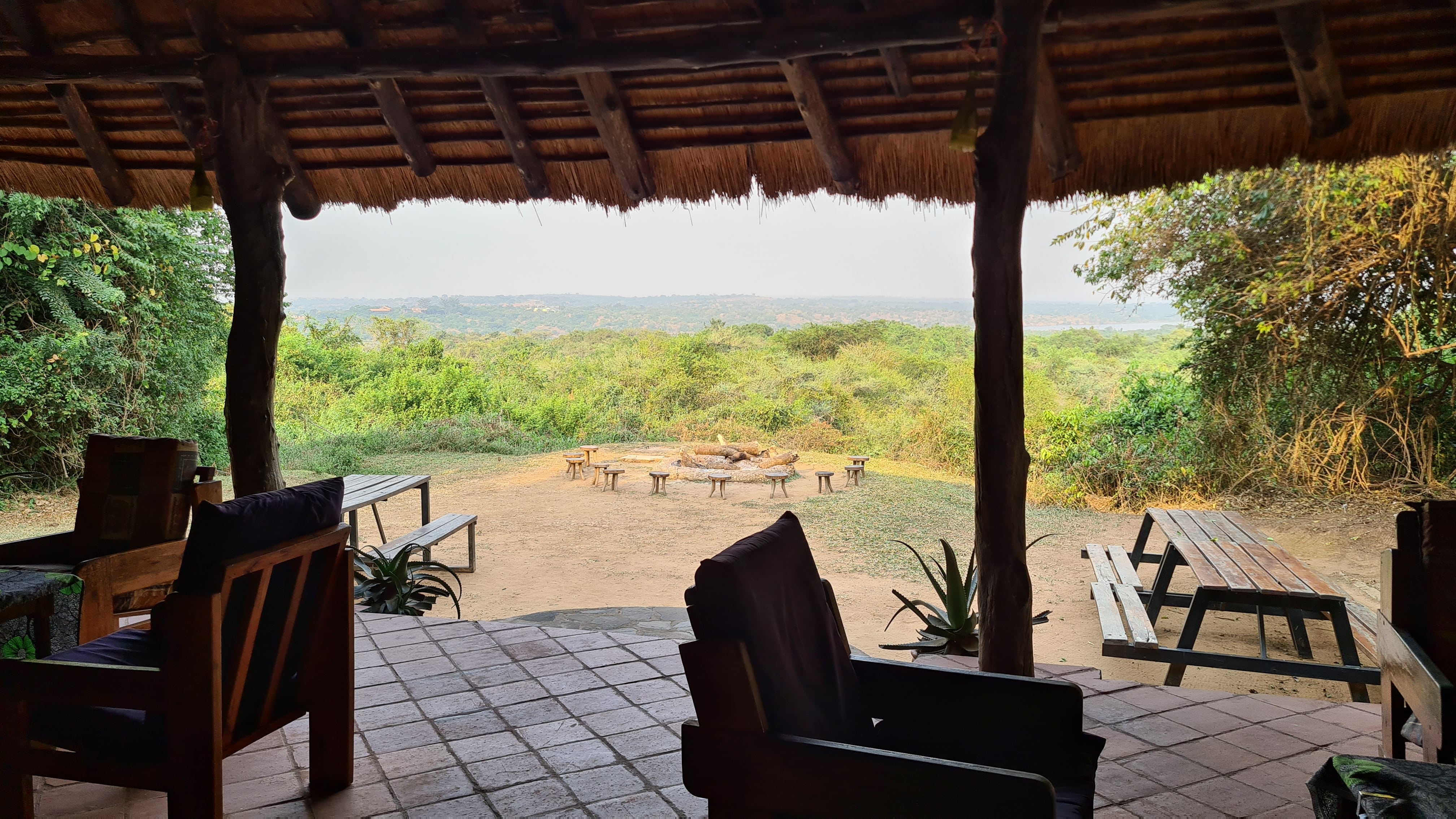 Das Red Chilli Rest Camp, nach meiner Interpretation der Landkarten eher direkt am Ufer des Victoria-Nils vermutet, liegt in Wirklichkeit doch noch 1,5 km weit davon entfernt und zwar auf einer Anhöhe. Kaum zu glauben, dass sie uns hier nicht nur vor den frechen Pavianen sondern auch vor den immer wieder nächtends hier grasenden Nilpferden warnen. Also bitte, rundum ist undurchdringlicher Busch, wir sind ewig vom Ufer entfernt und zum Camp geht es recht steil bergauf … wie soll da bitte ein Flusspferd hinkommen, außer es hätte sich verlaufen?!