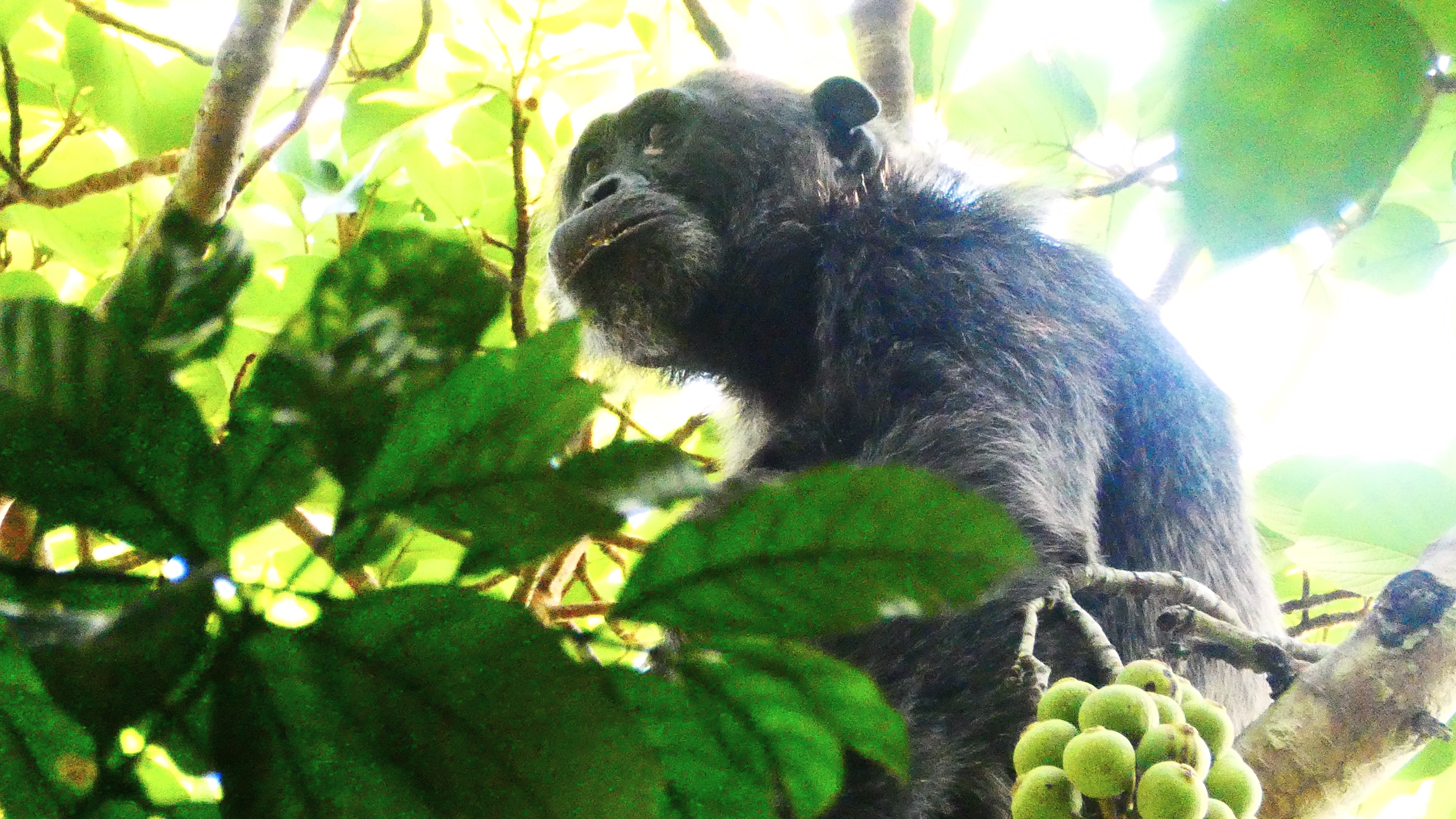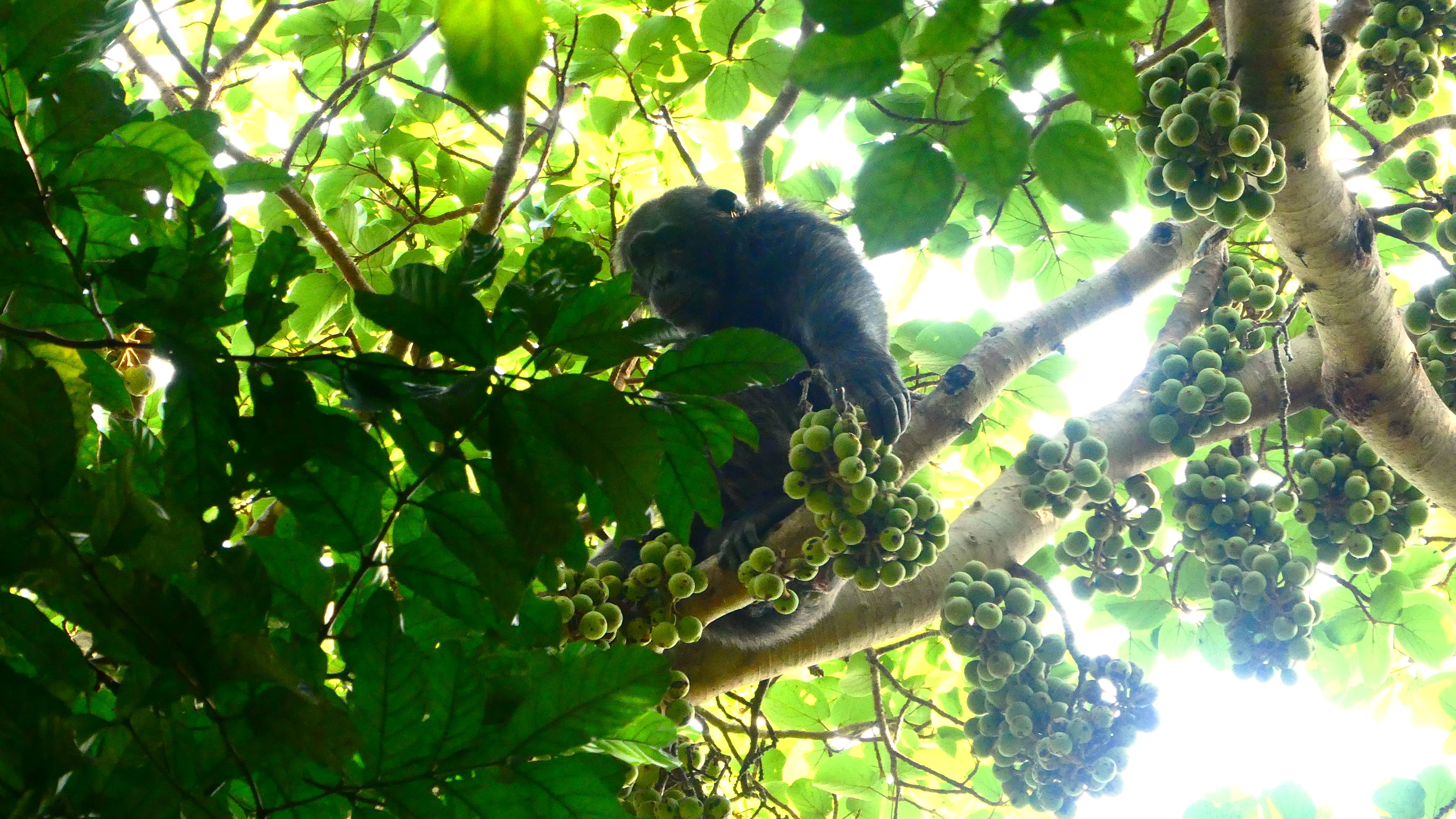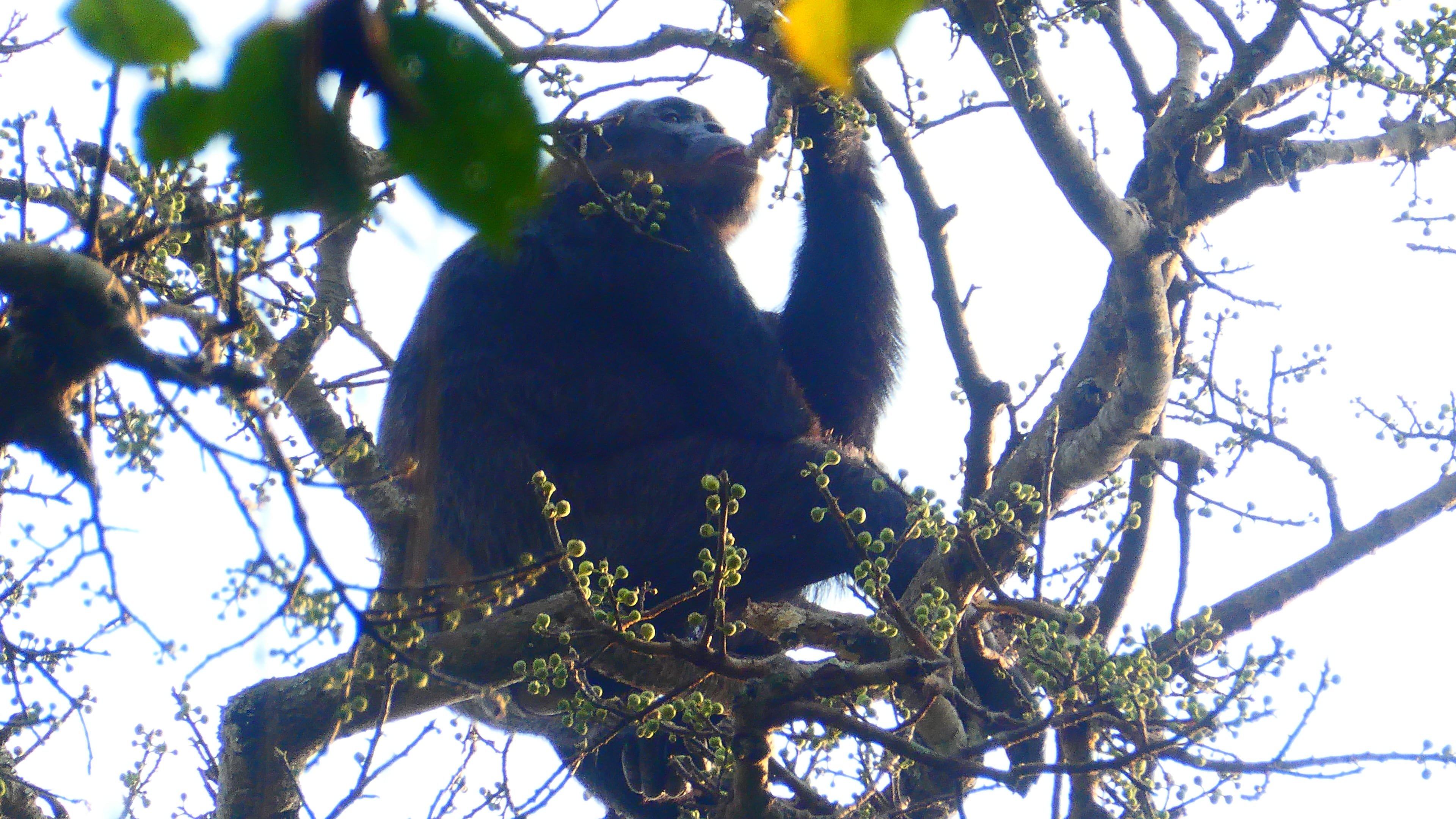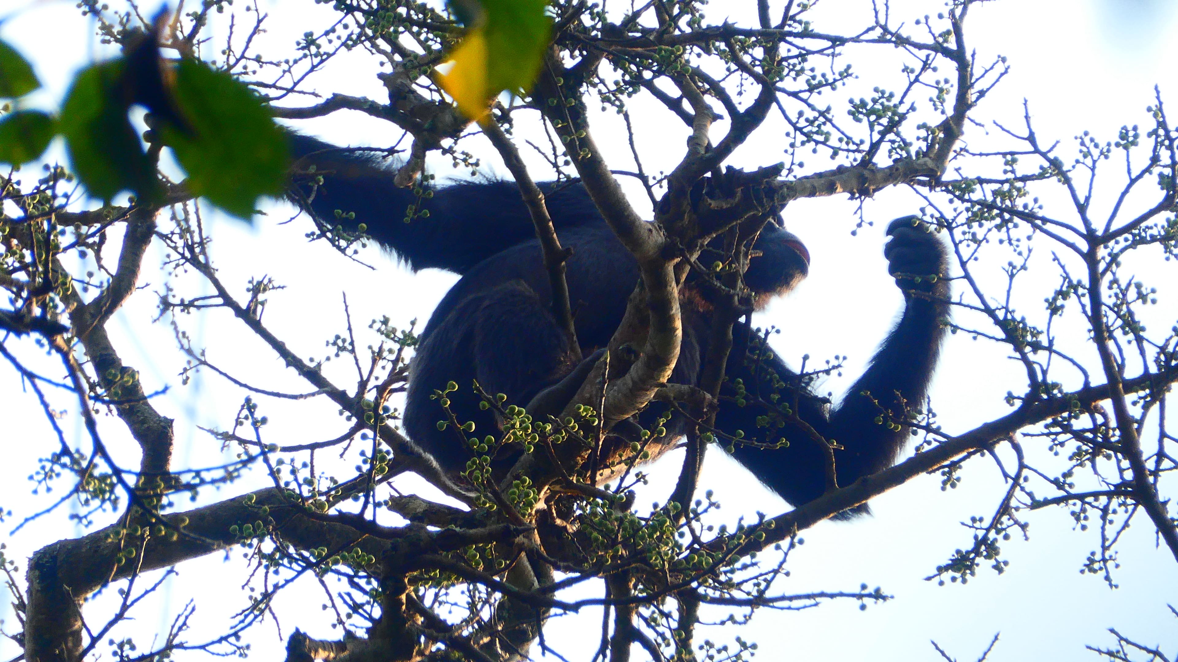 Unser Guide beim Schimpansen-Tracking ist Godfrey und er ist wirklich sehr bemüht, uns ein spannendes Zusammentreffen mit unseren nächsten Verwandten zu ermöglichen. Ganze vier Stunden wandern, stapfen, kraxeln und kriechen wir durch Wald und Gestrüpp, um schlussendlich nur drei einzelne Schimpansen, jeweils hoch oben in den Baumspitzen, zu sehen. Schade, aber so ist die Natur: Heute so, morgen so.