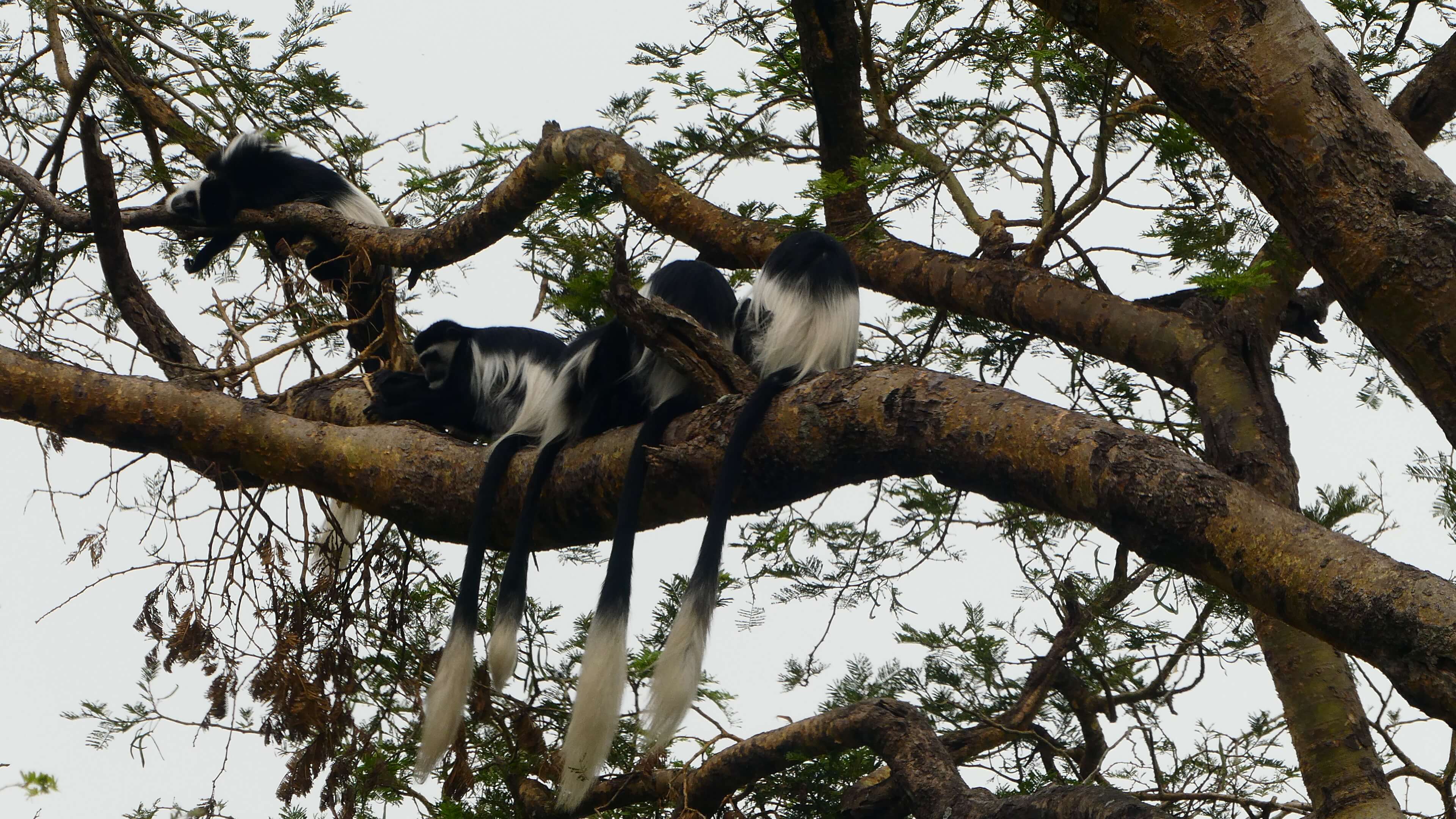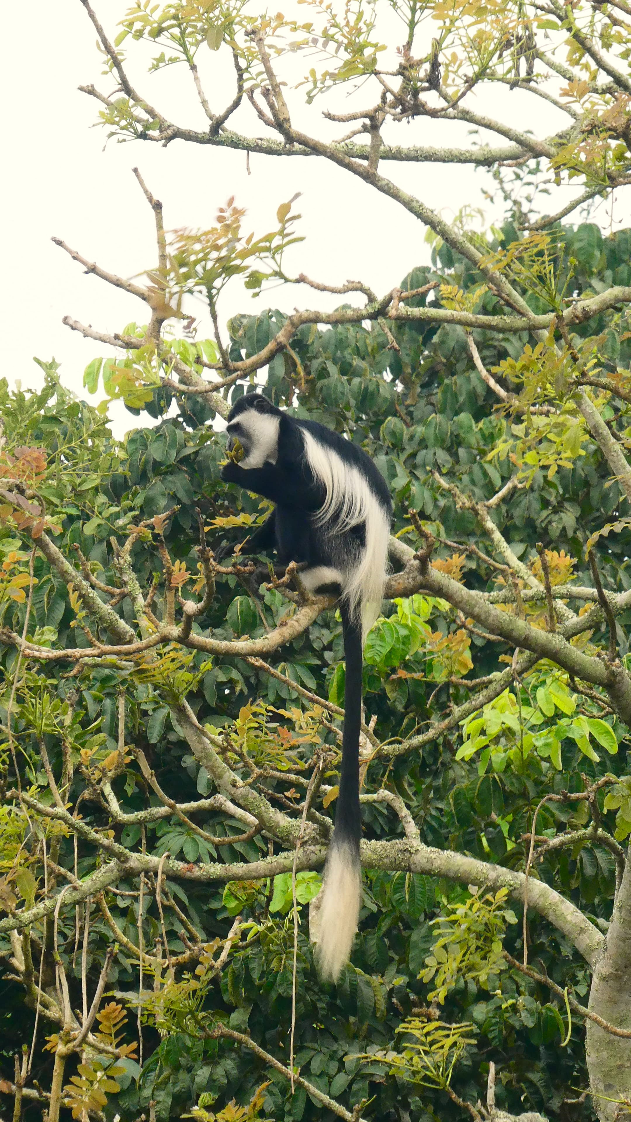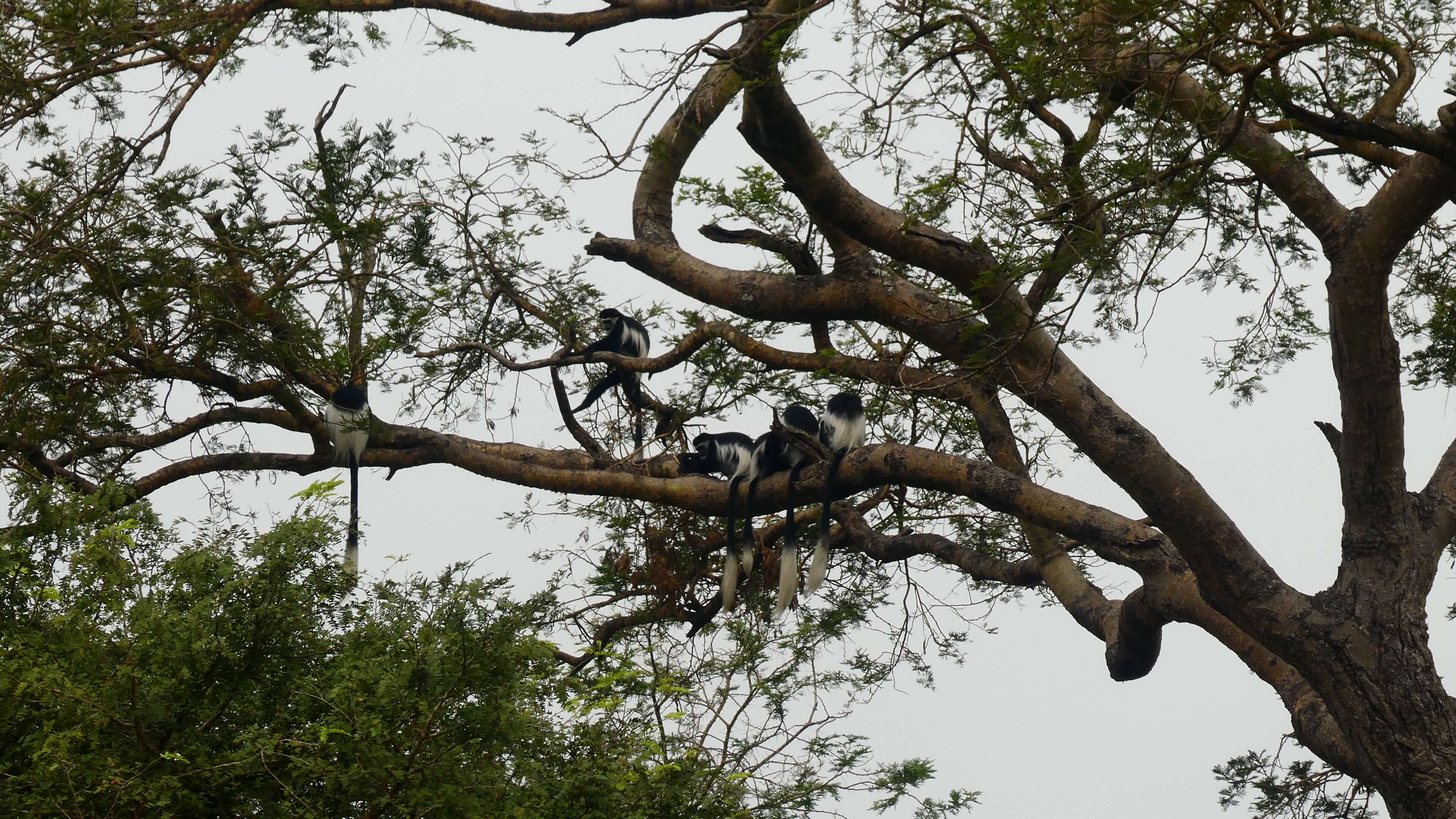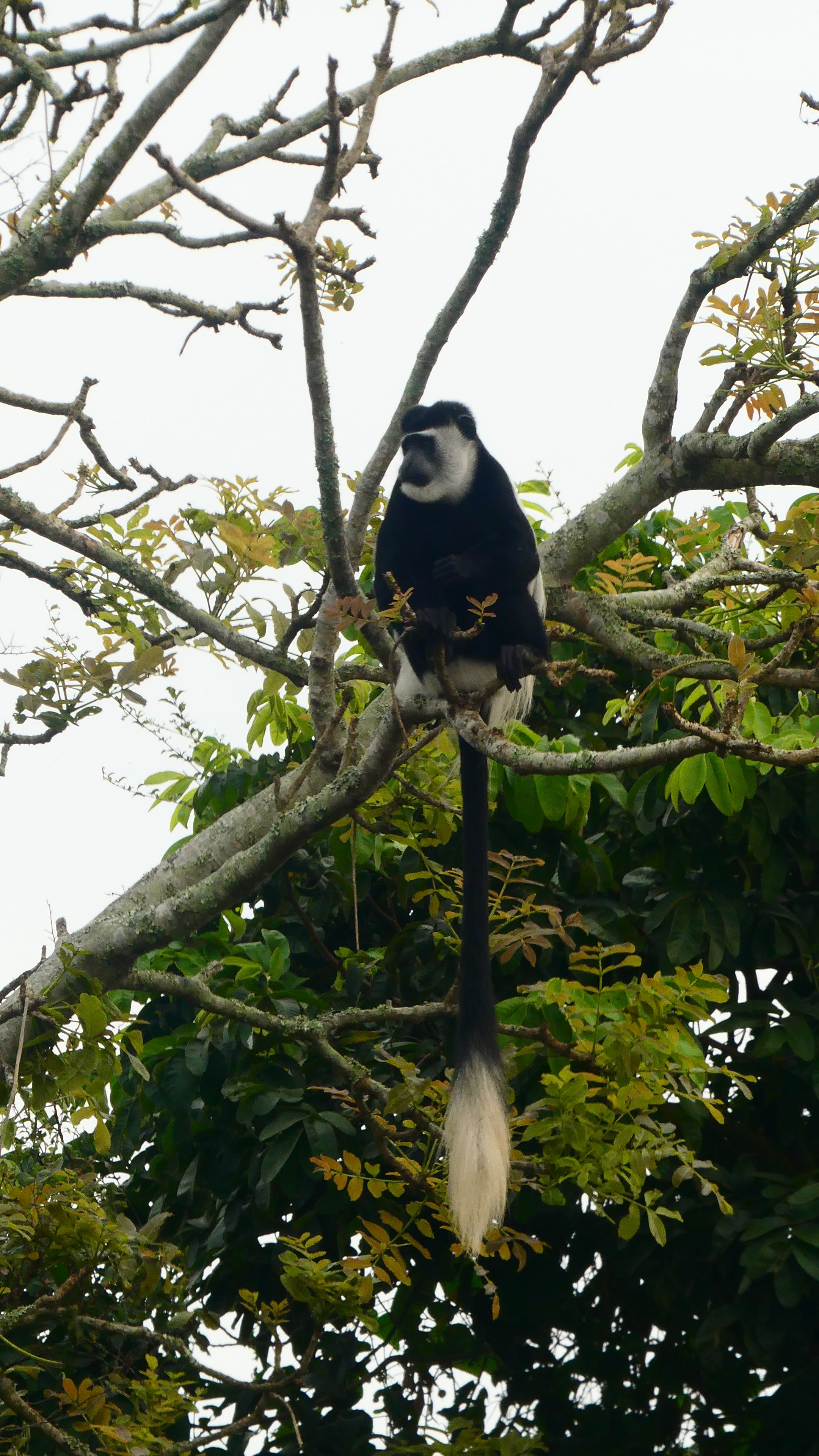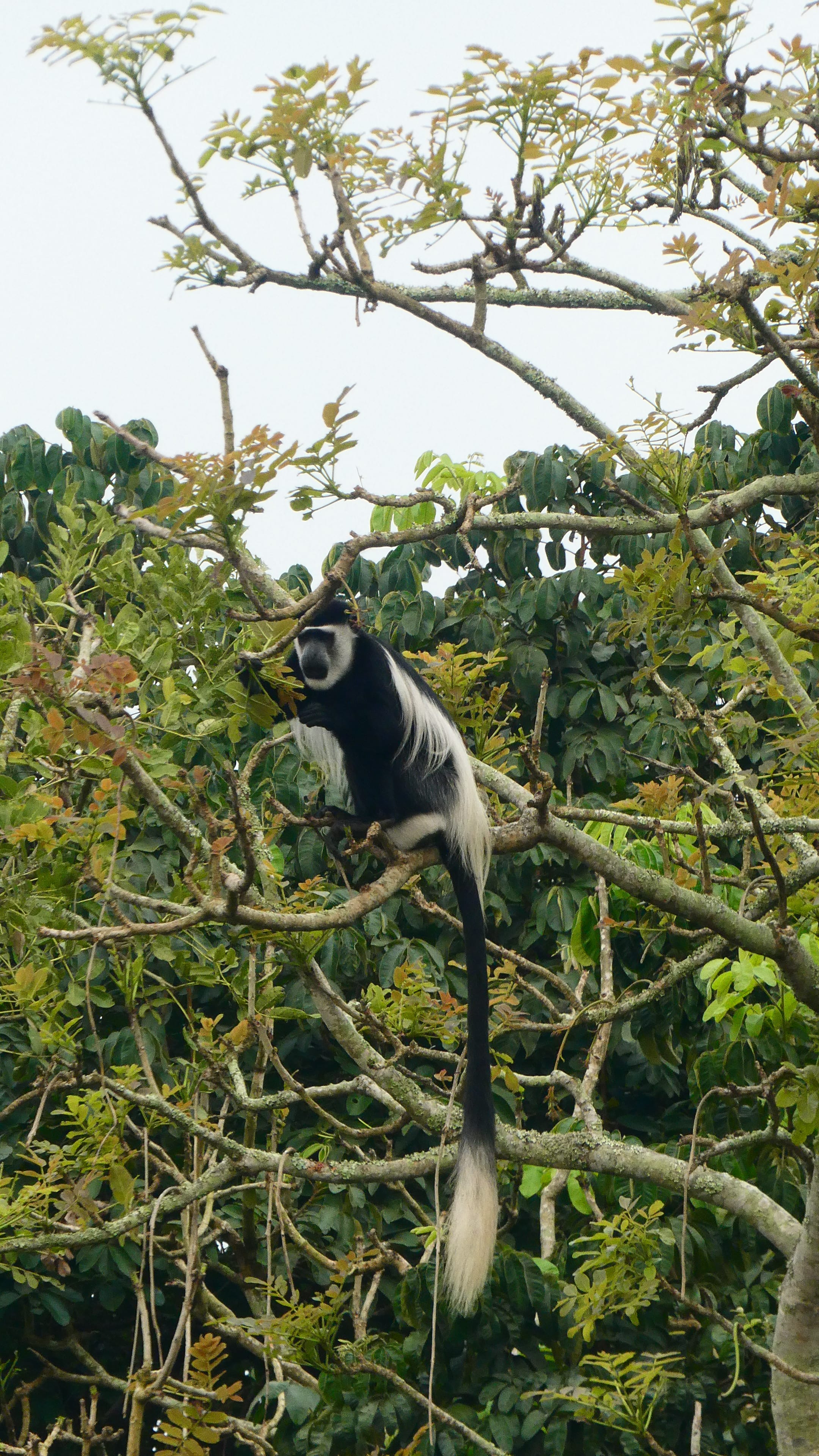 Unser Guide beim Schimpansen-Tracking ist Godfrey und er ist wirklich sehr bemüht, uns ein spannendes Zusammentreffen mit unseren nächsten Verwandten zu ermöglichen. Ganze vier Stunden wandern, stapfen, kraxeln und kriechen wir durch Wald und Gestrüpp, um schlussendlich nur drei einzelne Schimpansen, jeweils hoch oben in den Baumspitzen, zu sehen. Schade, aber so ist die Natur: Heute so, morgen so.
