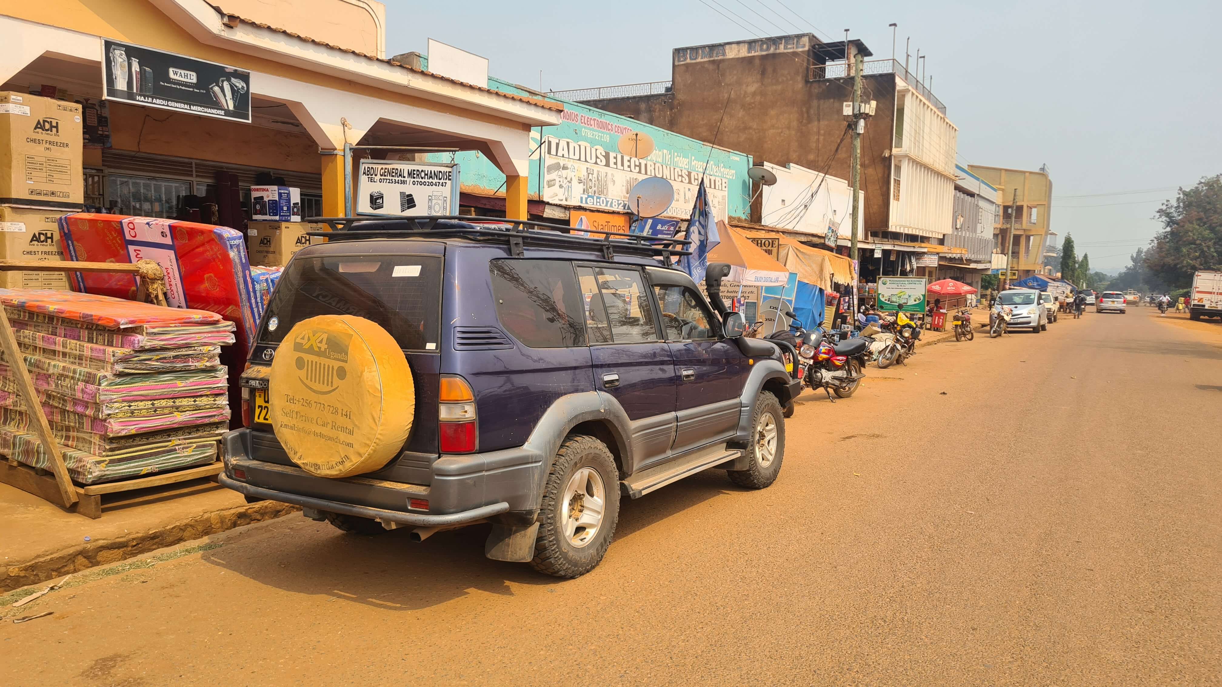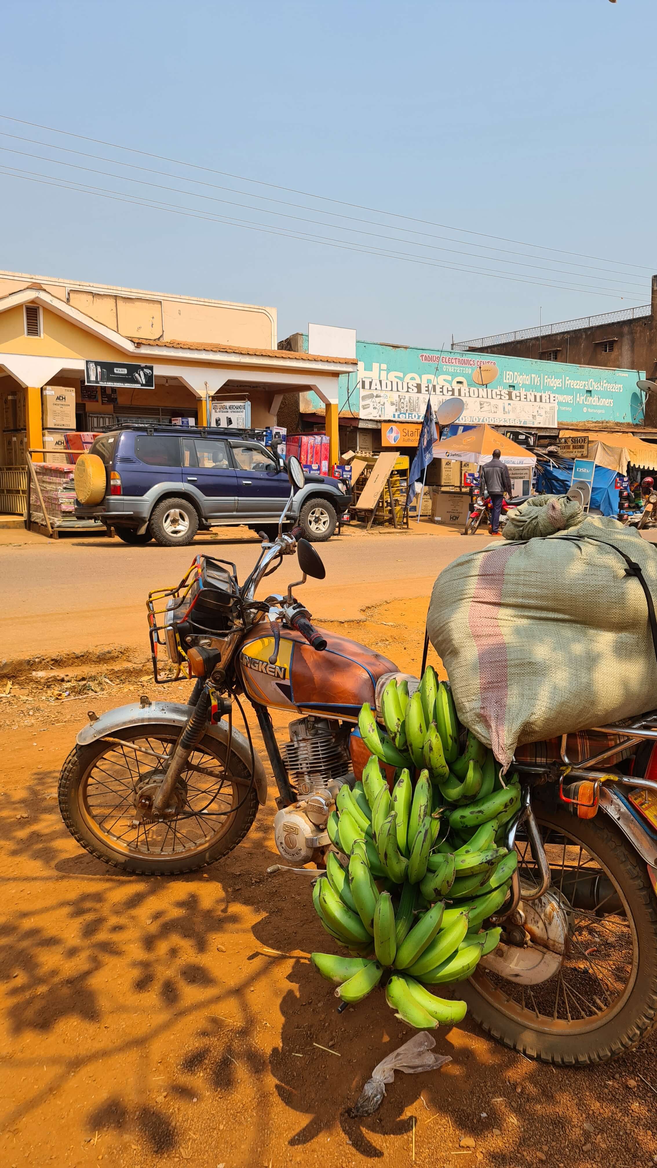 In Kasese heißt es dann, Kühlbox, Tank und Portemonnaie wieder auffüllen. Die Läden in Kasese schauen sehr einladend aus, haben einen Top-Service. Wir ergattern sogar eine Packung Couscous (wie sich später rausstellte „nicht vegan“) und eine Packung teures Müsli (unser mitgebrachter Vorrat von 2 kg ging langsam zur Neige, geschmacklich war der Kauf allerdings auch ein Flop).
