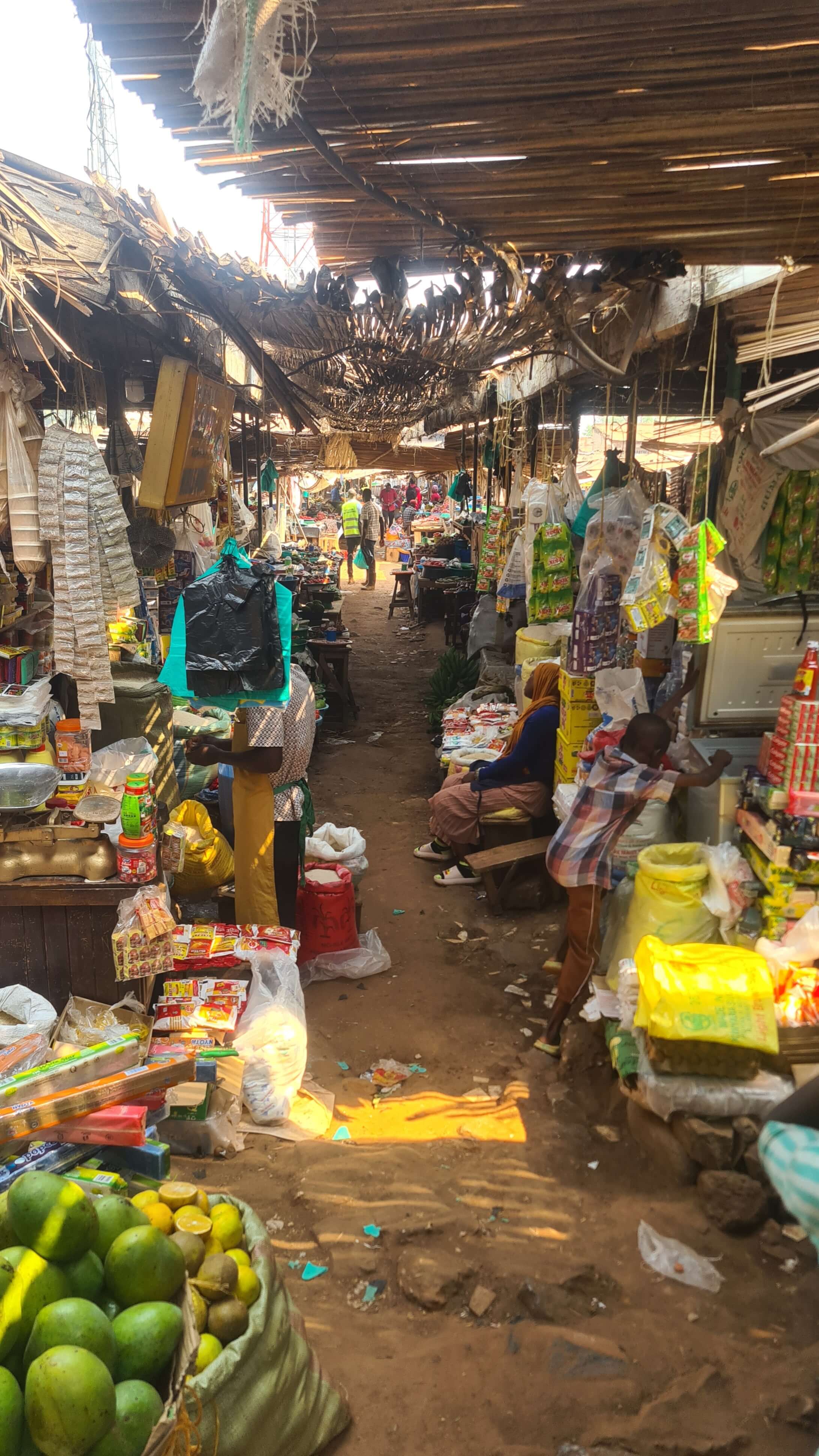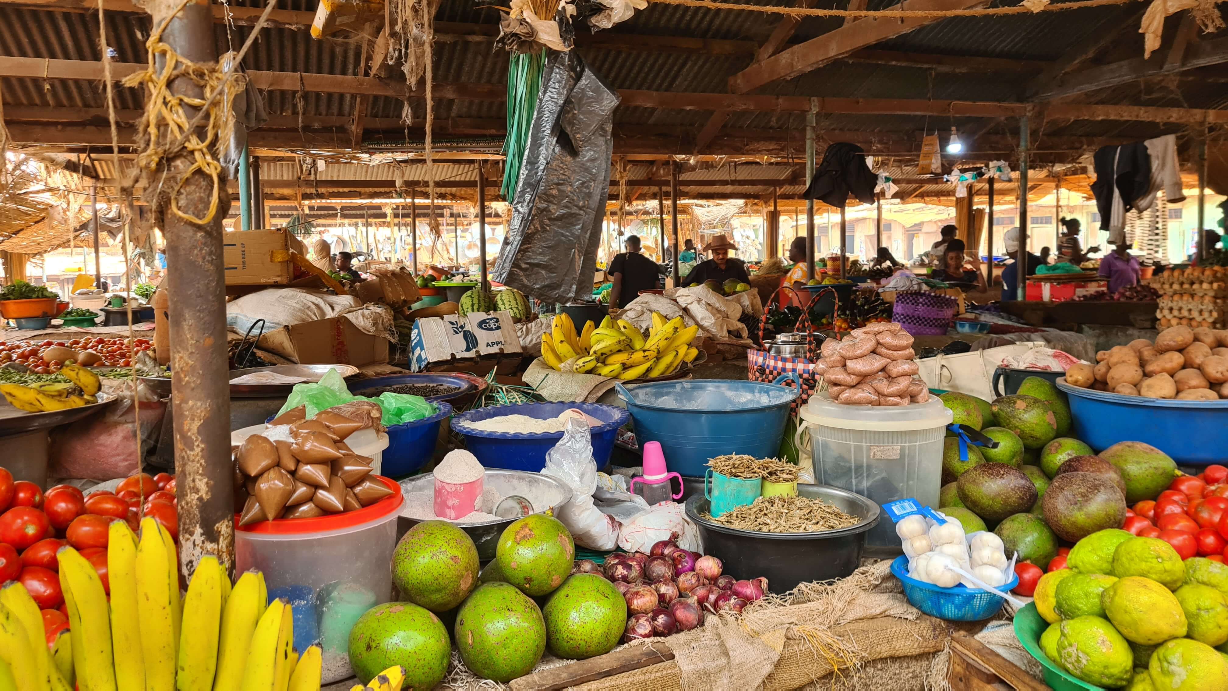 Wir fahren weiter in die Innenstadt, wo sich der von GoogleMaps als „Supermarkt“ ausgewiesene Spot als „lokaler Markt“ erweist. Die Shop-Auswahl rundum ist relativ begrenzt. Wir schauen hier hin und da hin und können nach und nach alle Artikel unserer Einkaufsliste abhaken.