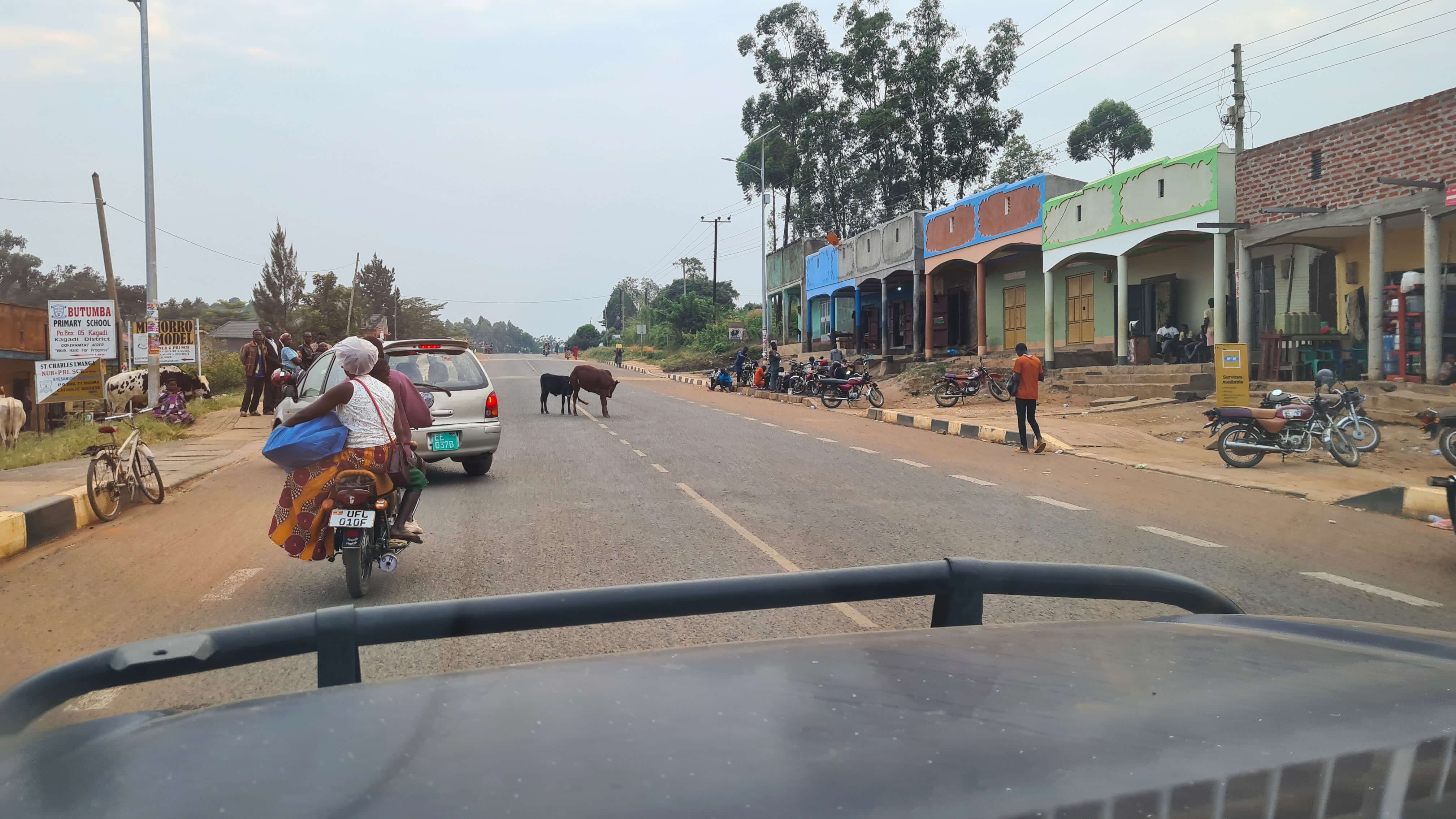 Was wir partout vermeiden wollten, tritt also ein: Eine nächtliche Fahrt auf Ugandas Straßen. Und was soll ich sagen: Es ist der planke Horror! Ich bin hart im Nehmen, Matthias als Mann sowieso … aber was einen auf den unbeleuchteten Straßen nächtens erwartet, ist wirklich nah an der Nahtoderfahrung. Matthias am Steuer gibt sein Bestes, hochkonzentriert. Doch was hilft’s, wenn man durch die grellen Fernlichter der Laster geblendet wird, Autos völlig ohne Beleuchtung am Verkehr teilnehmen, das vermeintliche Motorrad sich dann doch als KFZ mit nur einem funktionierenden Licht herausstellt oder das Motorrad eine zwei Meter breite, ungesicherte Ladung im Querformat gesattelt hat. Zweimal fahren wir sozusagen „sehenden Auges“ frontal auf die Lichter entgegenkommender Fahrzeuge zu.