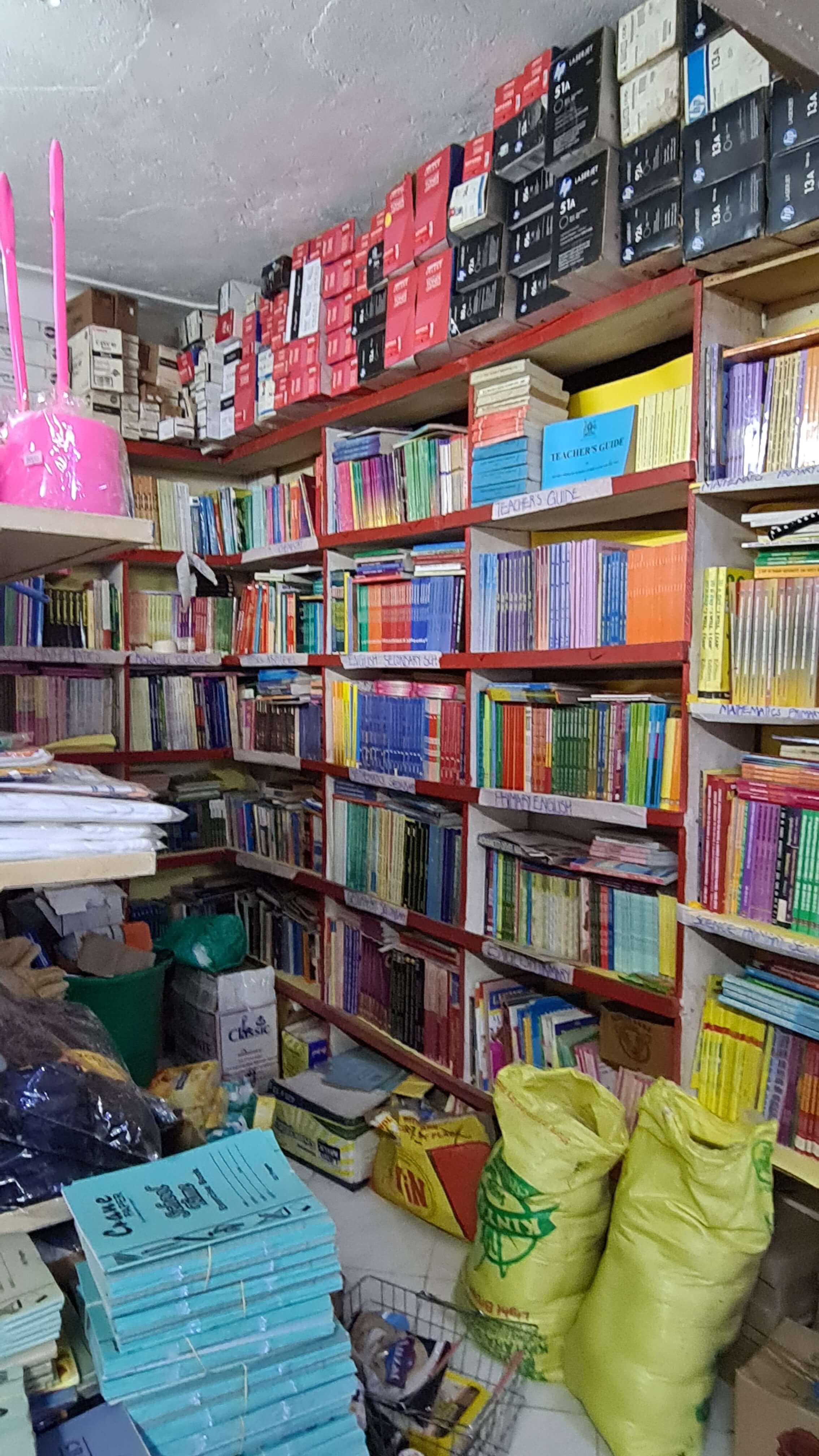 Im Shop gibt’s Schulbücher gleich neben den Klobürsten.