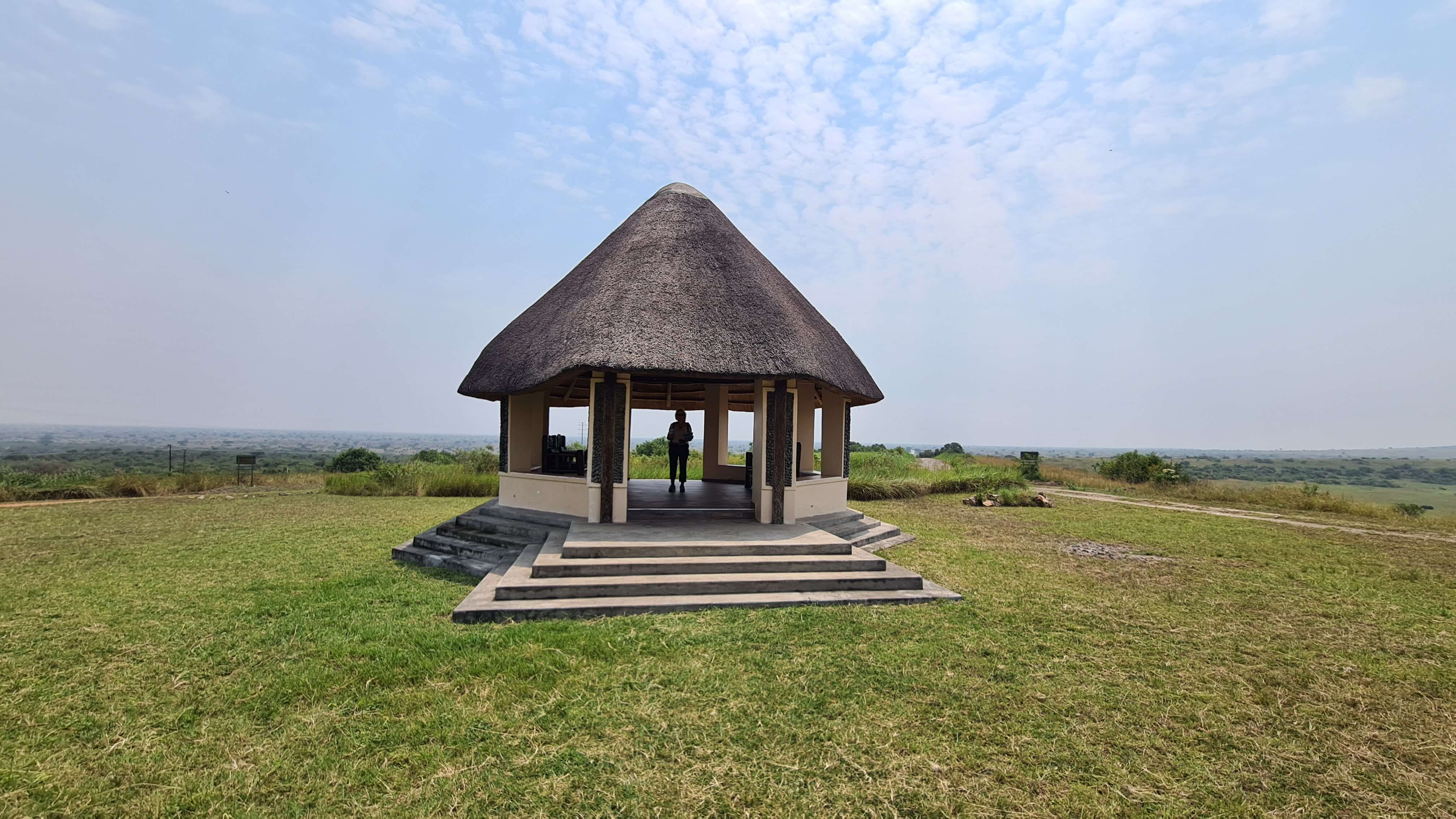 Auf der Weiterfahrt gen Süden verlassen wir die Nordhalbkugel und legen am Queen’s Pavilion noch eine Brotzeitpause mit Nudelsalat und Aussicht ein. Hier kann man die beiden Seen – den Lake George und den Lake Edward – sehen, die durch den natürlichen Kazinga Channel miteinander verbunden sind.