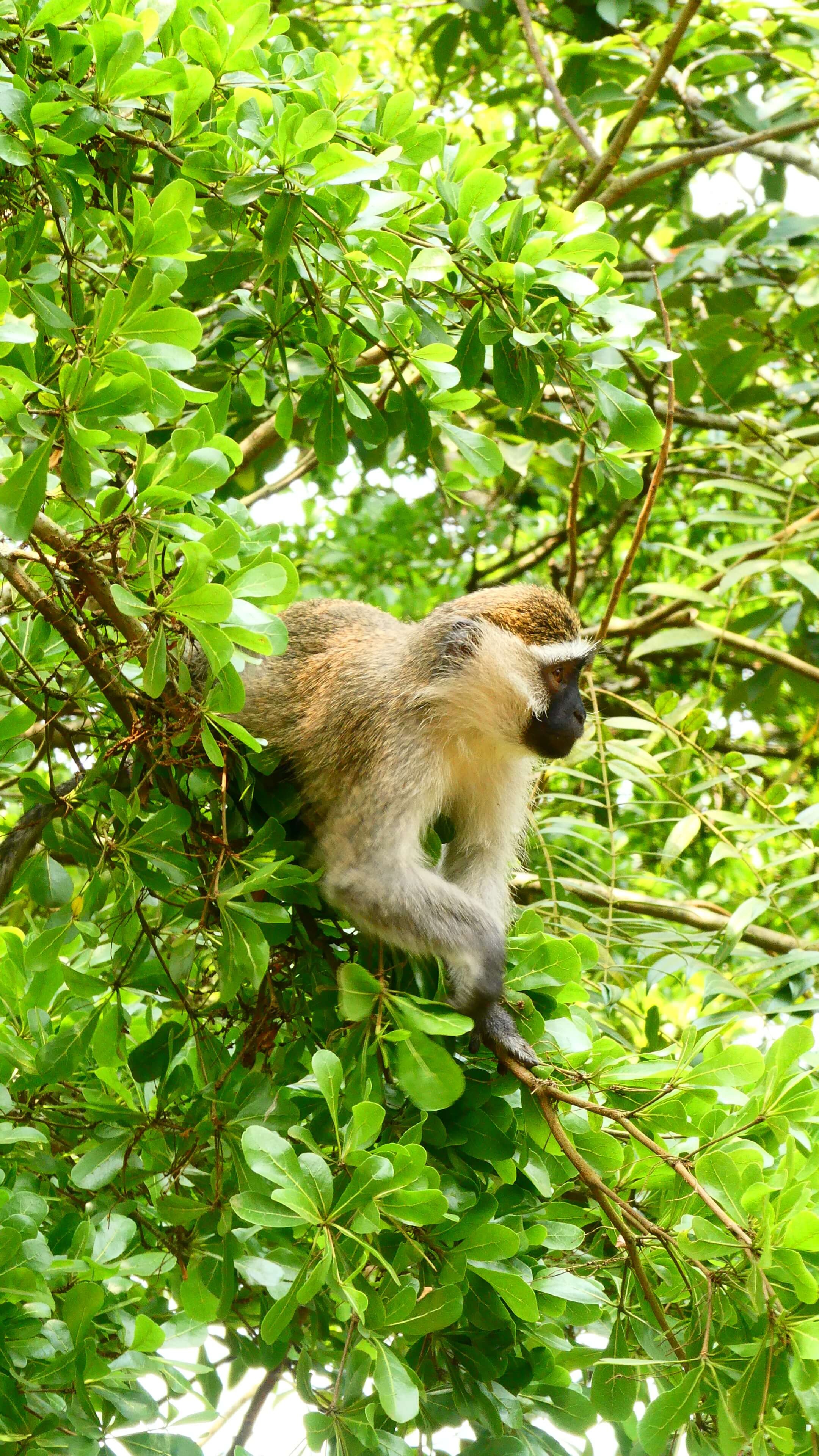 Weil das Licht jetzt um 16 Uhr so wunderschön ist, machen wir uns als erstes auf zu einer ersten Seeumrundung und entdecken bei dem leichten Walk viele Schmetterlinge, Meerkatzen, Colobus-Affen und natürlich unzählige – mal mehr oder weniger fotowillige – Vögel wie Seeadler, Ibisse, Eisvögel, Störche, Webervögel, Weihen …