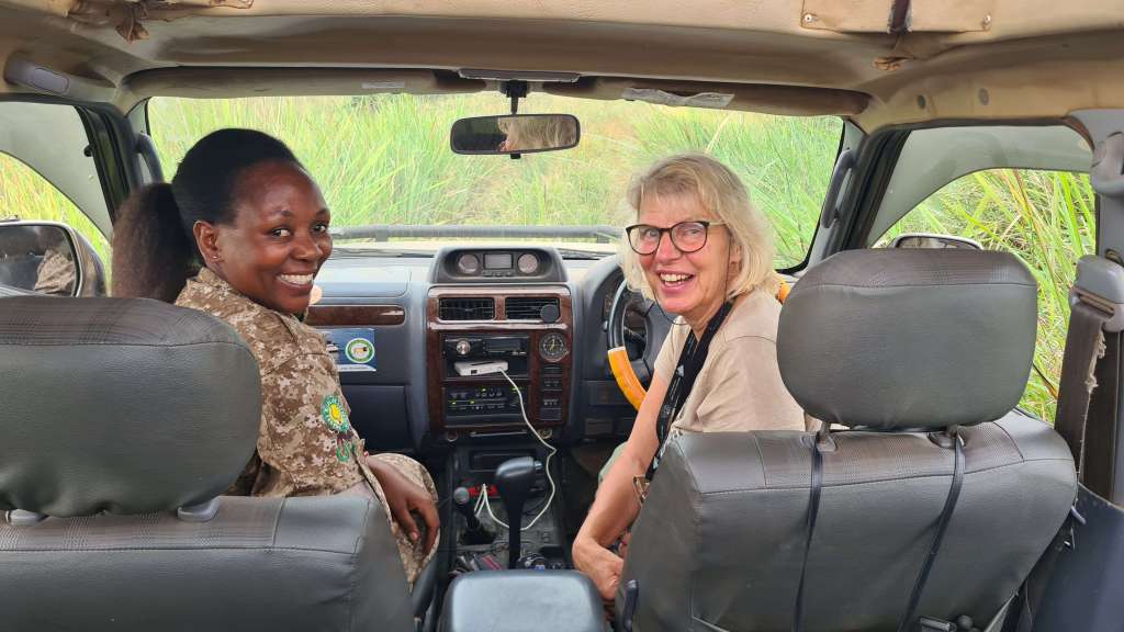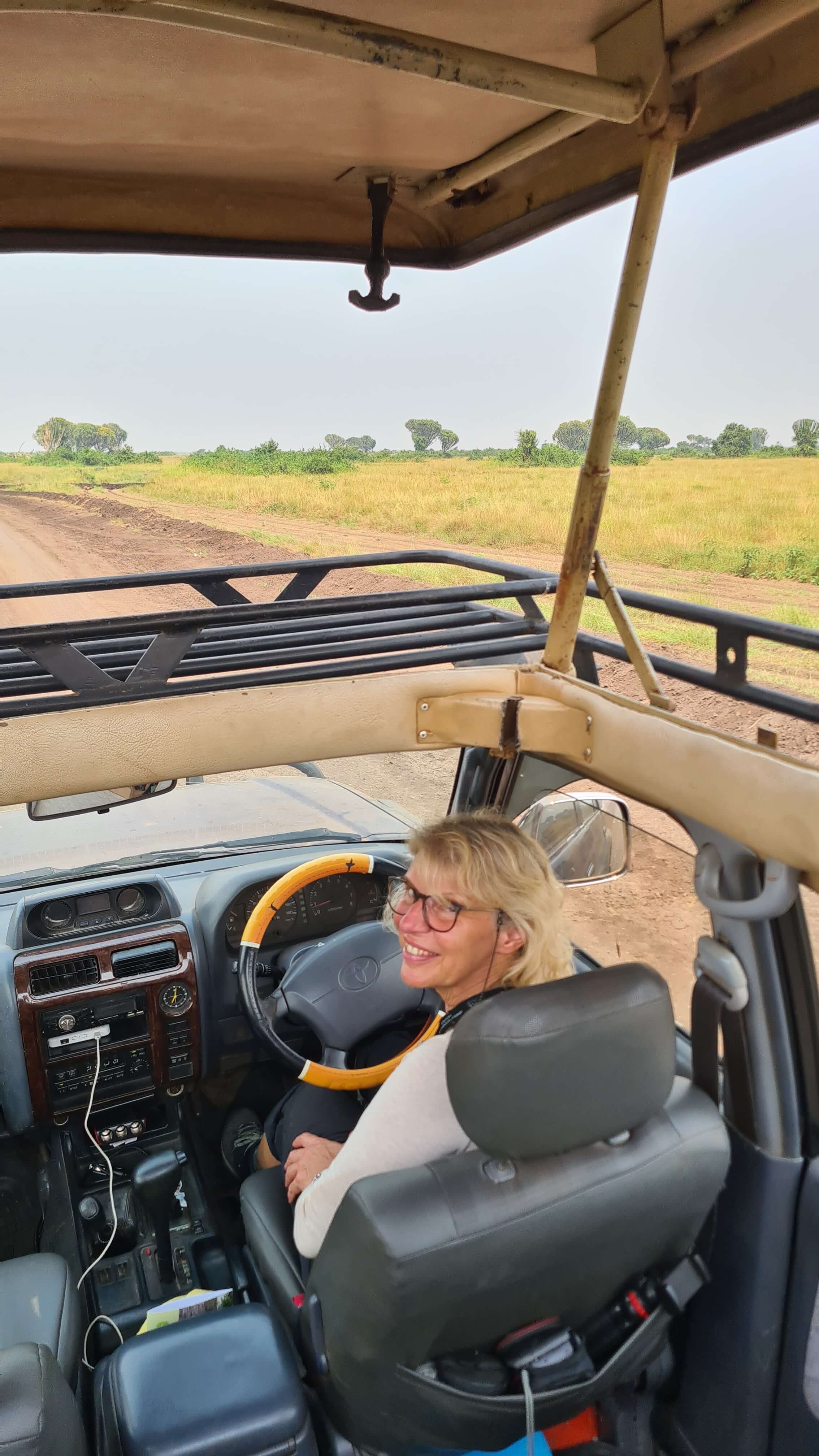 Uns wird die finster dreinblickende Scholar als Guidin zugeteilt und im ersten Moment denke ich „Oha!“. Aber energisch und übers ganze Gesicht strahlend gehe ich auf sie zu, begrüße sie herzlichst mit Handschlag und stelle uns vor. Und schon ist das Eis gebrochen. Wir zwei Frauen übernehmen die Führung: Scholar als Wegweiserin und Späherin, ich als Chauffeurin. Das macht richtig Spaß! Auch Scholar ist bestens informiert und gibt gerne alles weiter, was sie über Landschaft und Tiere weiß. Sie arbeitet bereits 10 Jahre als UWA-Rangerin in Ishasha.