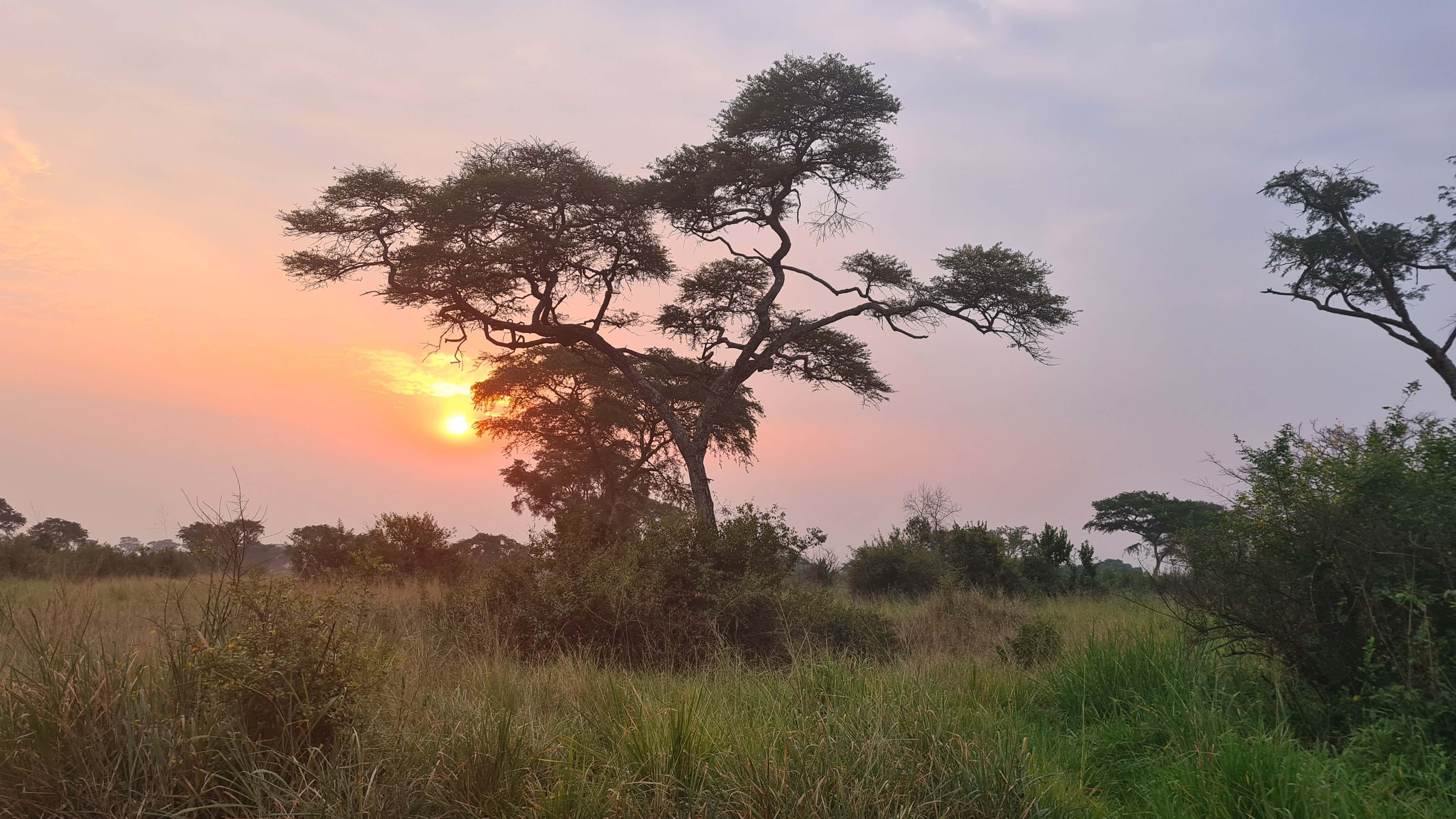 Obwohl es zuerst nach einem heißen Tag aussah, ziehen nun doch noch Wolken auf und bringen eine ganz besondere Stimmung mit sich. Nach 3,5 Stunden bringen wir Scholar zum Gate zurück und bedanken uns mit einem ordentlichen Trinkgeld für diese schöne Zeit und das besondere Erlebnis. Ehrlich gesagt, können wir uns nicht vorstellen, wie man in Ishasha selbst fündig wird, sofern die Löwen oder Leoparden nicht zufällig doch links und rechts der Main Tracks liegen. Zumal die Löwen-Population mit 15 Tieren auch recht klein ist und wie wir hörten, wandern die Tiere zeitweise auch in andere Regionen des Ishasha-Sektors ab.