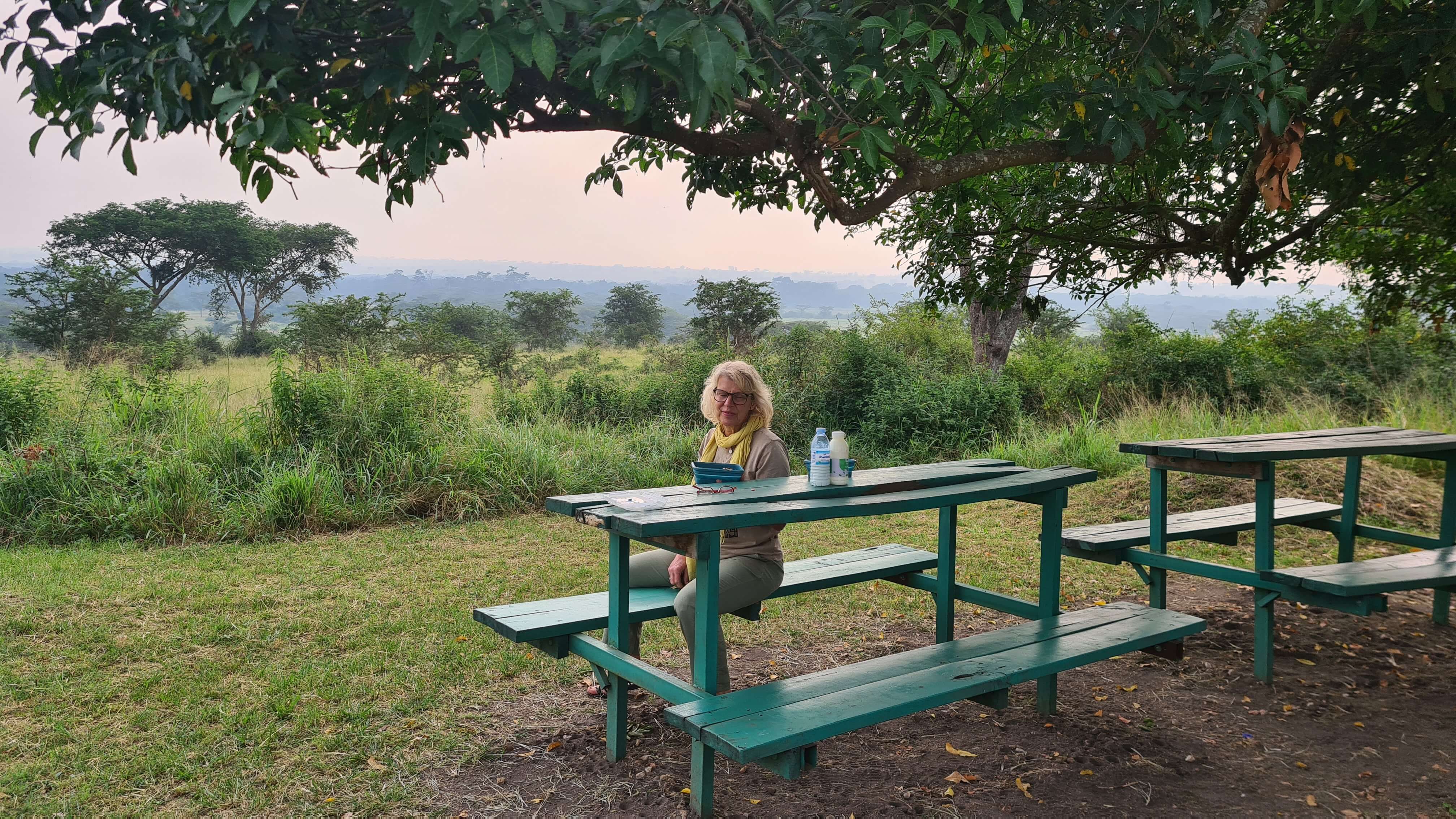 So verabschieden wir uns nach einer biertrunkenen, entspannten Nacht um 7 Uhr vom Kazinga-Kanal und machen uns auf die Fahrt über die Dirt Road zum Ishasha North Gate, wo wir um kurz vor 9 Uhr ankommen. Noch stehen einige der UWA-Guides am Tor, aber wir wollen erst noch frühstücken, bevor wir wieder für mehrere Stunden auf Safari sind.