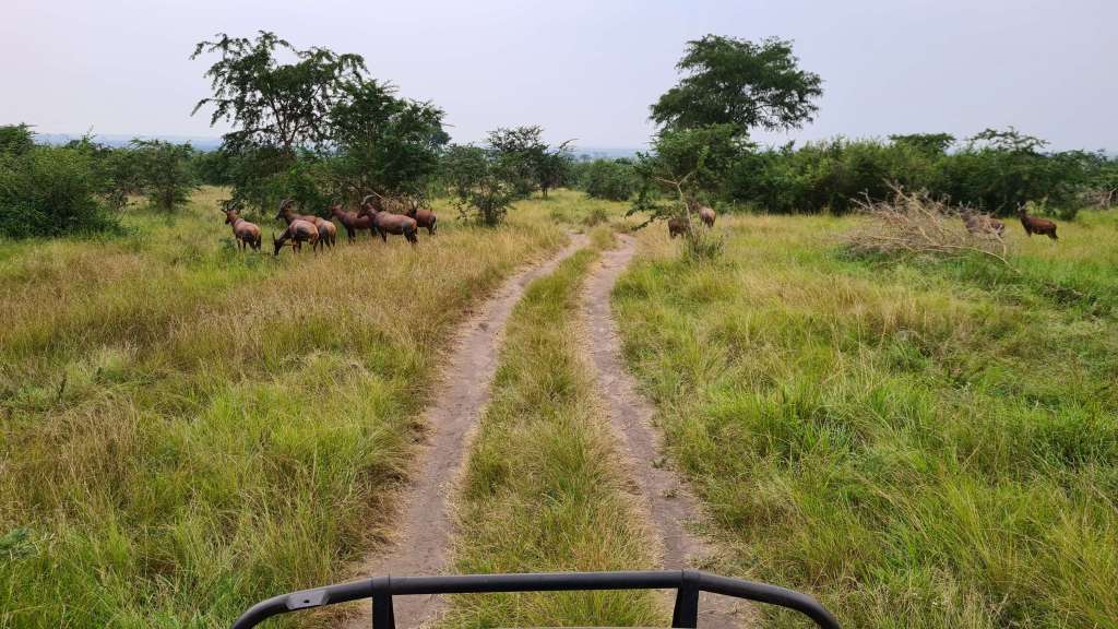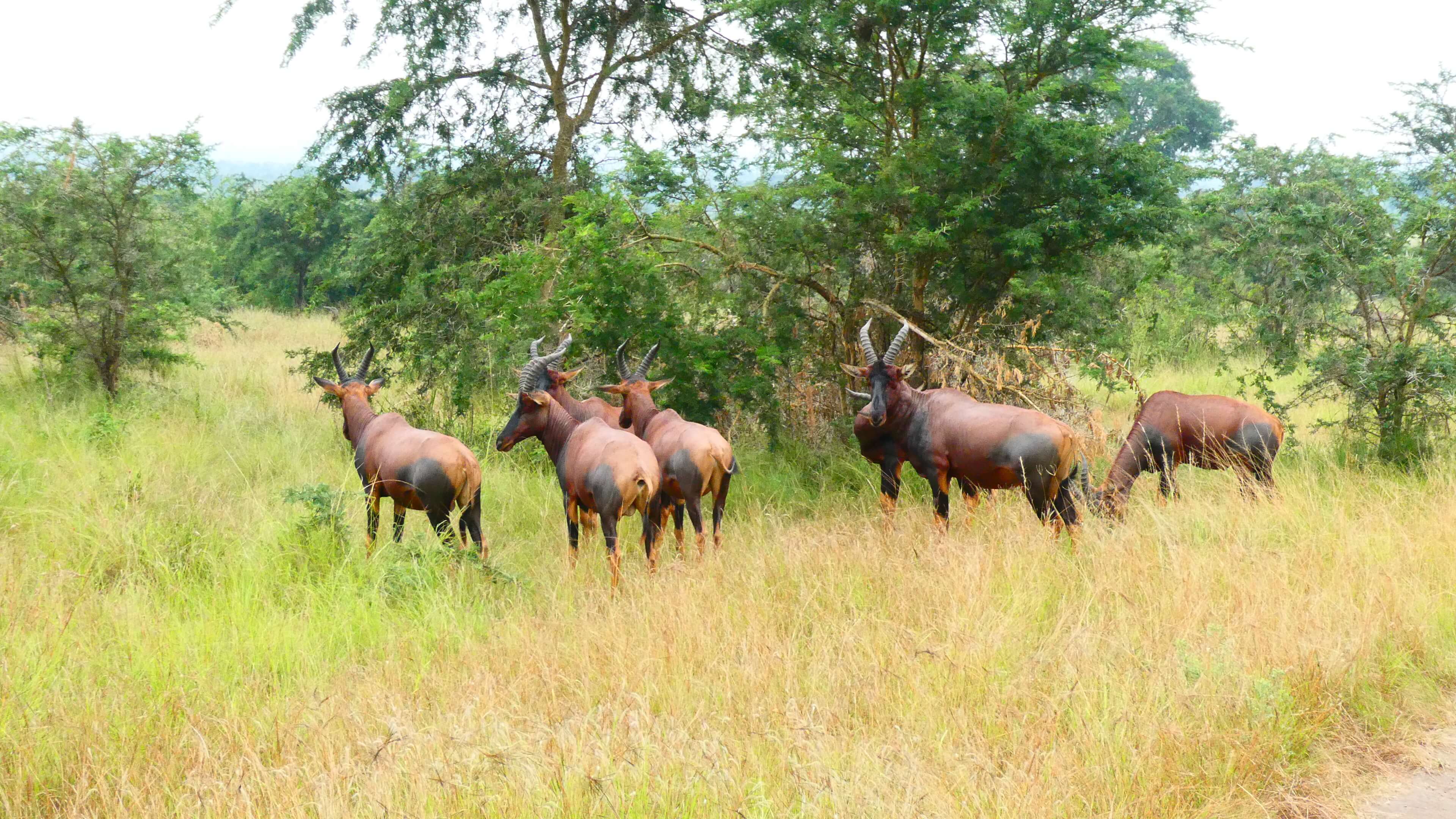 Zum ersten Mal sehen wir hier auch die hübsche, dunkelbraune Topi-Antilope und Scholar erzählt, dass das Topi weitgehend nicht bejagt wurde, da der Glaube vorherrsche, dass es Unglück bringe, ein Topi zu töten.