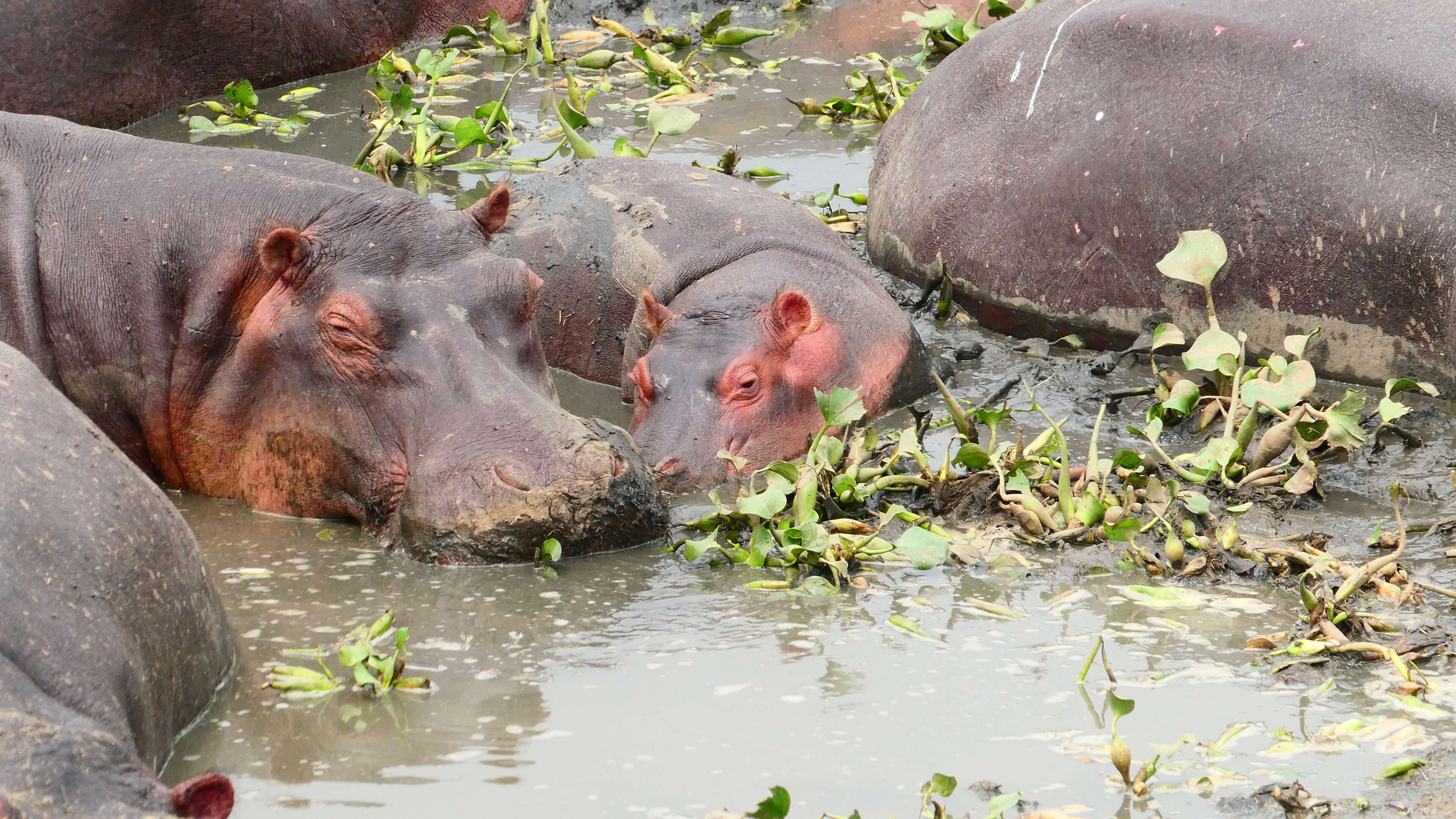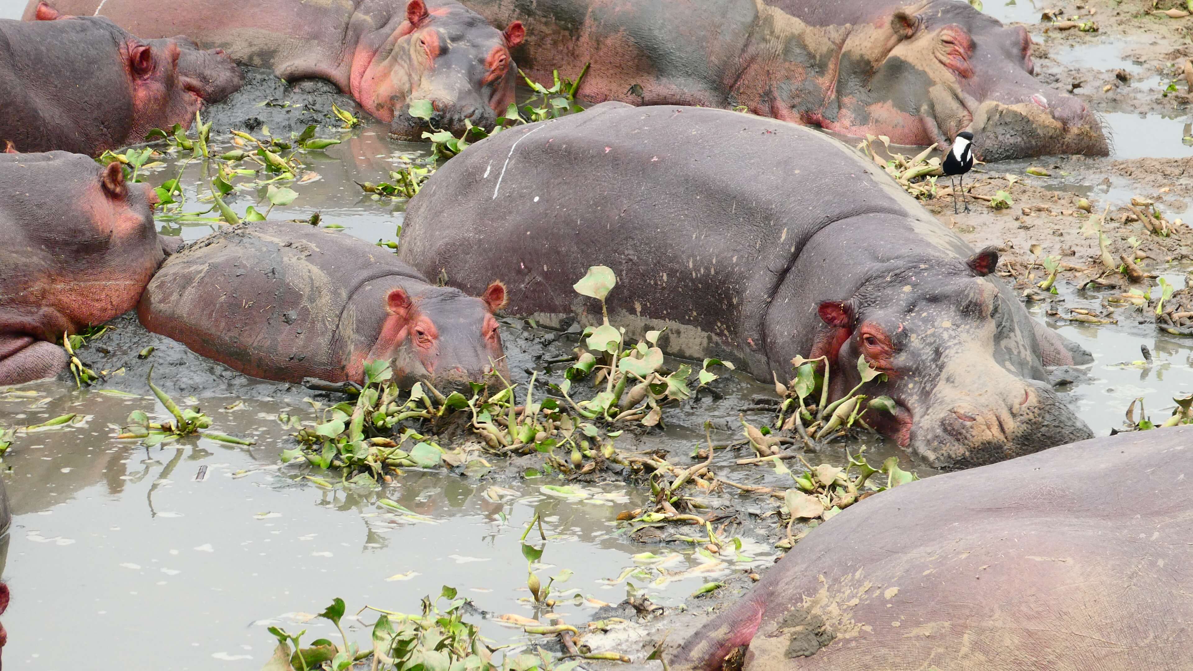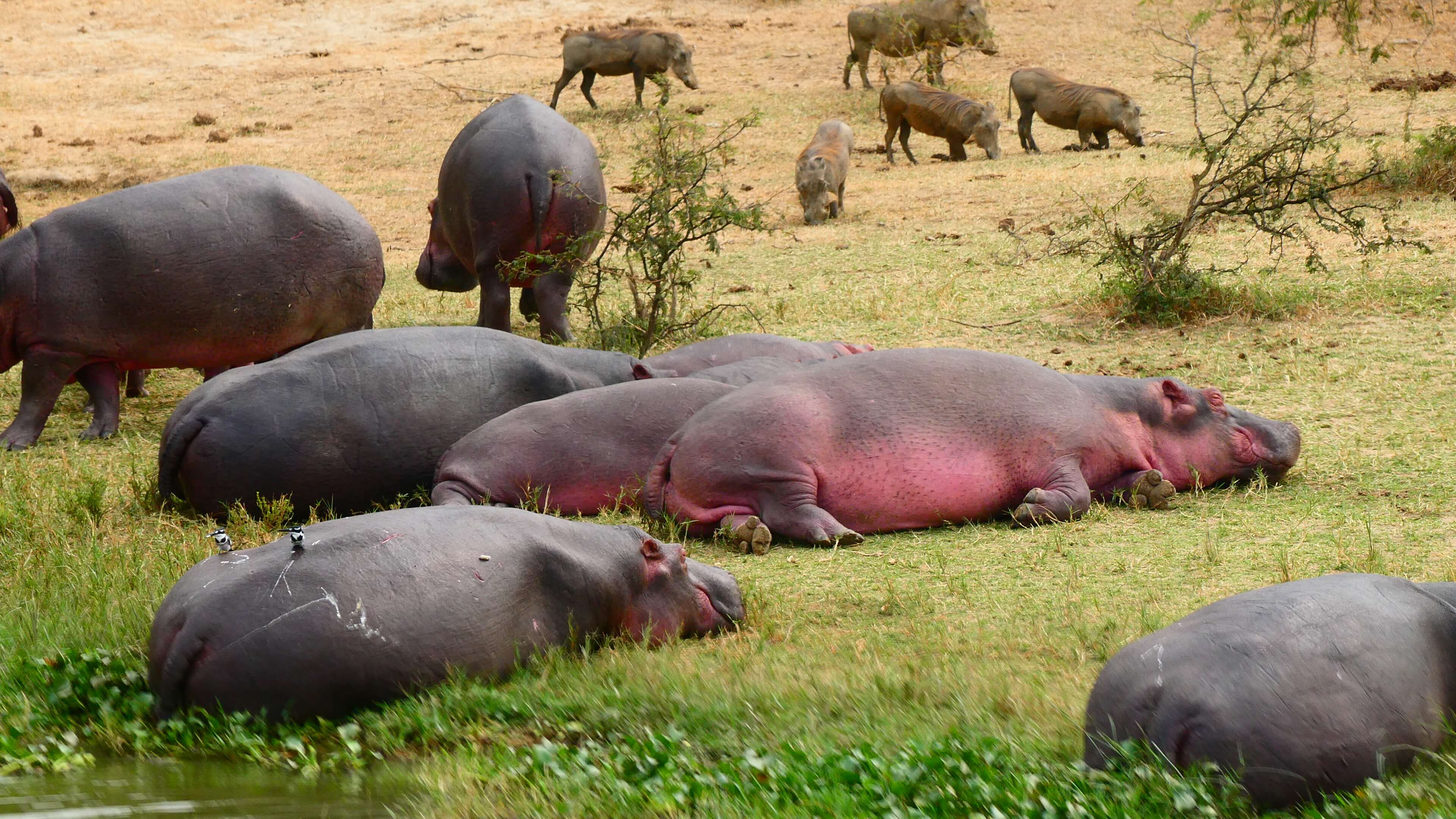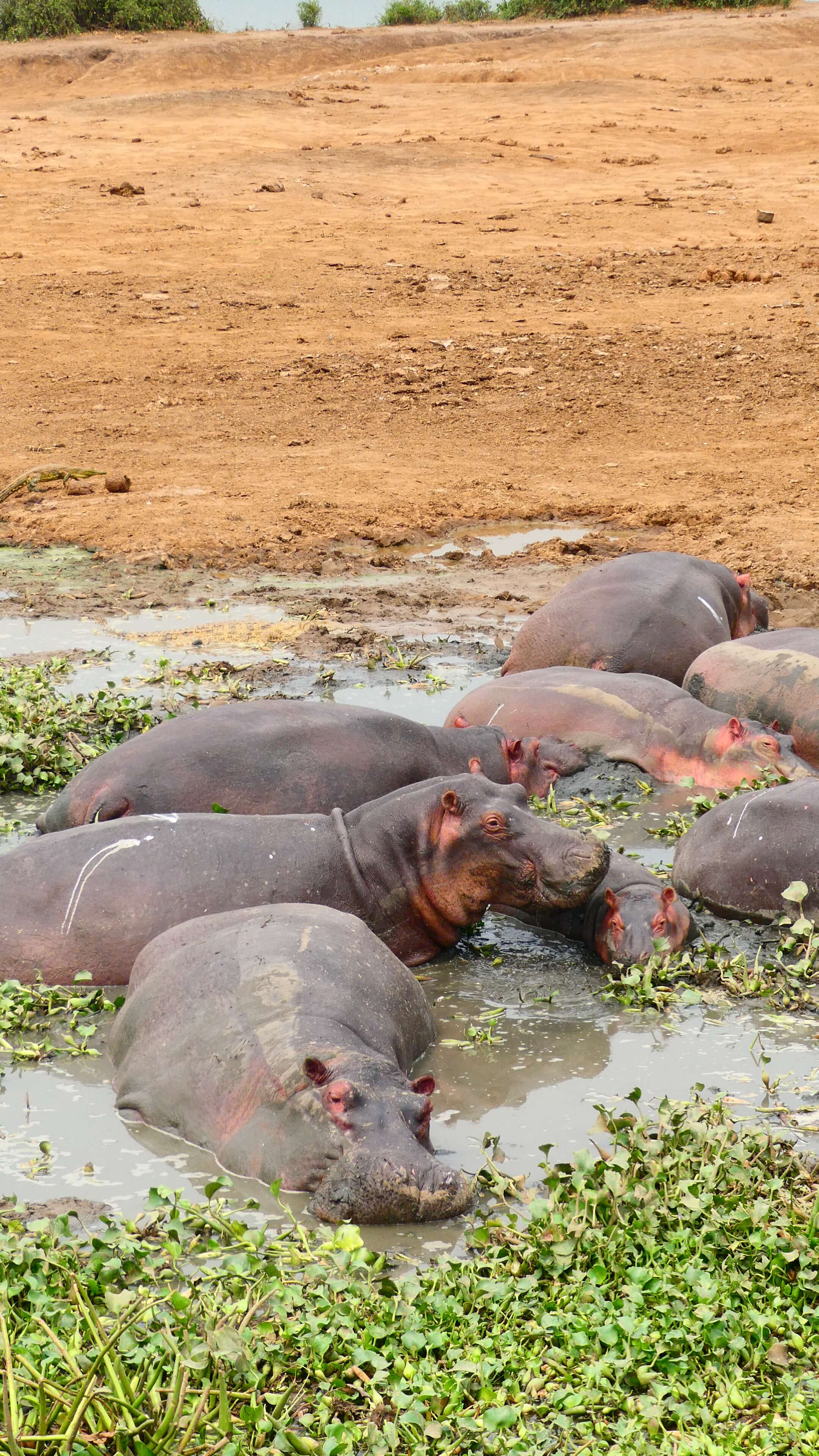 Völlig geflasht sind wir von der Atmosphäre am Delta, wo der Kazinga Channel in den Lake Edward mündet. Ein Paradies wie gemalt: Hier das Fischerdorf mit den Menschen und gleich daneben die Elefanten, die hier baden, grasen und dann in Herden wieder den Berg hinaufziehen.