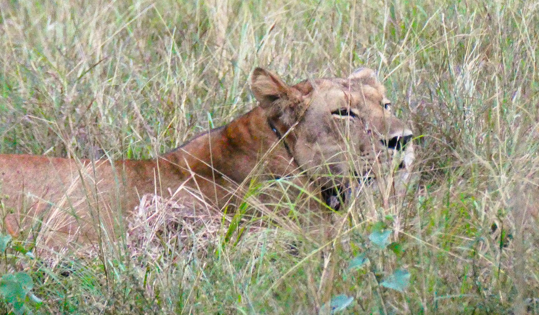 Ursprünglich wäre angedacht gewesen, am kommenden Morgen die 75 km zum Ishasha-Sektor des QENP zurückzulegen und nach der Pirsch auf die berühmten Tree Climbing Lions weiter in Richtung Süden zu fahren, um unserem nächsten Ziel, dem Bwindi Impenetrable Forest näher zu kommen. Doch es stellt sich bei der Recherche heraus, dass auch auf dieser „Durststrecke“ keine Übernachtungsmöglichkeiten gegeben sind. Wir entscheiden uns daher für einen gemütlichen Tag mit der 2-stündigen Fahrt nach Ishasha, der Löwen-Safari und anschließender Übernachtung in der dortigen Enjojo Lodge.
