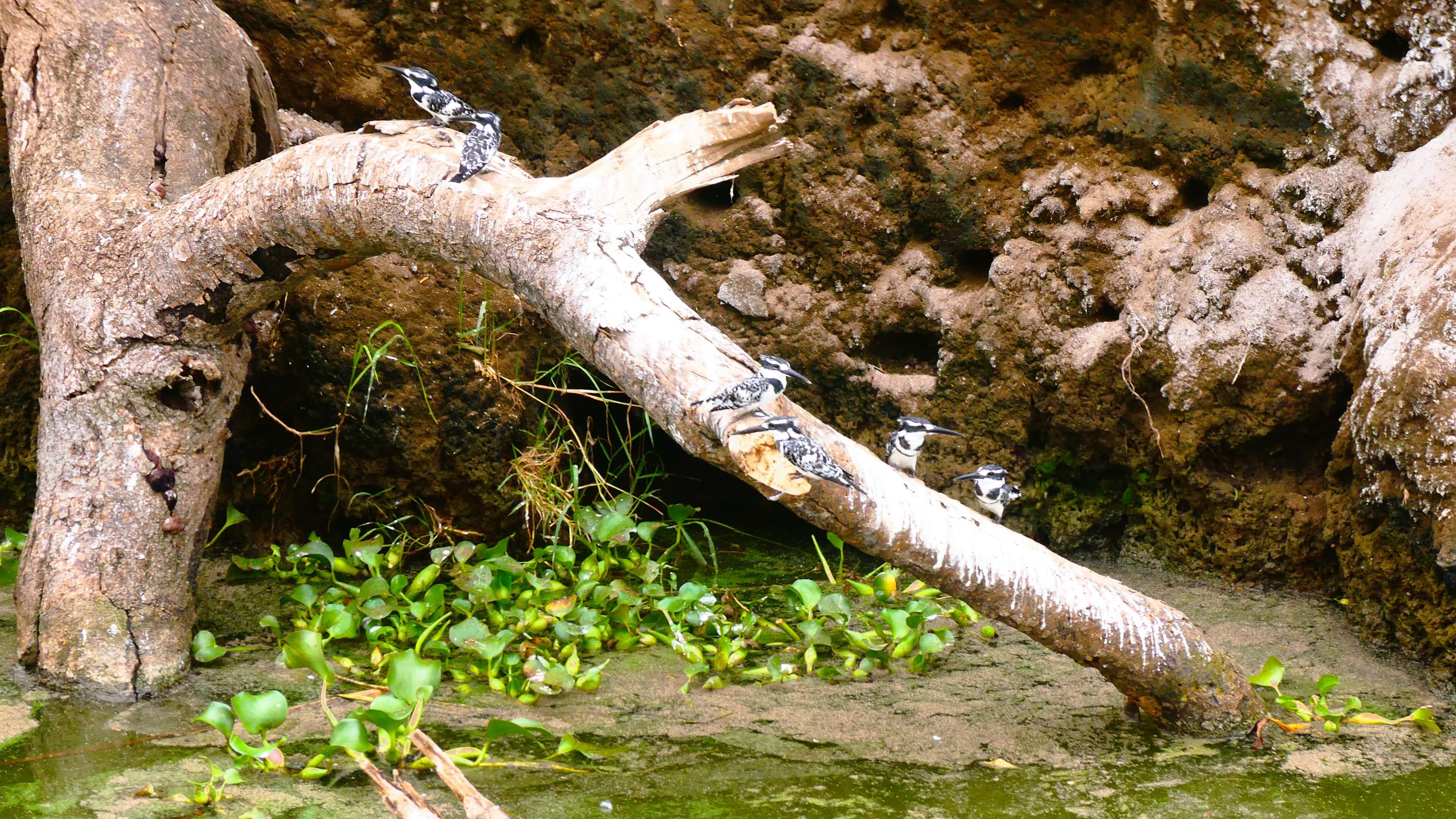 Erst schippern wir gemächlich über den Kanal zu einer Eisvogel-Kolonie auf der anderen Seite. Vögel, Vögel überall, auch in schwarz-weiß schön anzuschauen und vom Guide ornithologisch über Lautsprecher beschrieben. Allerdings bewegen wir uns derweil kaum einen Zentimeter flußauf- oder flußabwärts.