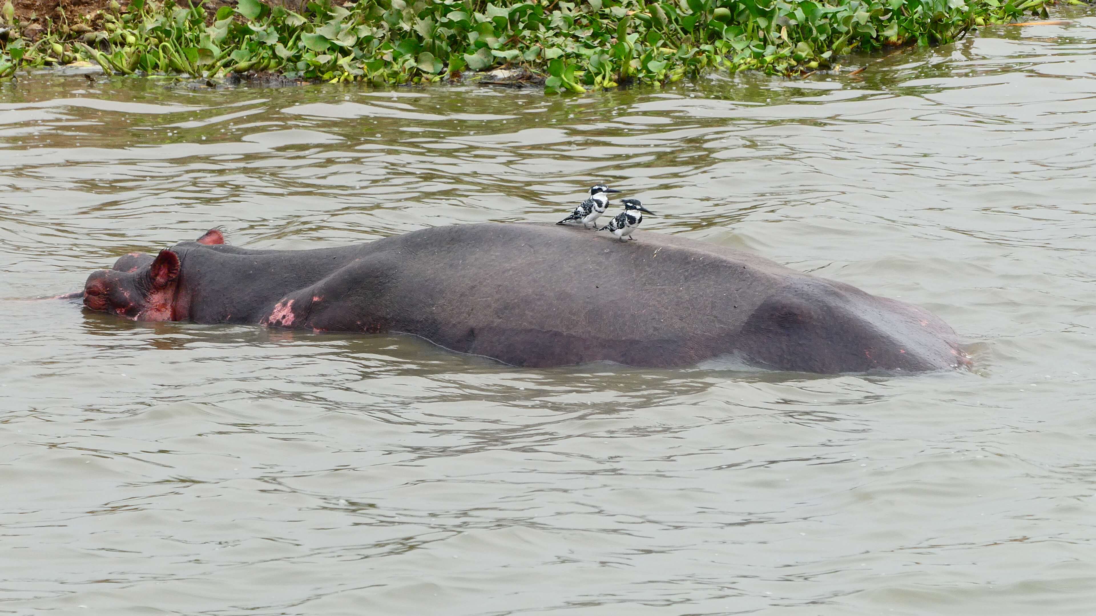 Schließlich setzt sich der Kahn schleichend in Bewegung Richtung Eduard-See. Mit verwundertem Augenrollen registrieren wir, dass wir in der ersten Stunde der zweistündigen Tour gerade mal die Entfernung eines Picknick-Ausflugs zurückgelegt haben und sind schon etwas enttäuscht von dieser so hochgelobten Kazinga Boat Cruise.
