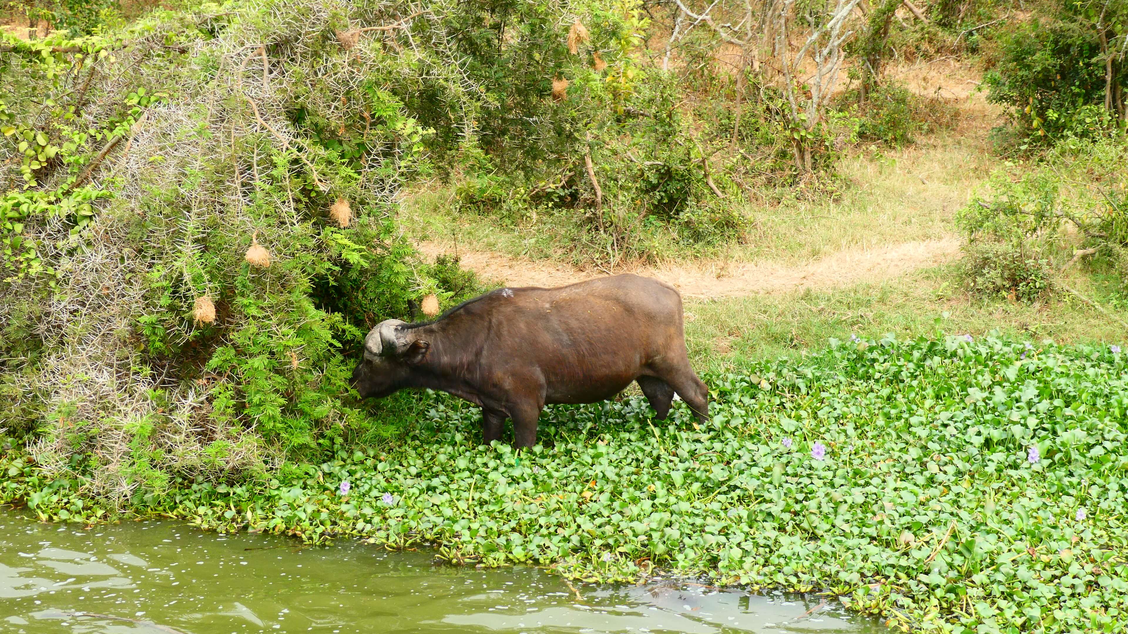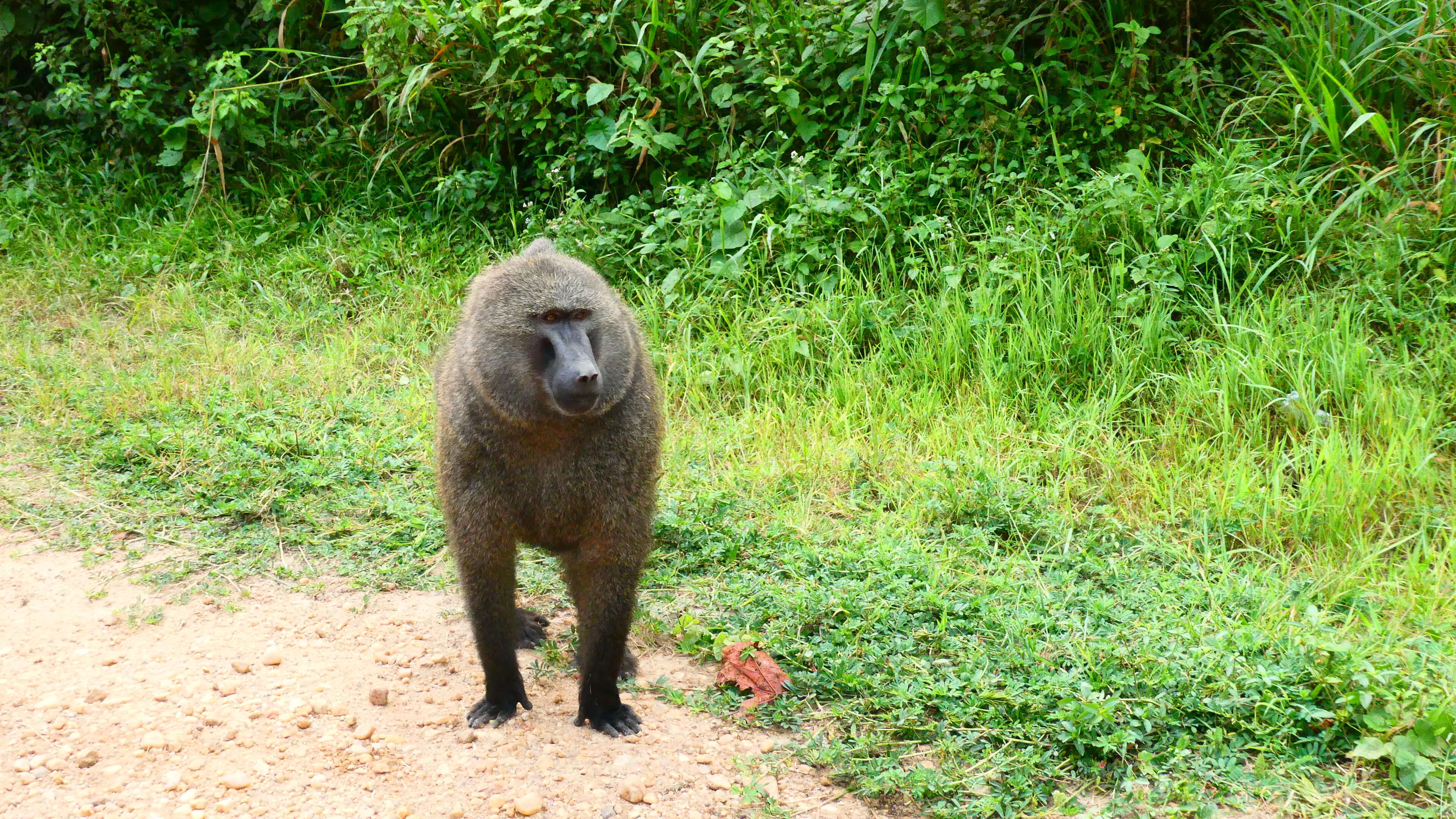 Für den Nachmittag haben wir um 14 Uhr eine Boat Cruise auf dem Kazinga Kanal gebucht, die von der Mweya Peninsula startet. Das heißt für uns, wir wechseln nun zur Ostseite des Queen Elizabeth National Parks. Nach der Einfahrt durch das Katunguru Gate geht es auf direktem Weg immer geradeaus. Wir haben nicht allzu große Erwartungen an diesen Channel Track und werden immens überrascht!