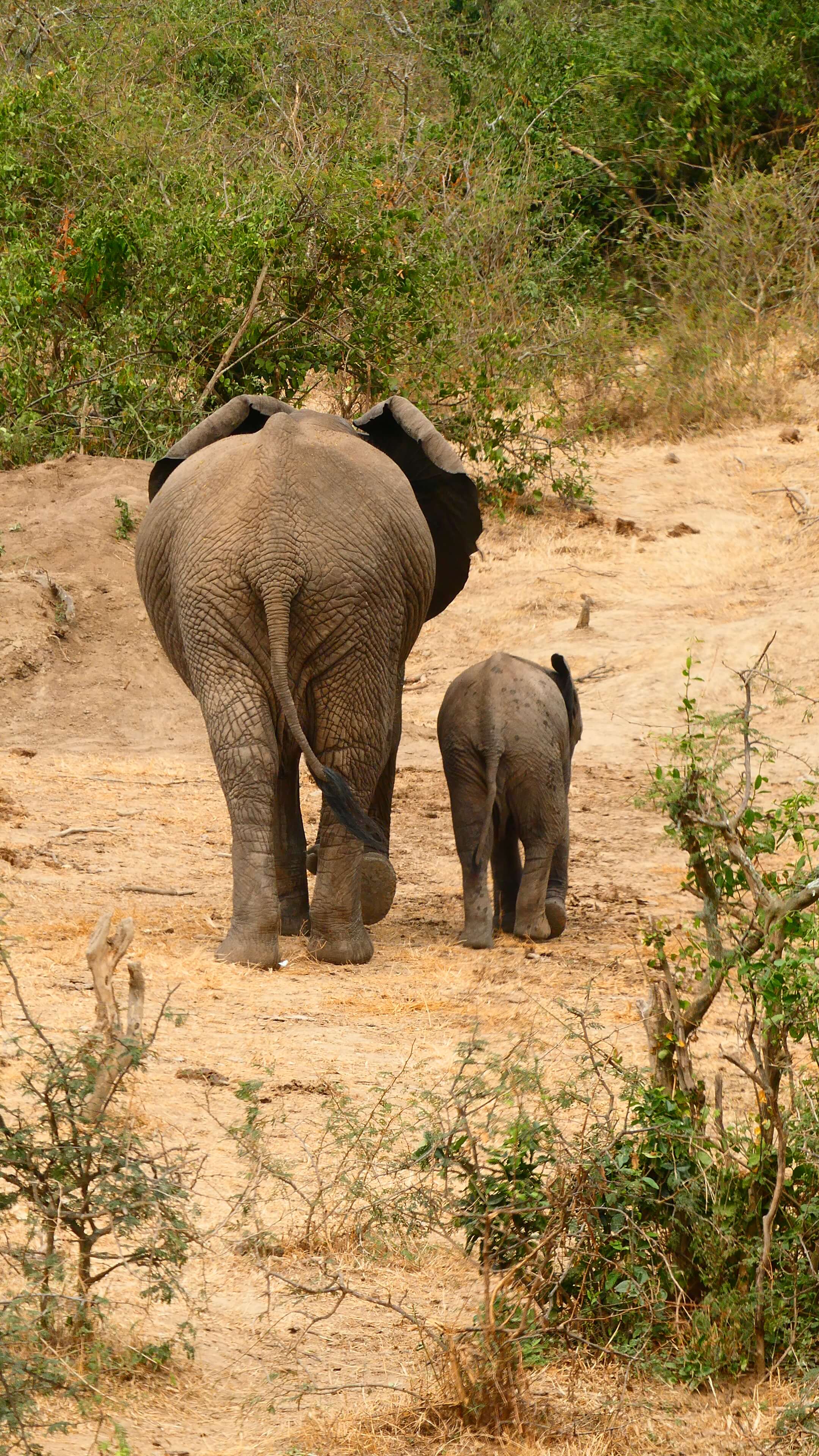 Der lustige Vogel ist übrigens ein Hamerkop. Der Hamerkop lebt monogam und baut das größte Vogelnest weltweit. Wir sehen unfassbar viele Elefantenherden, ständig kreuzen sie unsere Wege oder stehen direkt links oder rechts des Tracks im Schatten.