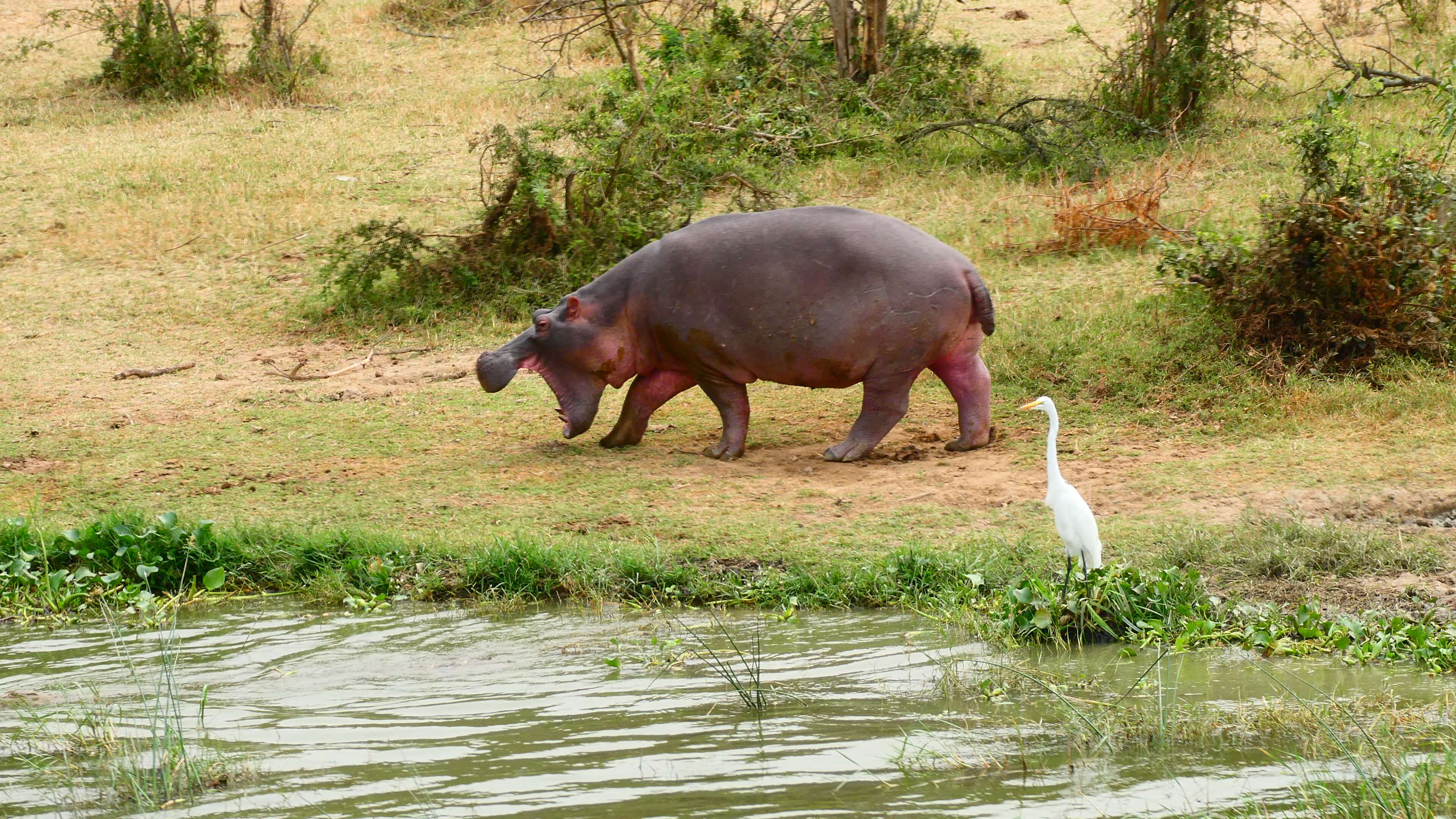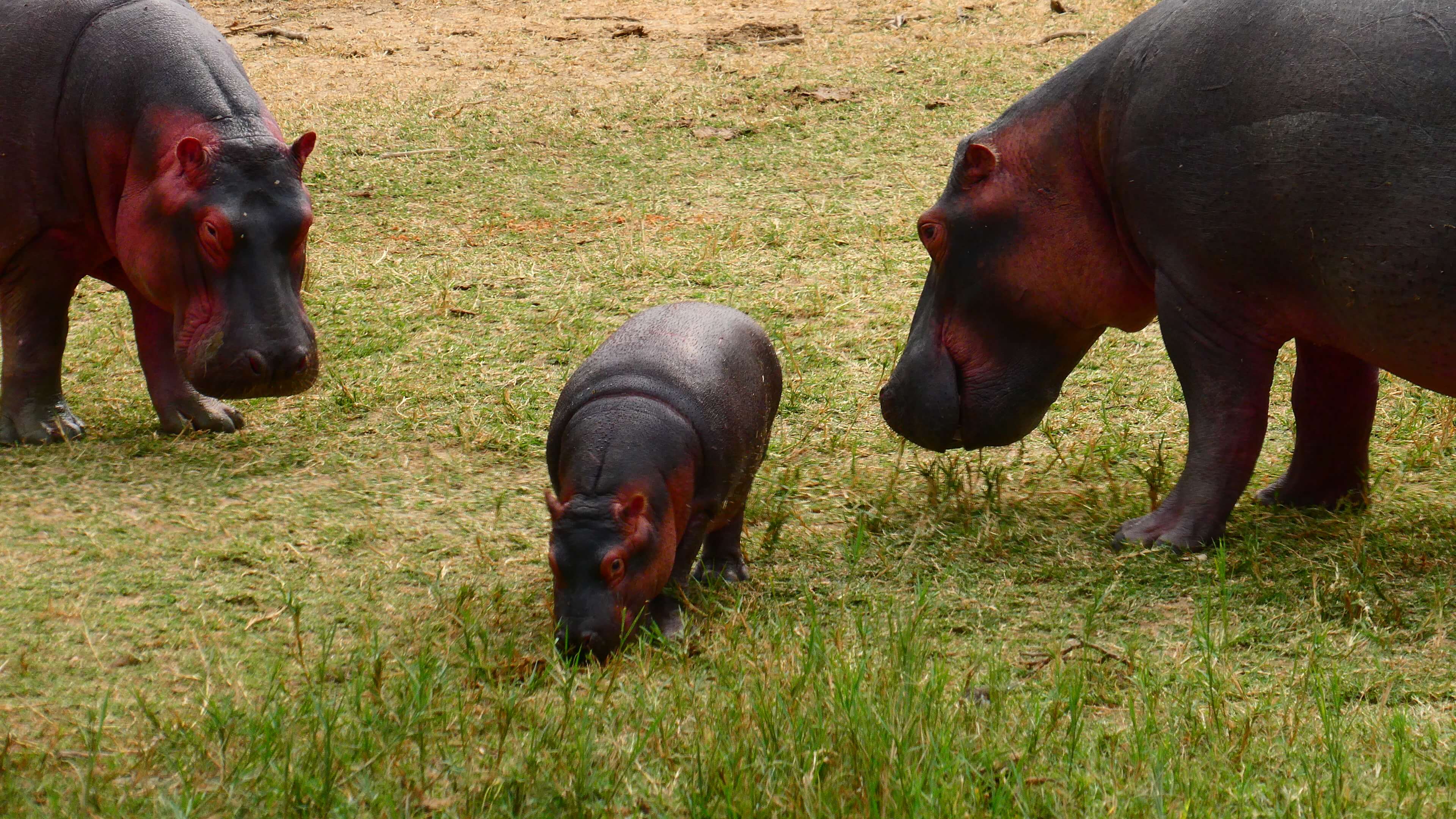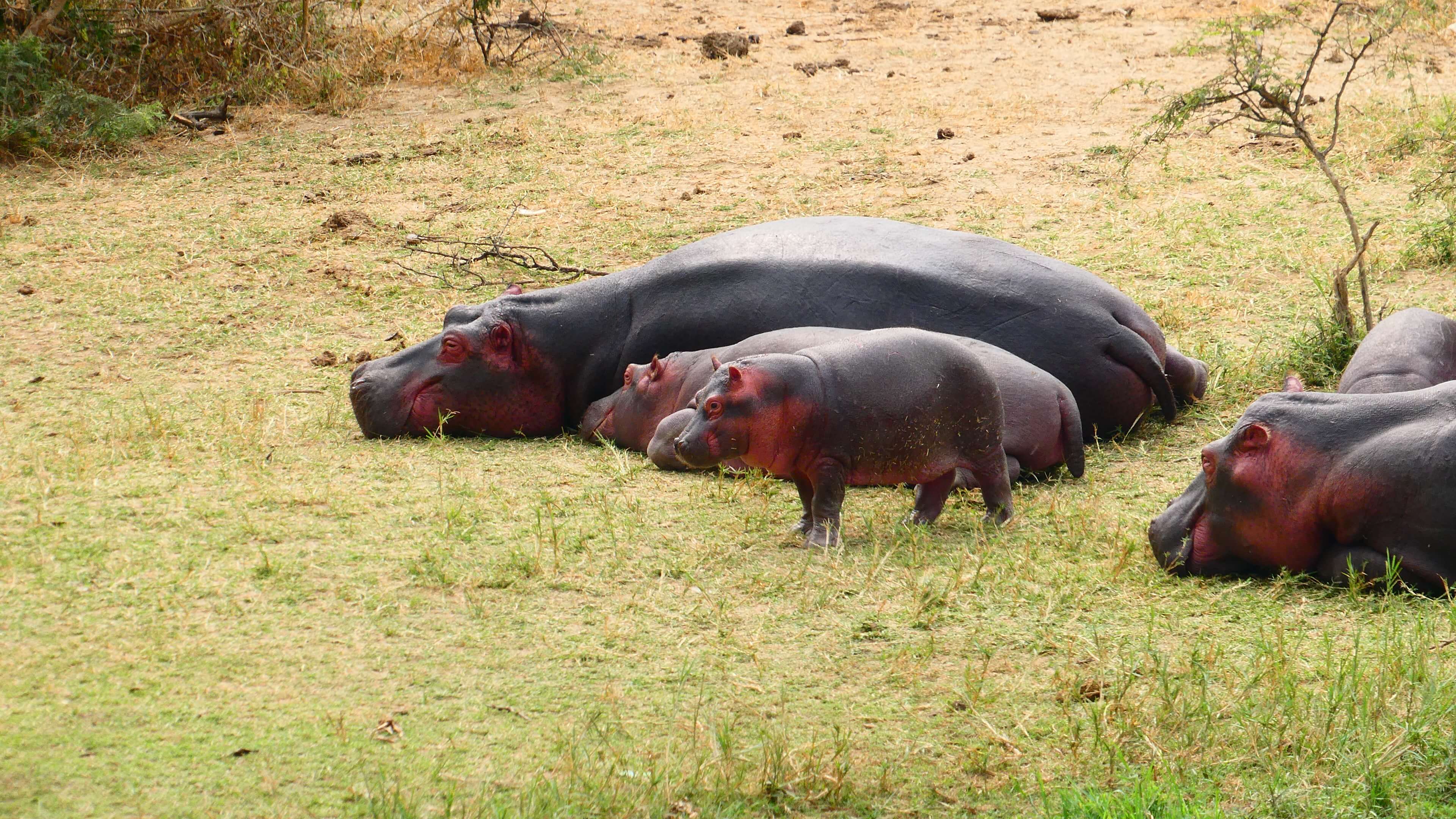 Jetzt aber schnell Zähneputzen und ab in den Schlafsack. Die jungen Nachtwächter schleichen mit ihren Laternen durch die Anlage und schon bald hören wir an den Schreien und Geräuschen rundum, dass diese Vorsichtsmaßnahme sehr wohl ihre Berechtigung hat. Wir hören Hyänen, Löwen und Elefanten und da ich vor lauter Aufregung kaum schlafen kann, höre ich auch das Hippo, dass ein paar Meter von unserem Zelt entfernt mampfend vorbeizieht.
