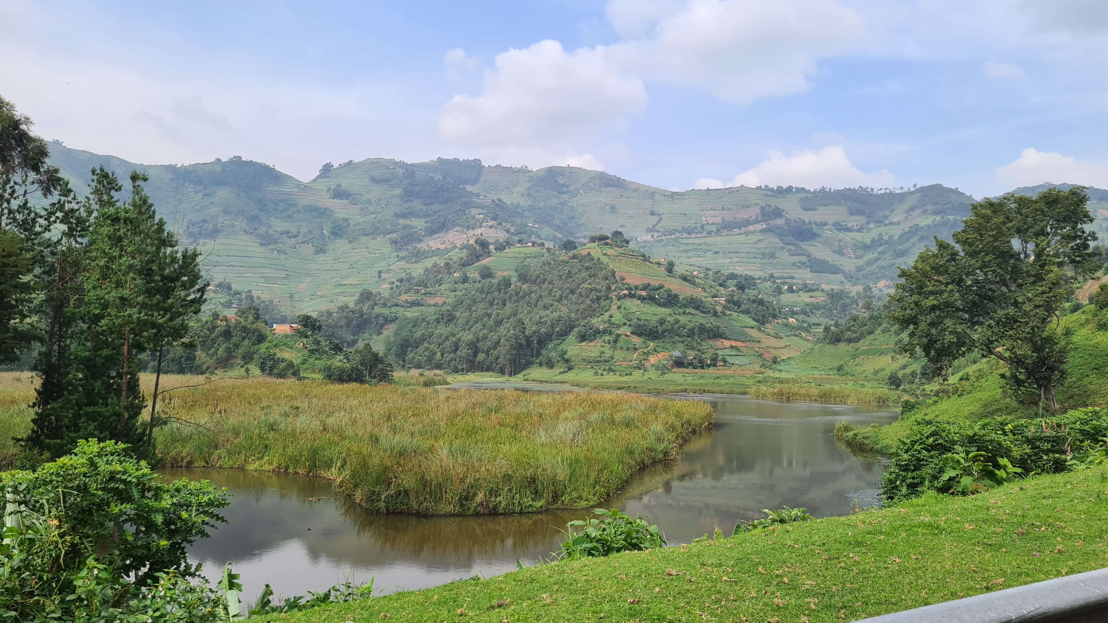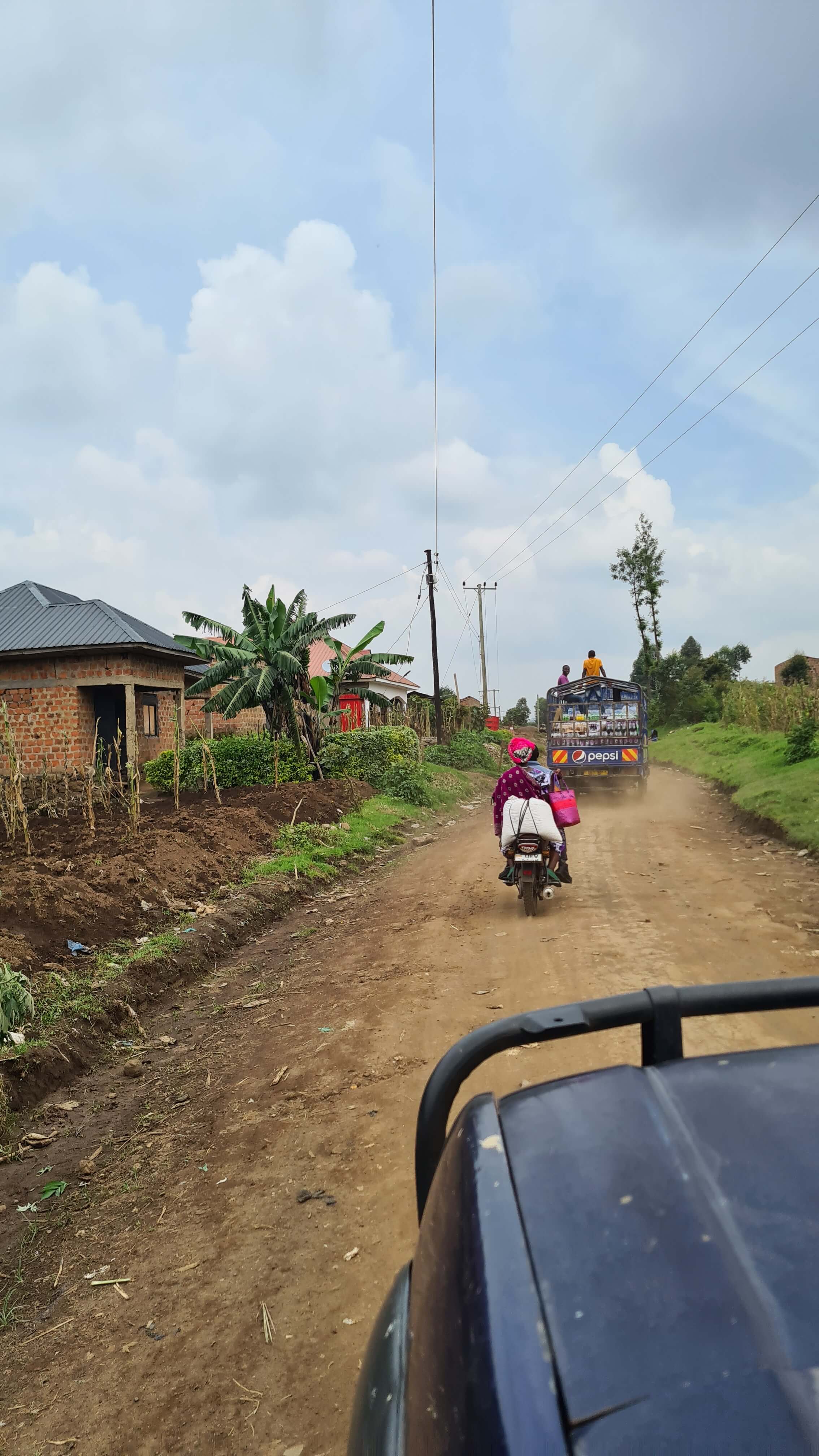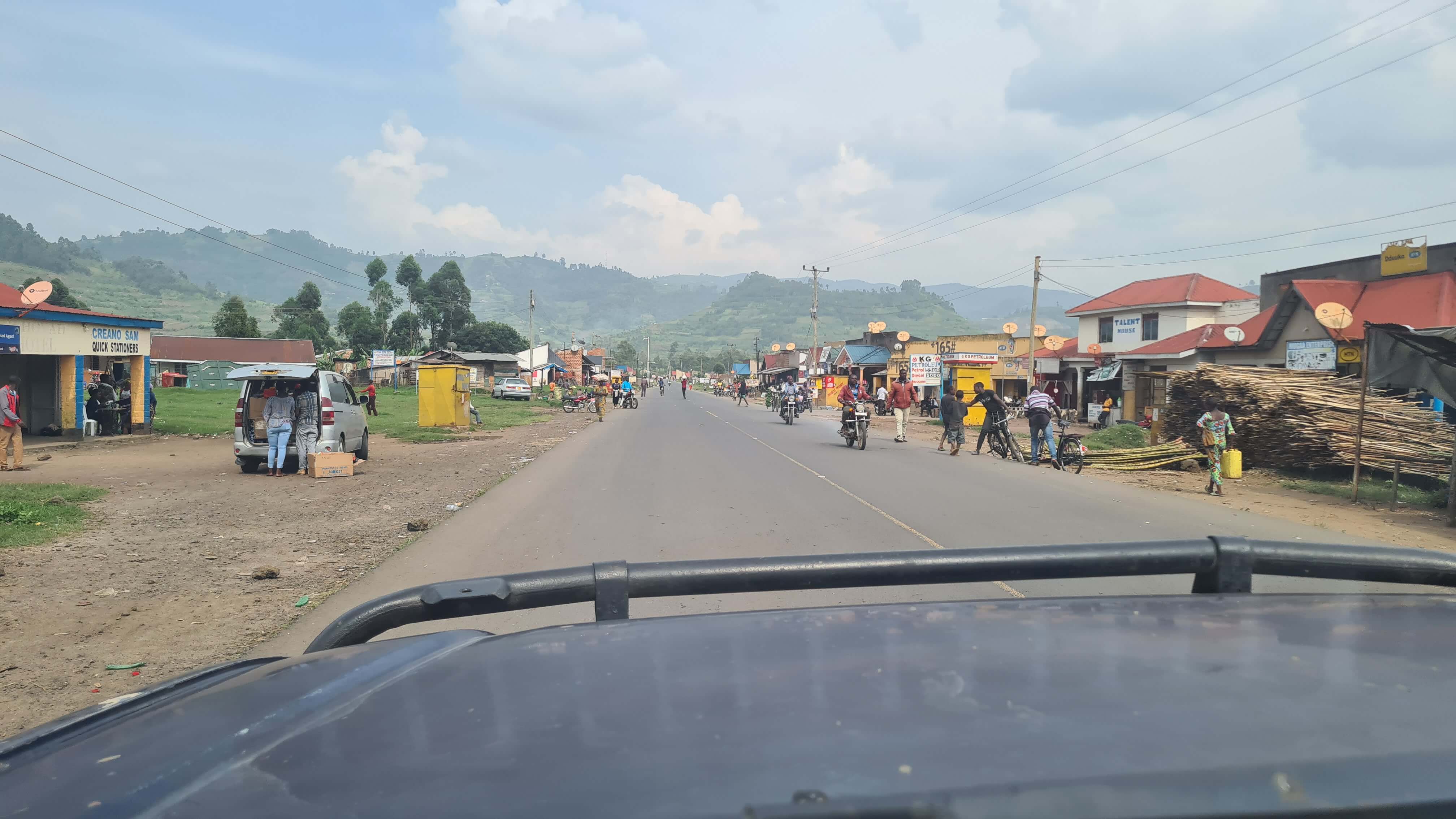 Vom südlichsten Zipfel Ugandas, dem Mgahinga National Park in den Virunga-Bergen, müssen wir natürlich wieder diese verrückte Straße nach Kisoro zurück. Es ist wirklich das Miserabelste, was man sich als Fahruntergrund vorstellen kann. Meist rumpeln wir einfach nur über mehr oder weniger zerkleinertes Vulkangestein garniert mit Pfützen, Fahrrinnen und innerorts oft viel Müll.