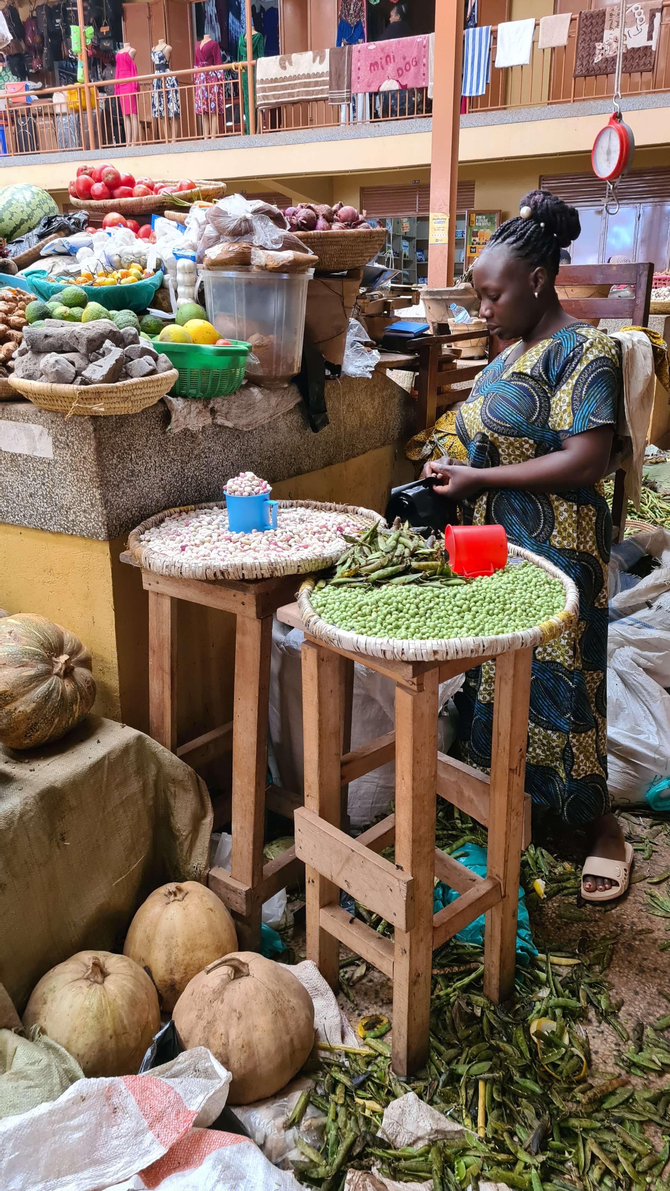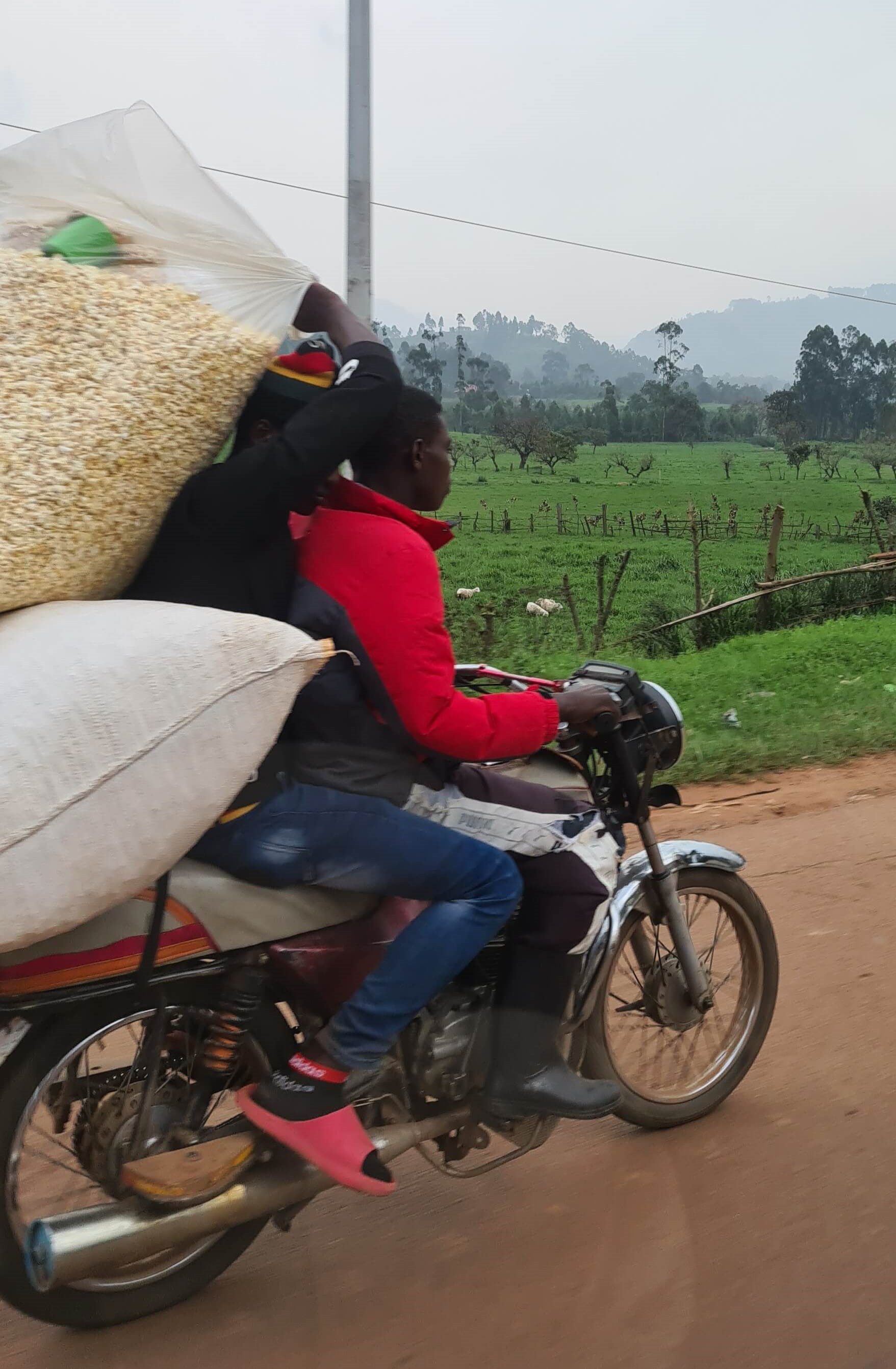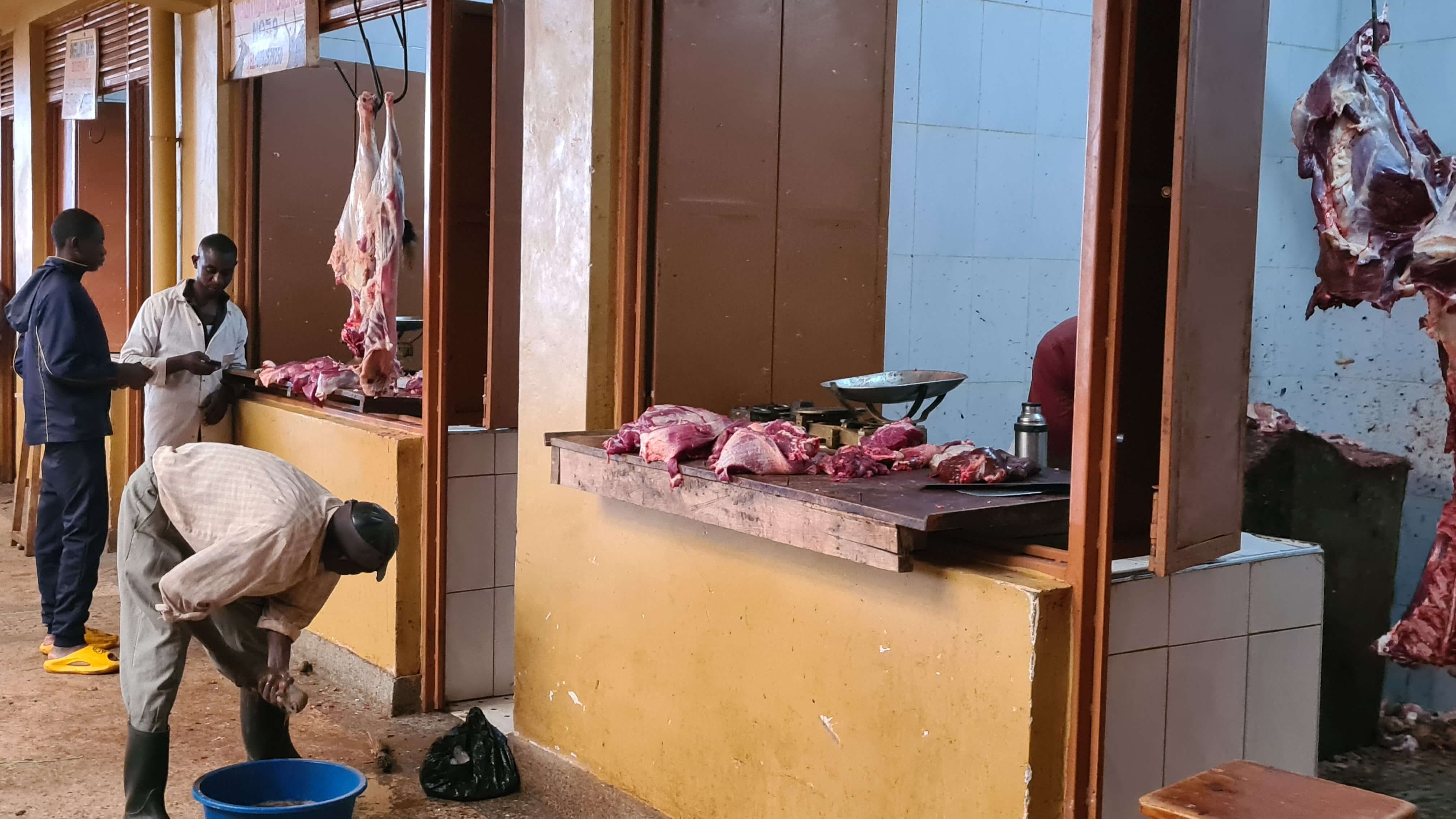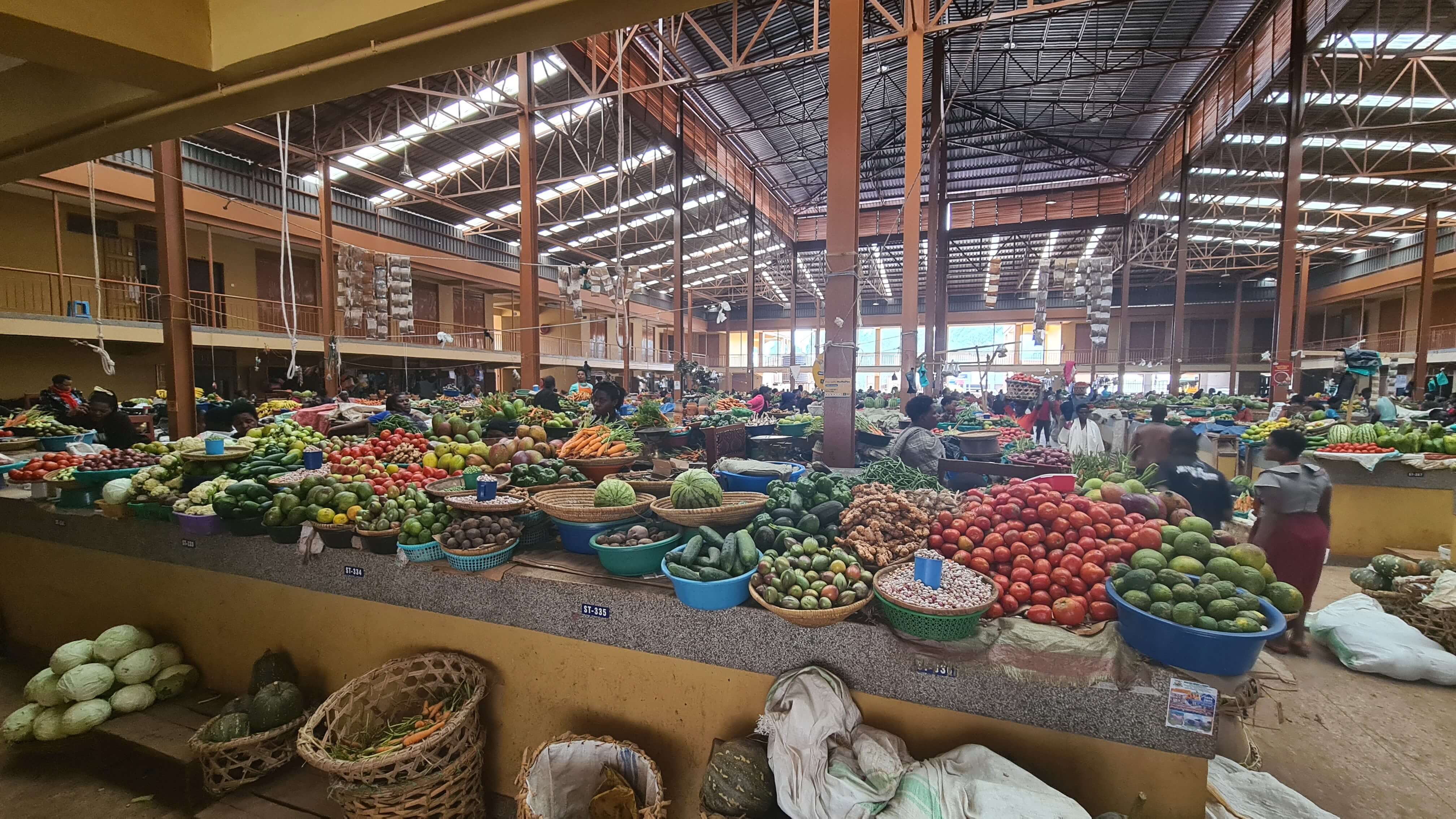 Um 10.30 Uhr sind wir wieder startklar für die Weiterfahrt zum Lake Mburo National Park. Erst geht es über Buckelpisten erneut vorbei an den Steinbrüchen zurück zur Main Road, dann weiter nach Kabale, einer wuseligen, recht adretten Stadt, in der uns die große Markthalle zu einem Stopp einlädt. Ob wir drei Parktickets für je 1.000 UGX löhnen müssen, weil wir Touristen sind oder ob wir damit ein Abo abgeschlossen haben, können wir nicht abschließend klären.