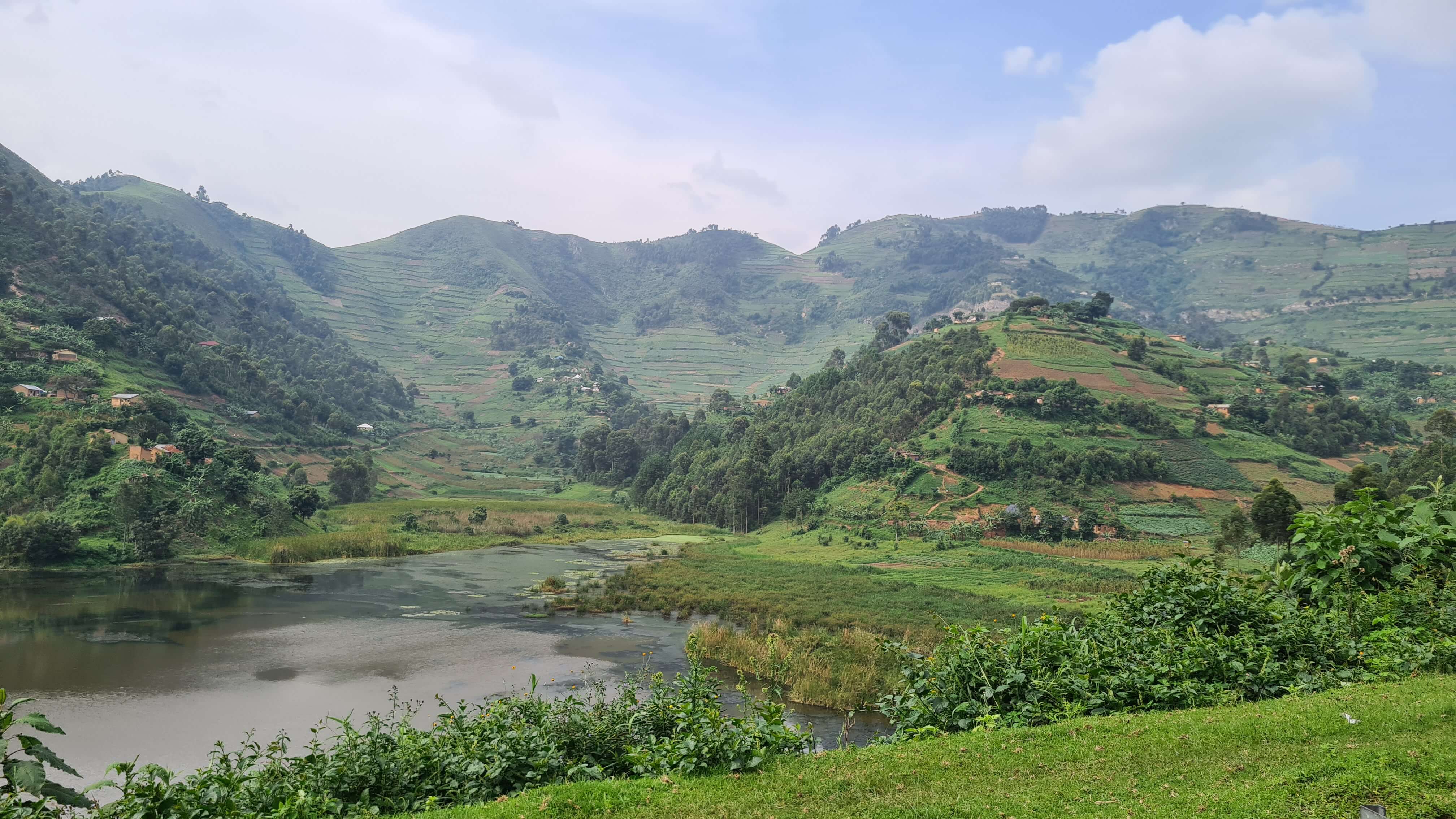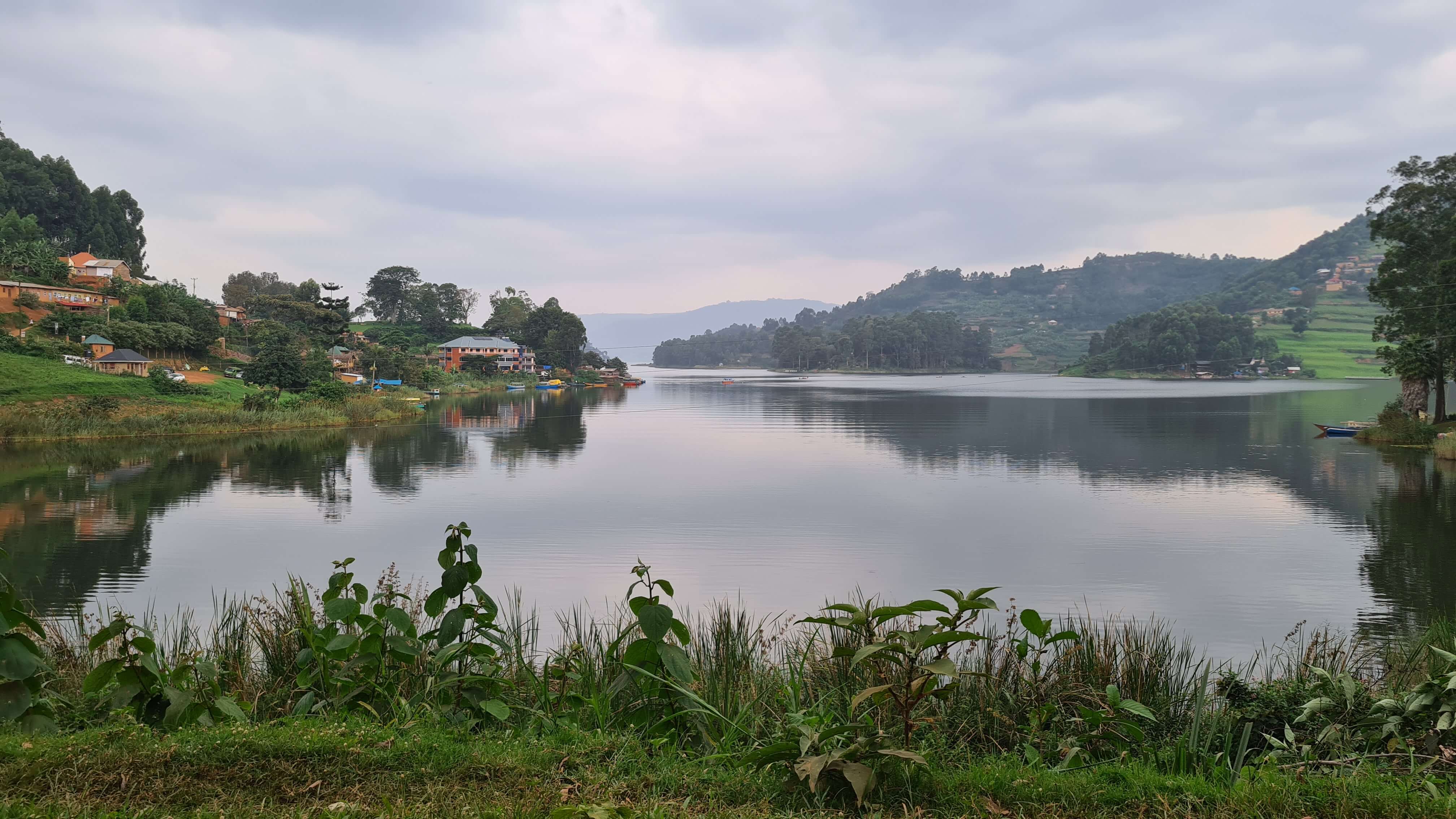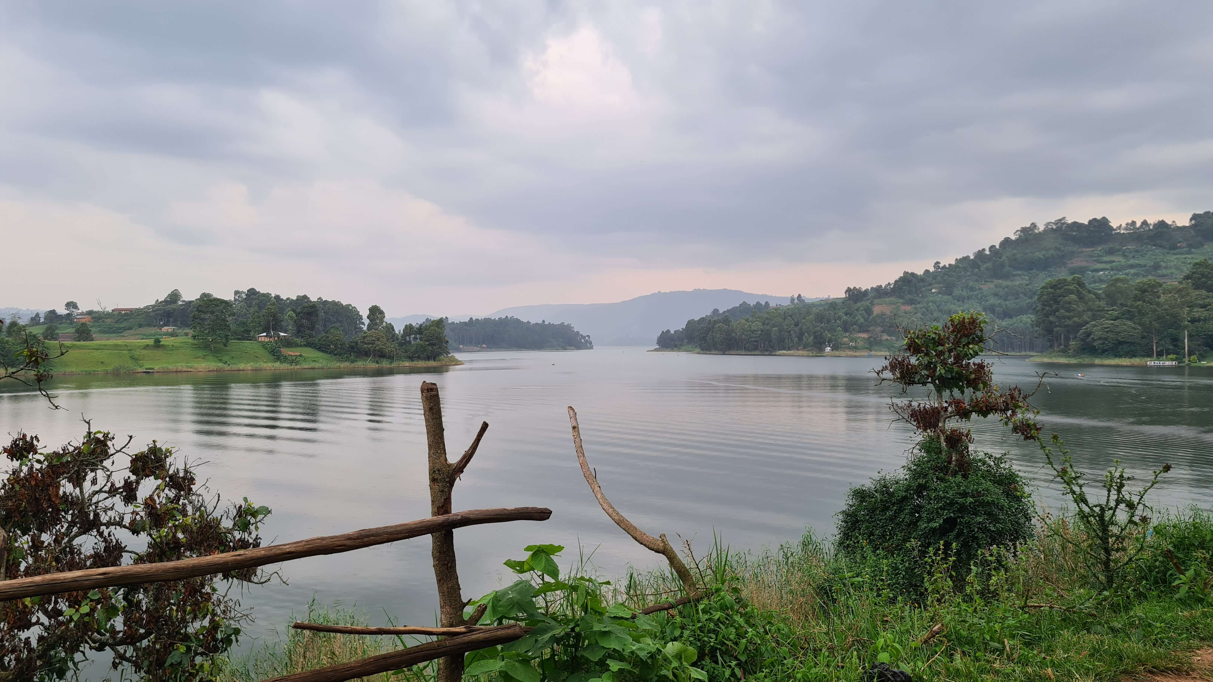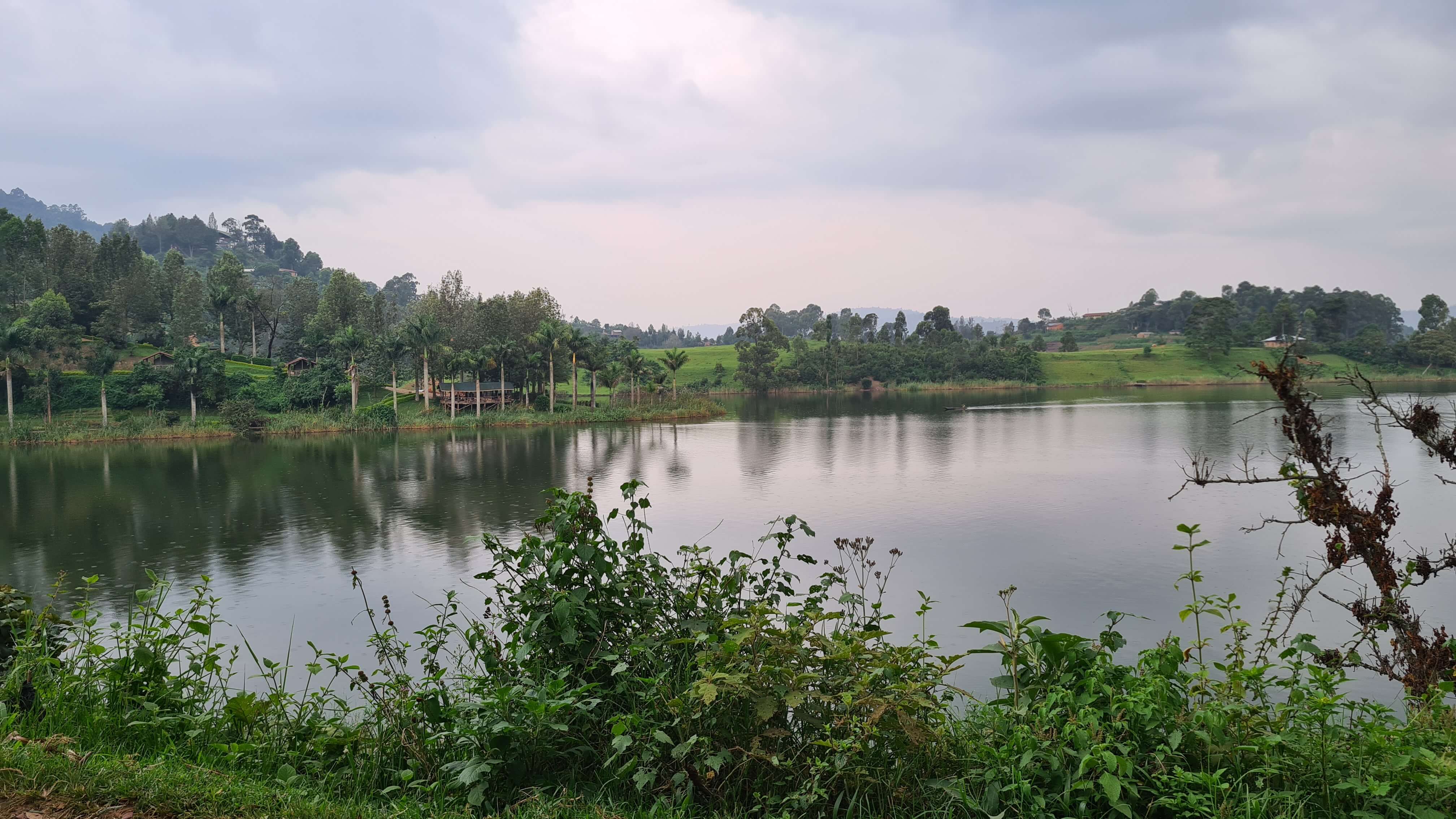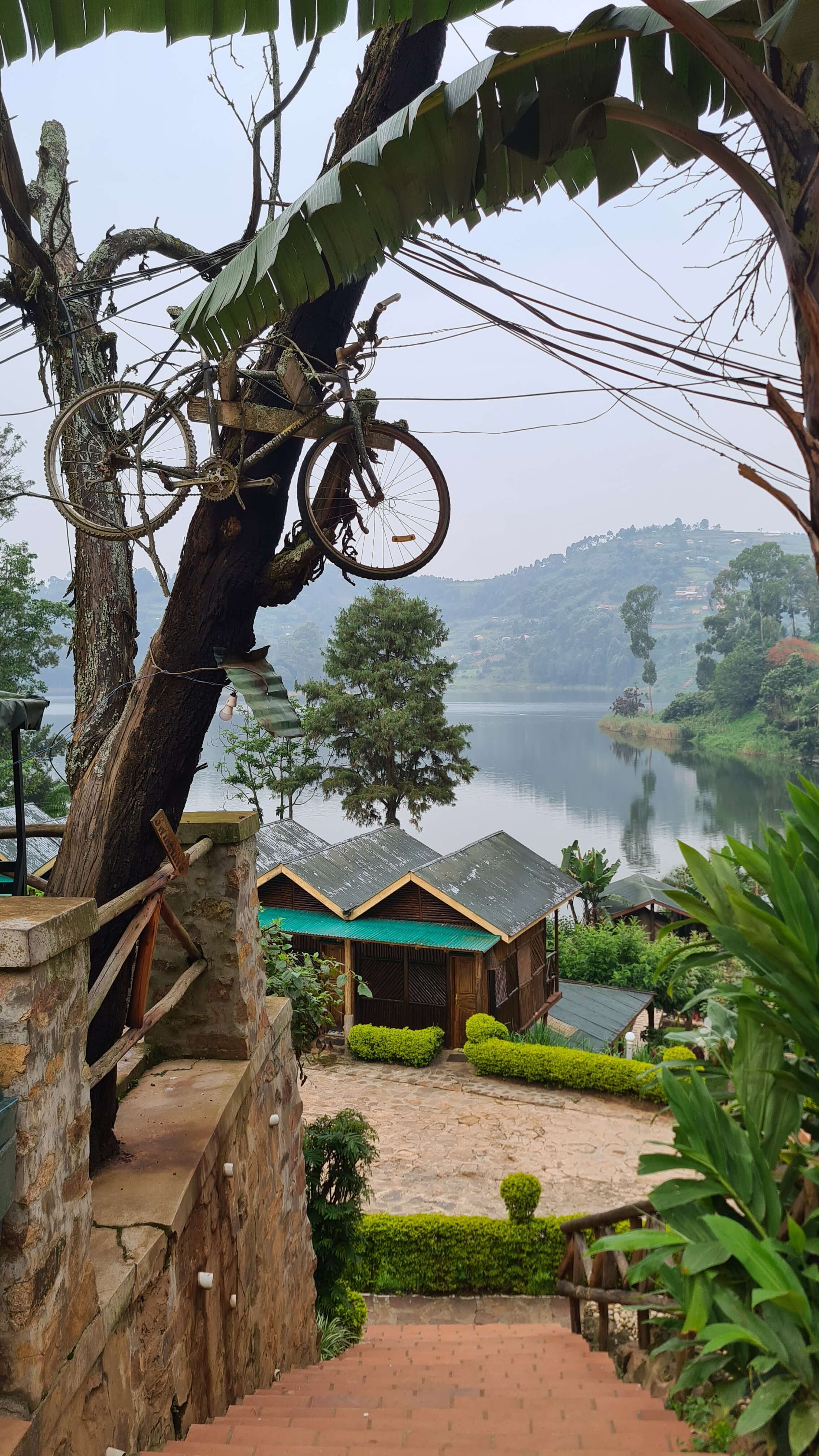 Nun nur noch ein paar Windungen off-road den Berg hinauf, dann haben wir am Ende eines Wald- und Wiesenweges das Edirisa Camp erreicht und parken aufgrund der Hanglage direkt vor dem Tor. Es ist kein Mensch zu sehen weit und breit. Matthias steigt den waldigen Hügel hinab und holt den Chef. Die Anlage sieht ziemlich verlassen und verwahrlost aus, aber „No problem“, natürlich können wir hier übernachten und – es ist inzwischen schon nach 18 Uhr und kurz vorm Dunkelwerden – notfalls auch etwas zu essen bekommen. Nach etwas genauerem Hinschauen auf Plumpsklo und Open-air-Duschen stellen wir fest, dass wir vom Regen im Amajambere Community Camp in die Traufe gekommen sind. Das geht gar nicht! Wir brauchen eine heiße Dusche, ein ordentliches Klo und ein trockenes, wanzenfreies Bett. Zügig drehen wir um und steuern das weiter vorne am See gelegene Bunyonyi Overland Camp an. 50 $ für ein geräumiges Fixed Tent mit Betten, dass ist uns unsere Nachtruhe am See wert. Es ist herrlich hier, alles adrett, top gepflegt und sogar der Chef höchstpersönlich sorgt sich um das Wohl seiner Gäste. Die Anlage ist riesig mit verschiedenen Unterkunftsarten, doch außer uns sind aktuell wohl nur eine große Franzosengruppe und ein Motorradfahrer hier einquartiert.
