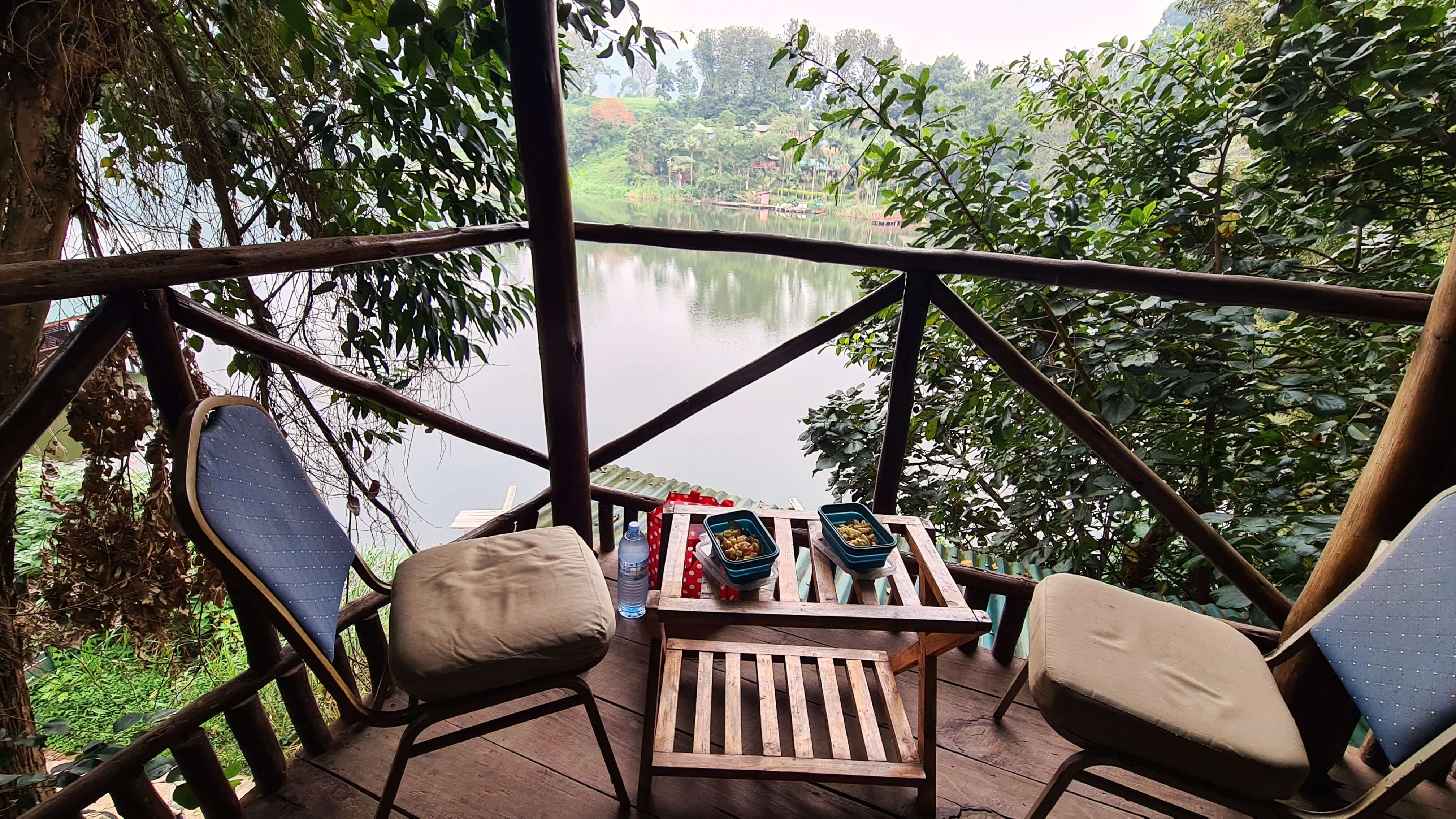 Nach der Dusche lassen wir uns im Outdoor-Restaurant mit einem wirklich exzellenten Crayfish Masala und Crayfish Curry verwöhnen. Die kleinen Krebse kommen direkt aus dem Bunyonyi See und schmecken köstlich.