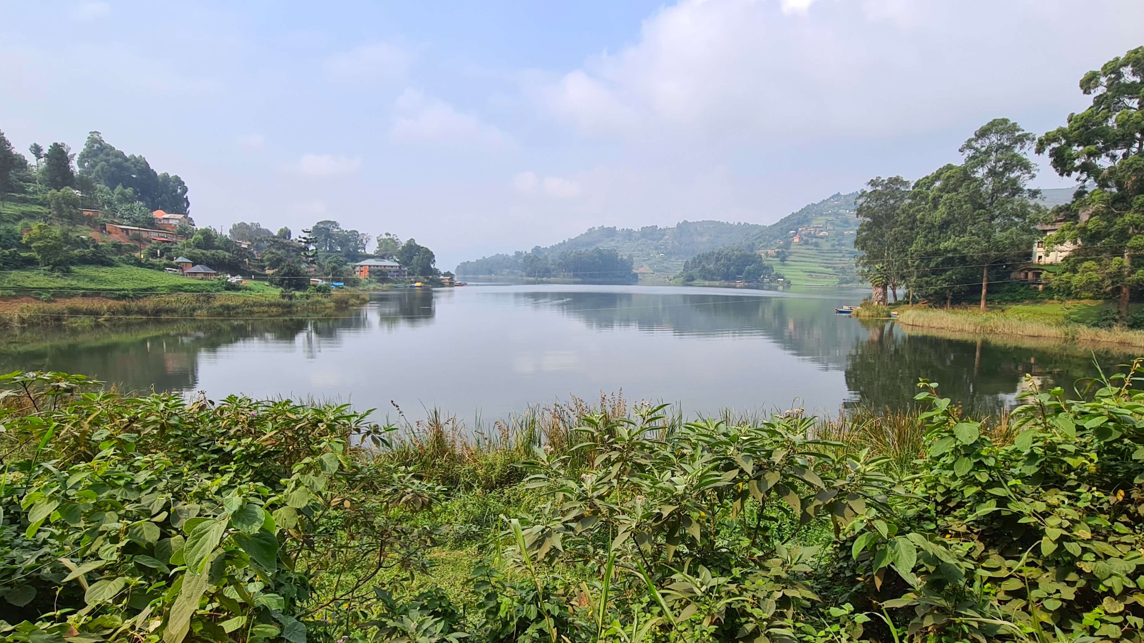 Wieder zufrieden mit diesem Tag krabbeln wir in die Betten und werden erst vom Vogelgezwitscher geweckt. Doch oh weh … die durchgelegenen Matratzen im Bunyonyi Overland Camp haben ihre Spuren hinterlassen. Mir ist es ordentlich ins Kreuz gefahren und ich kann mich kaum mehr gerade aufrichten. Vielleicht hilft Schwimmen? Nach einem Obstsalat-Frühstück teste ich also noch das Wasser des Bunyonyi-Sees, schließlich will ich mein Badezeug auch nicht ganz umsonst mitgenommen haben. Der Lake Bunyonyi ist eines der wenigen Gewässer in Uganda, die bilharziosefrei sind. Das Wasser ist wunderbar weich und frisch, wie daheim am Wiflinger Weiher. Matthias kann sich trotzdem nicht dafür erwärmen.