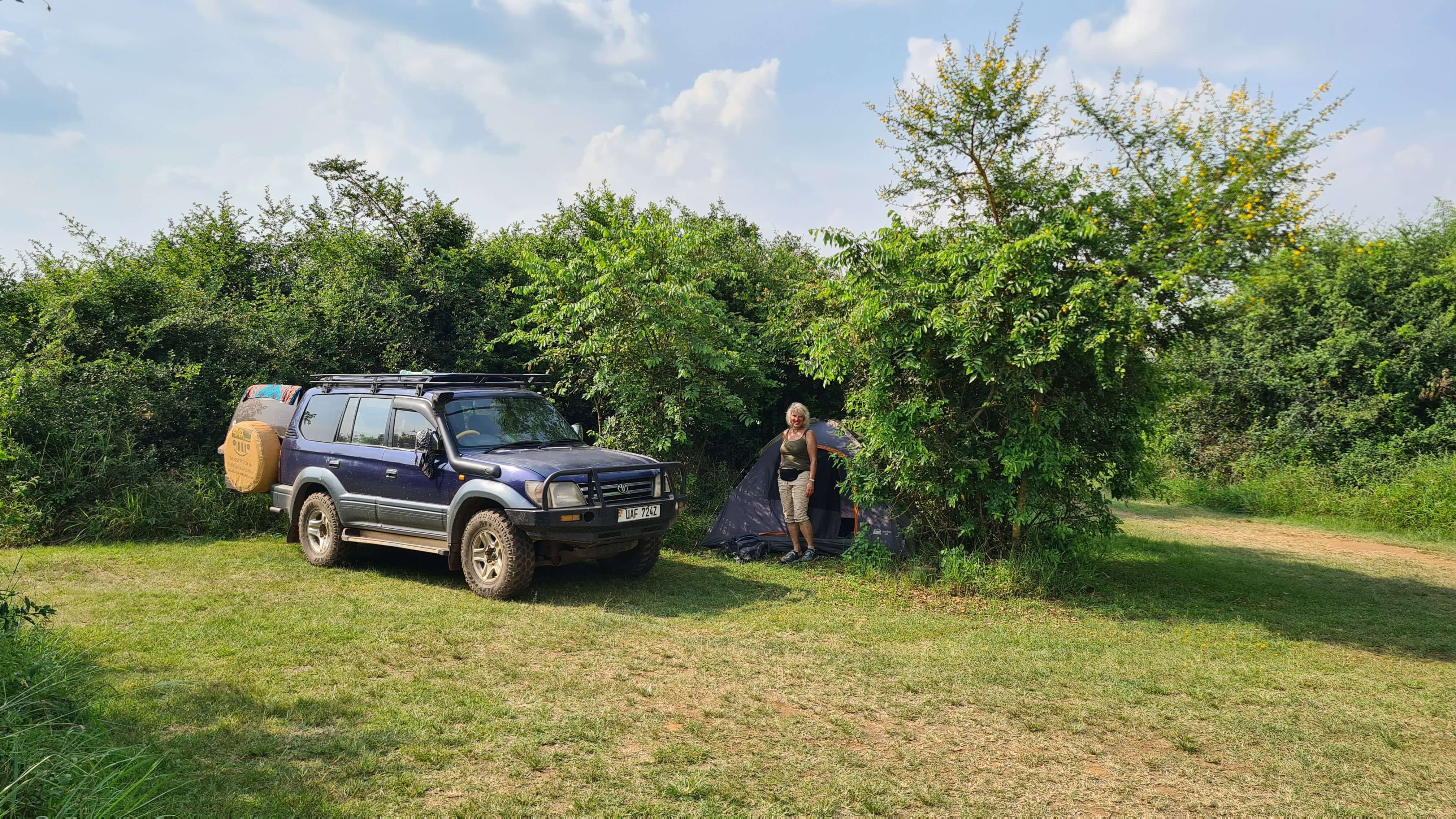 Das Leopard Rest Camp wird für die nächsten zwei Nächte unser Zuhause sein. Es liegt noch vor dem offiziellen Gate in den Nationalpark rund um den Mburo See, weshalb auch noch keine 24 h-Eintrittsgebühren anfallen. Perfekt! Wir werden von John in Empfang genommen und rundgeführt. Die Anlage ist ein Träumchen und wir fühlen uns sofort richtig wohl. Wie immer haben wir freie Auswahl bei der Platzsuche und entscheiden uns, wind- und regengeschützt zwischen einigen Büschen, aber doch nahe von Küchen-Freisitz und sanitären Anlagen unser altes Zelt aufzuschlagen. Der neue, regenfeste Ersatz ist bisher noch nicht eingetroffen.