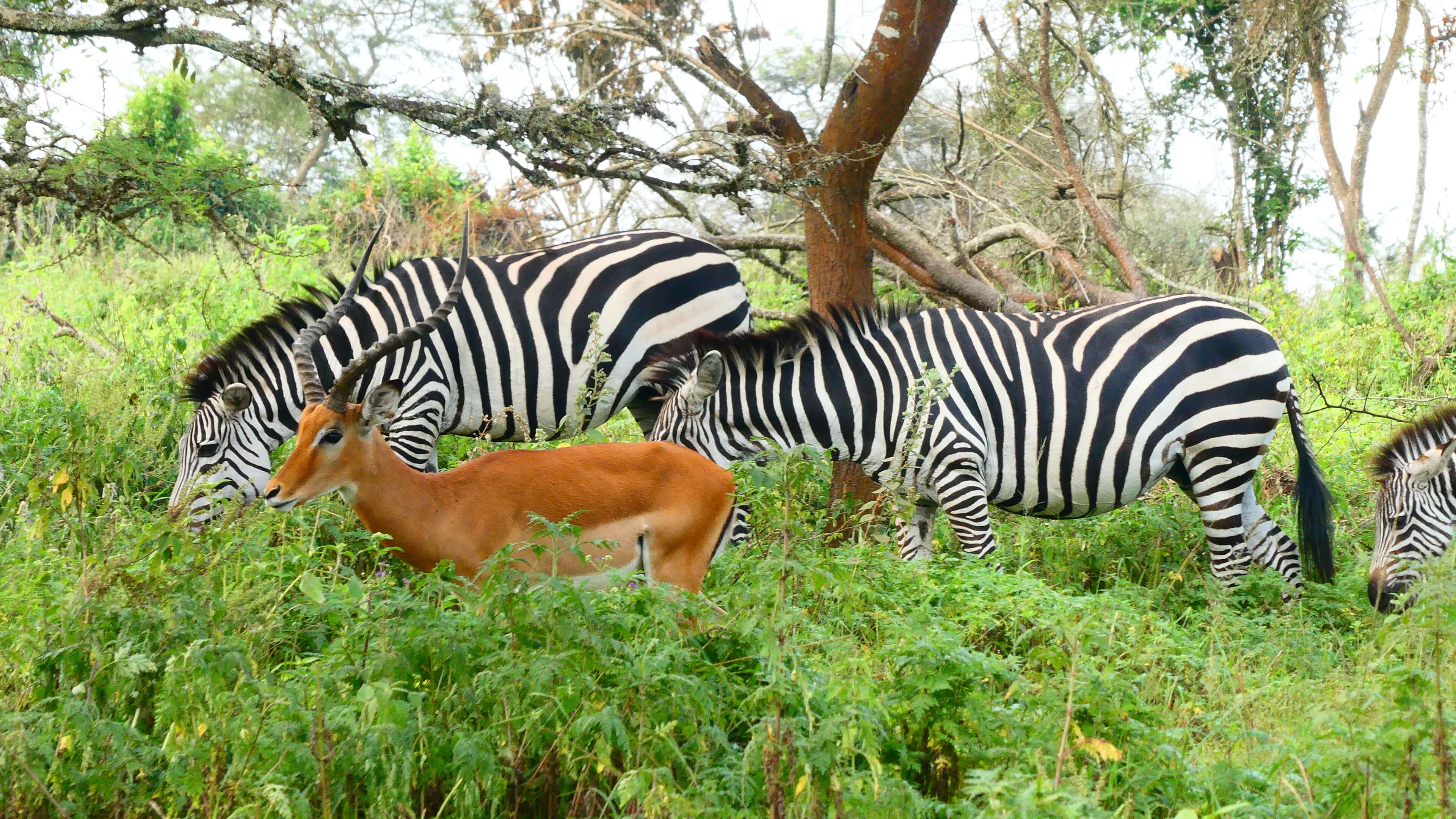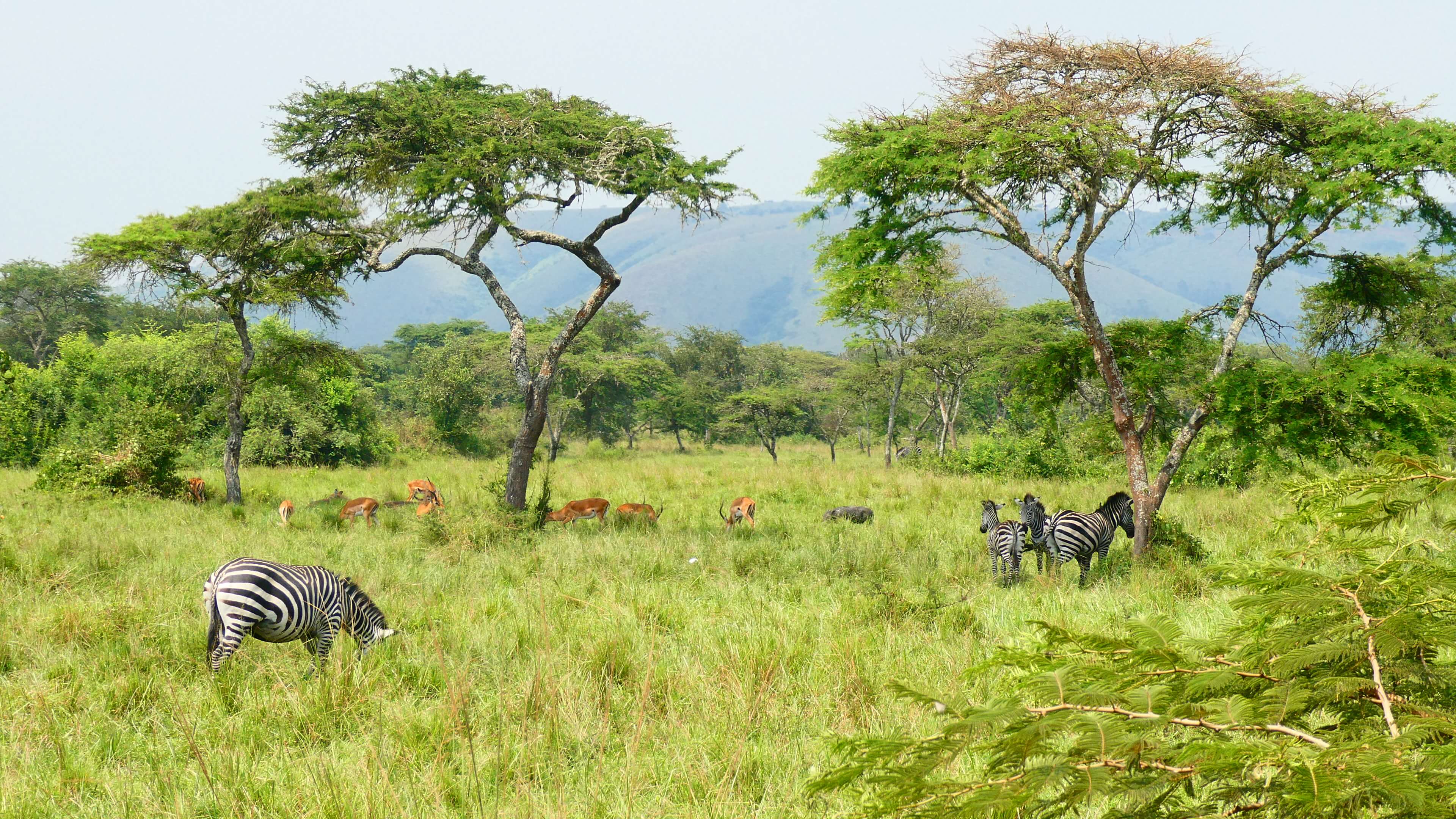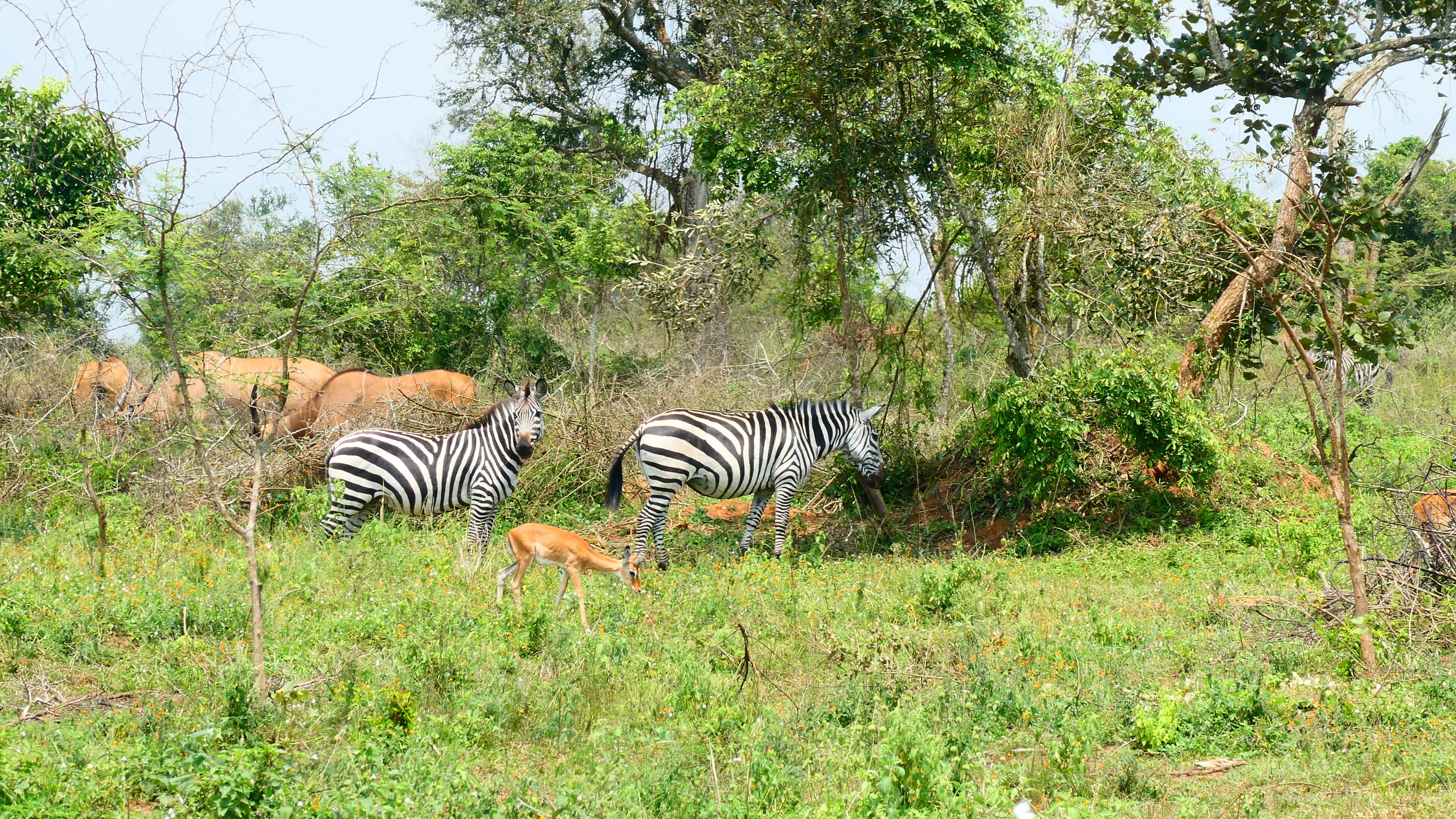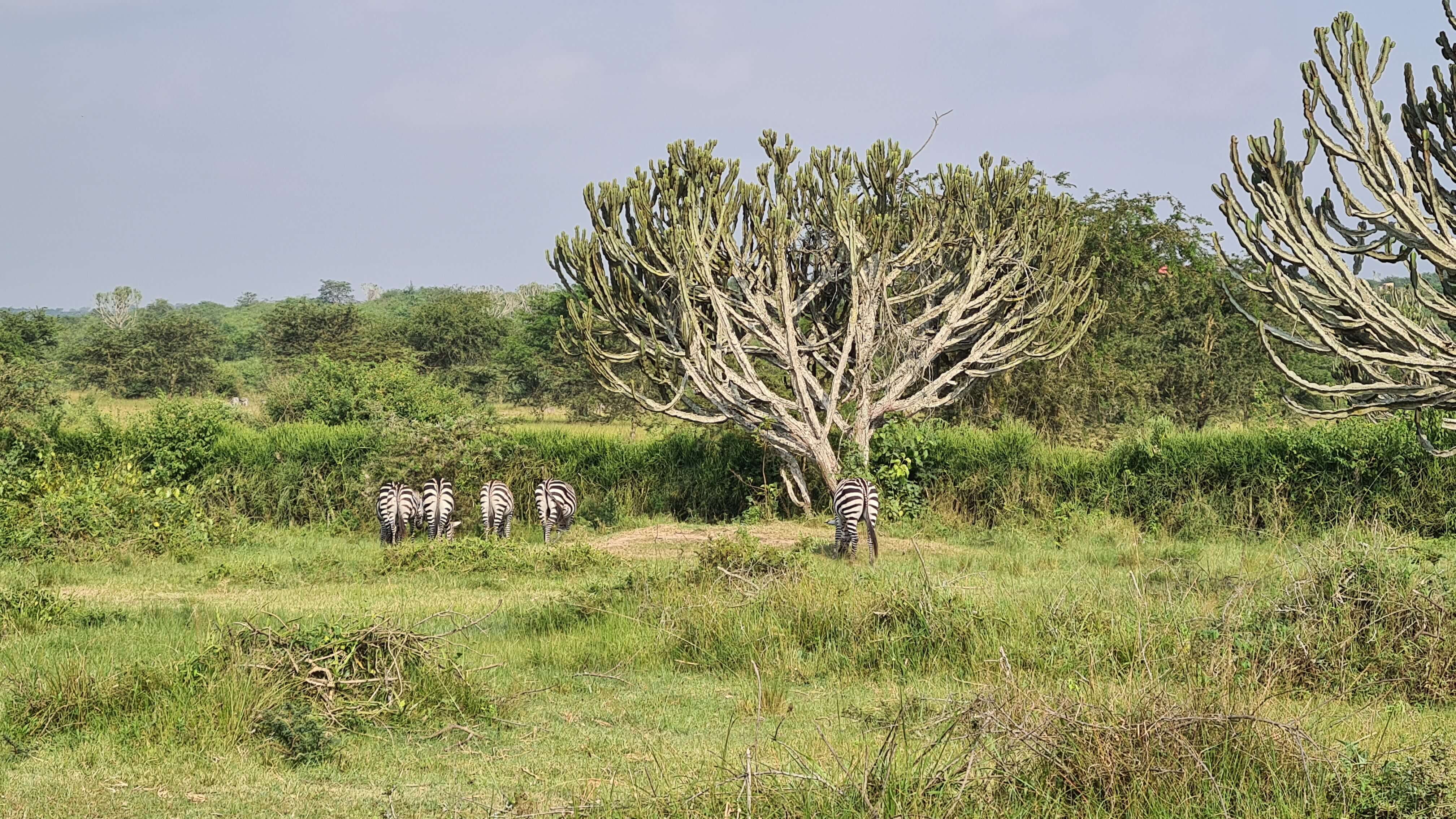 Am Dienstag, den 31.01.2024, geht es dann auf unseren letzten Game Drive durch den Lake Mburo National Park. Wir starten gleich um 7 Uhr und haben den ganzen Tag Zeit. Erstaunlich wie auch hier trotz Trockenheit alles grünt und wuchert. Die rote Piste durch die hügelige Landschaft ist super zu fahren und die ersten Zebras, Giraffen, Impalas und Water Bucks lassen nicht lange auf sich warten.